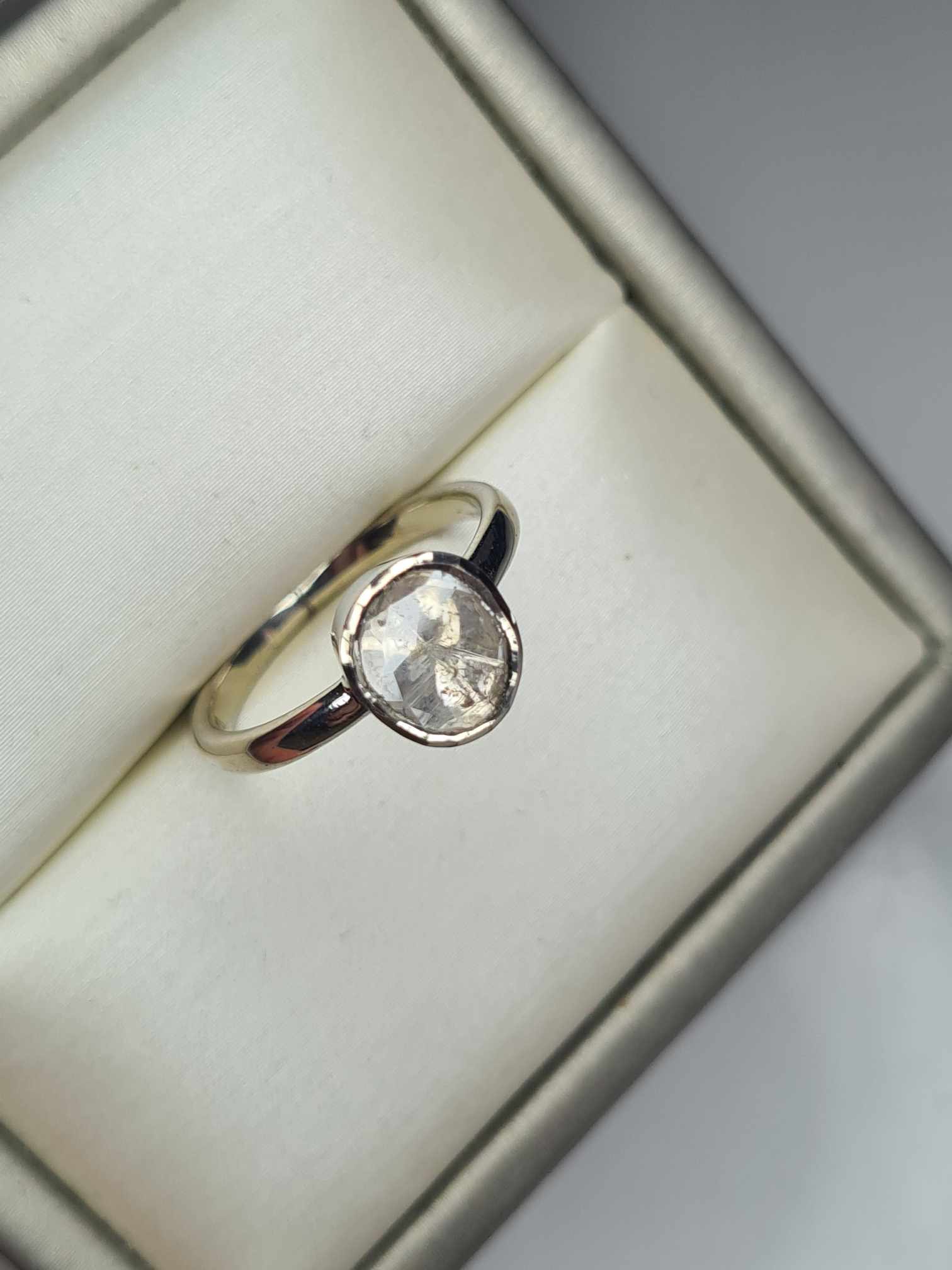 0.25ct Polki Diamond Solitaire Ring in Platinum Overlay 925 Sterling Silver SIZE J