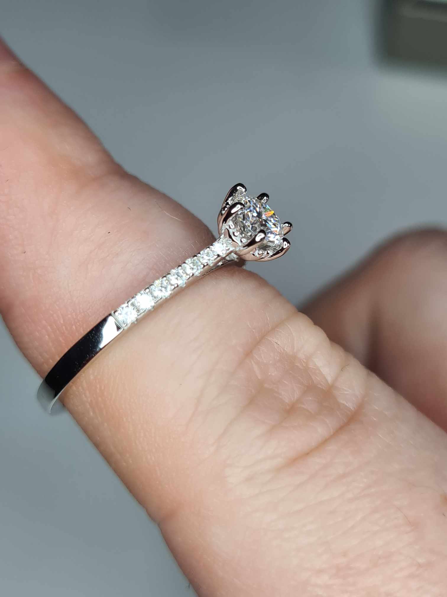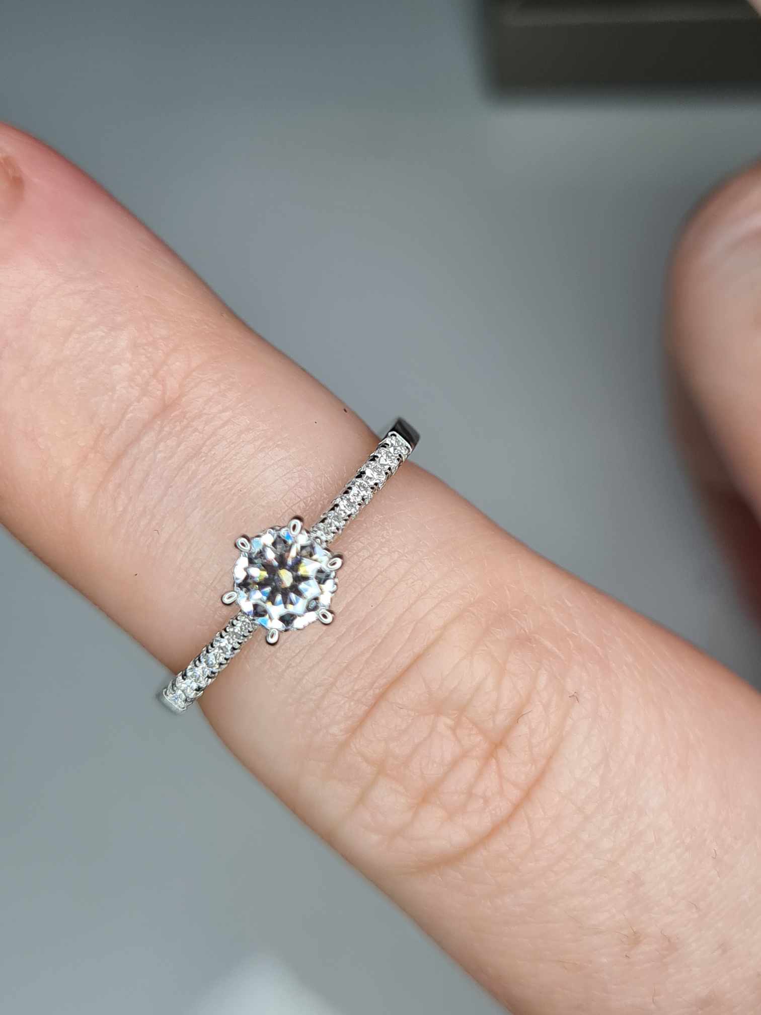 0.42ct Moissanite Engagement ring Rhodium Overlay 925 Sterling Silver