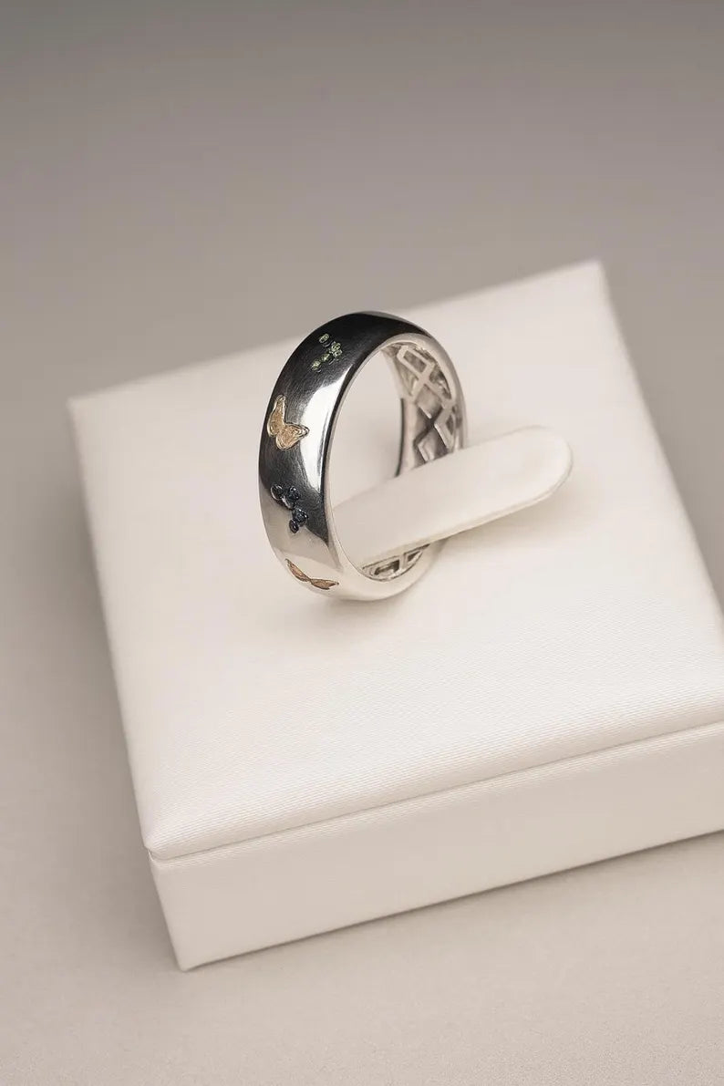 0.50ct Multi Diamond Band Butterfly Ring in Platinum Overlay 925 Sterling Silver