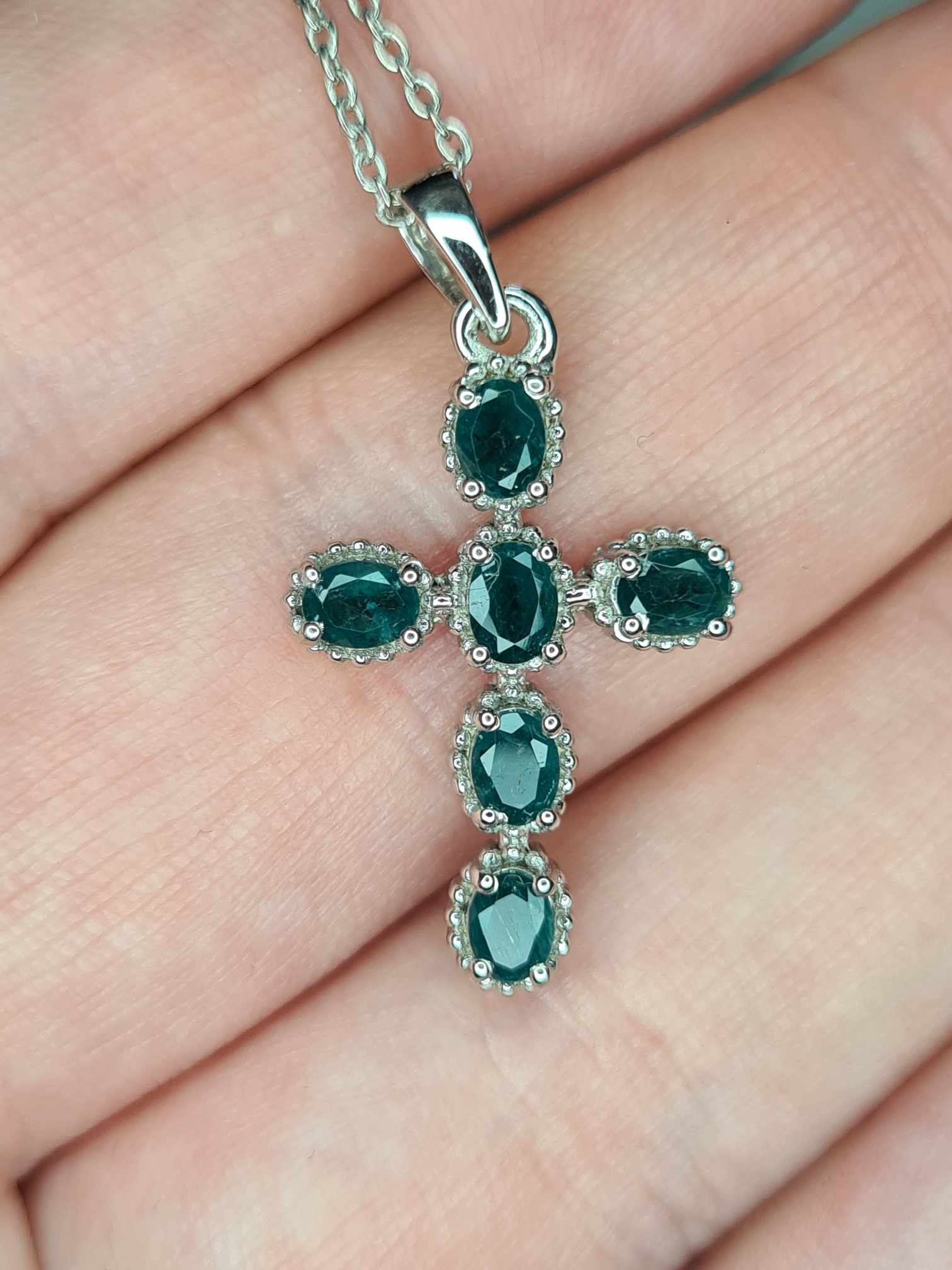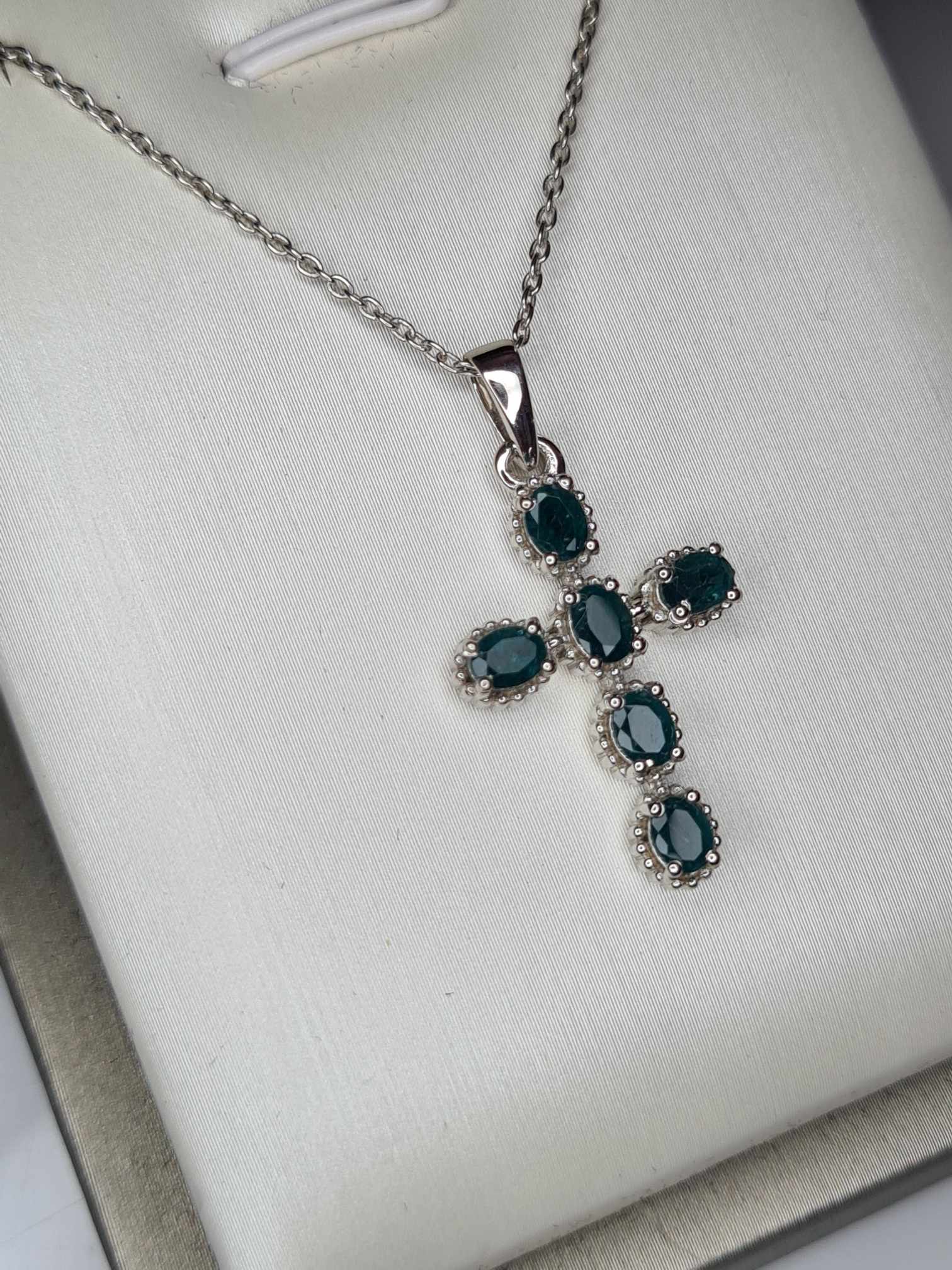 Divine Elegance: The cross pendant showcases the rare and exquisite beauty of Grandidierite, the third most expensive gemstone globally, known for its captivating blue-green hue.