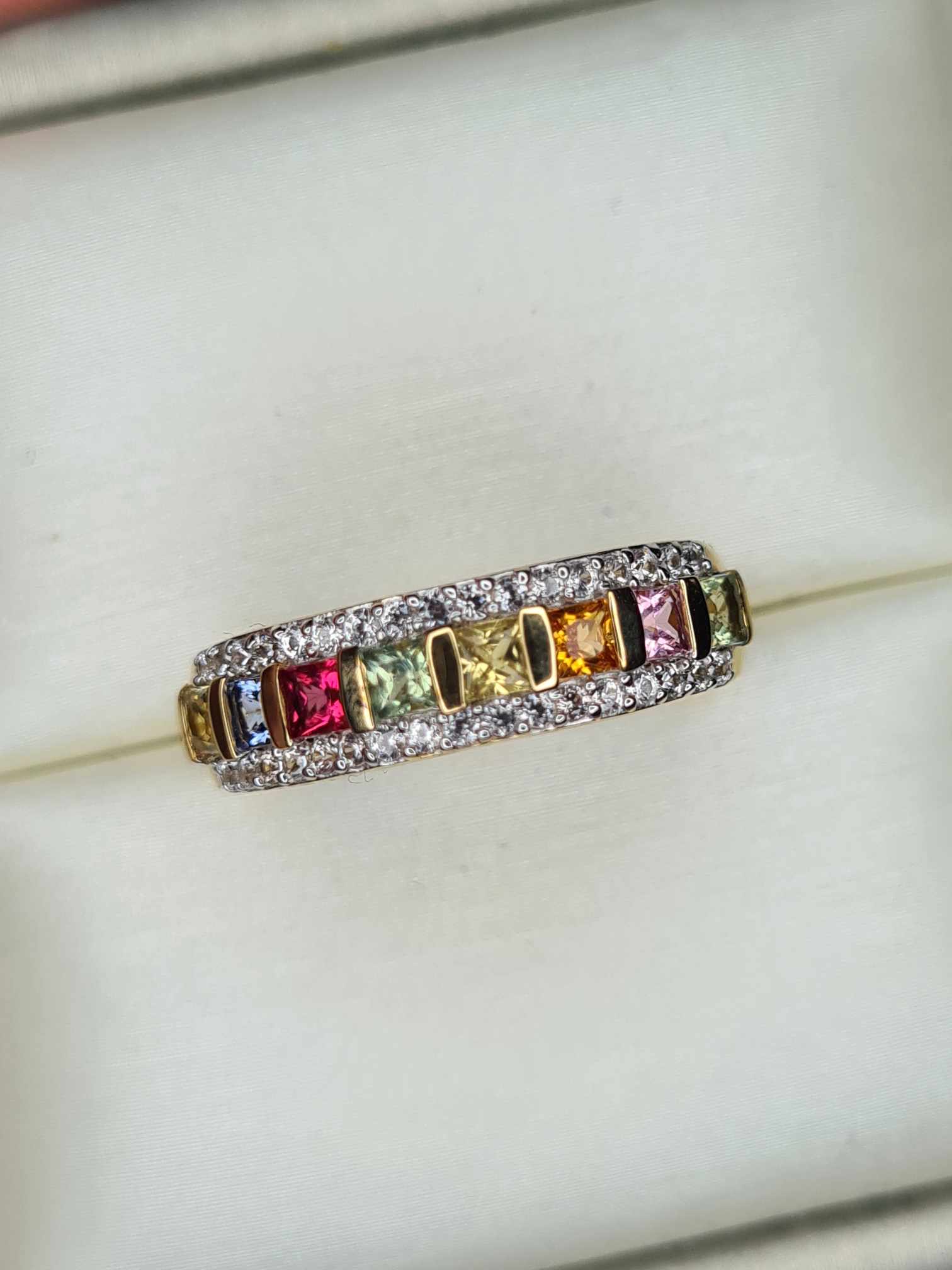 1.14ct Rainbow Sapphire and Natural Zircon Half Eternity Band Ring