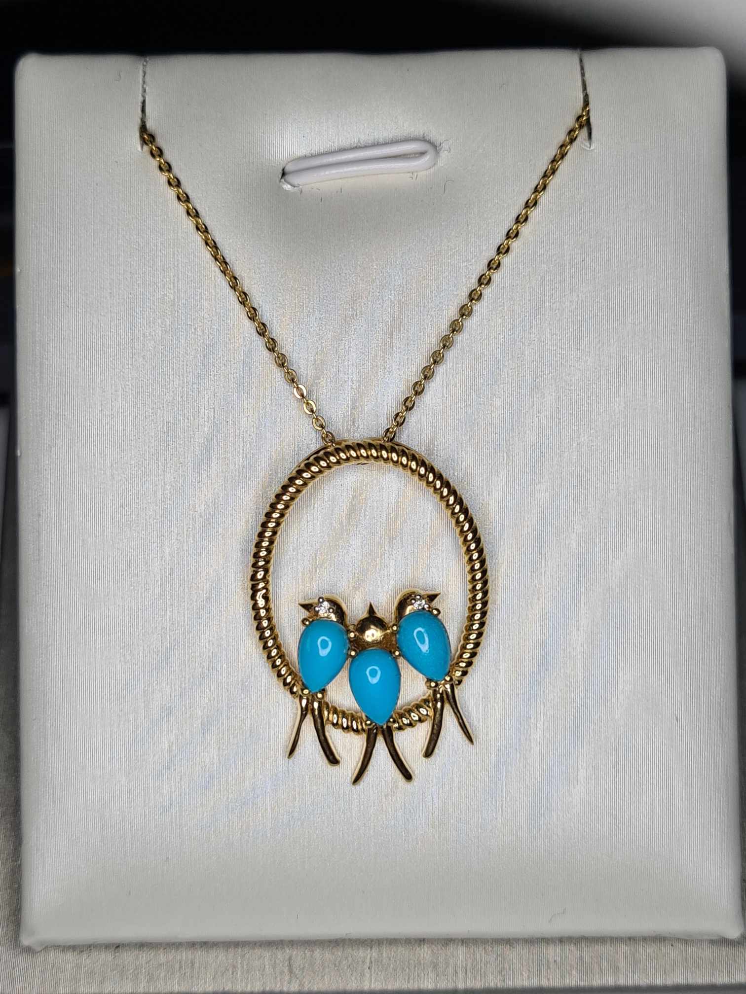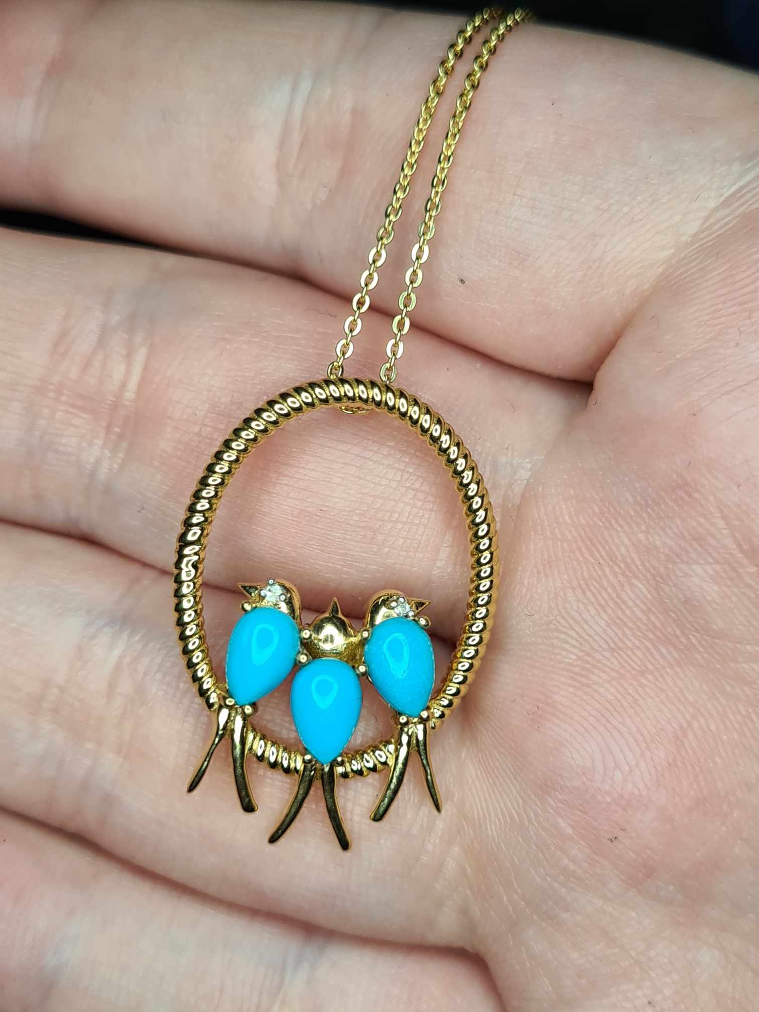 1.23 Ct Bird Arizona Sleeping Beauty Turquoise & Zircon Necklace 18k gold overlay 925 sterling silver