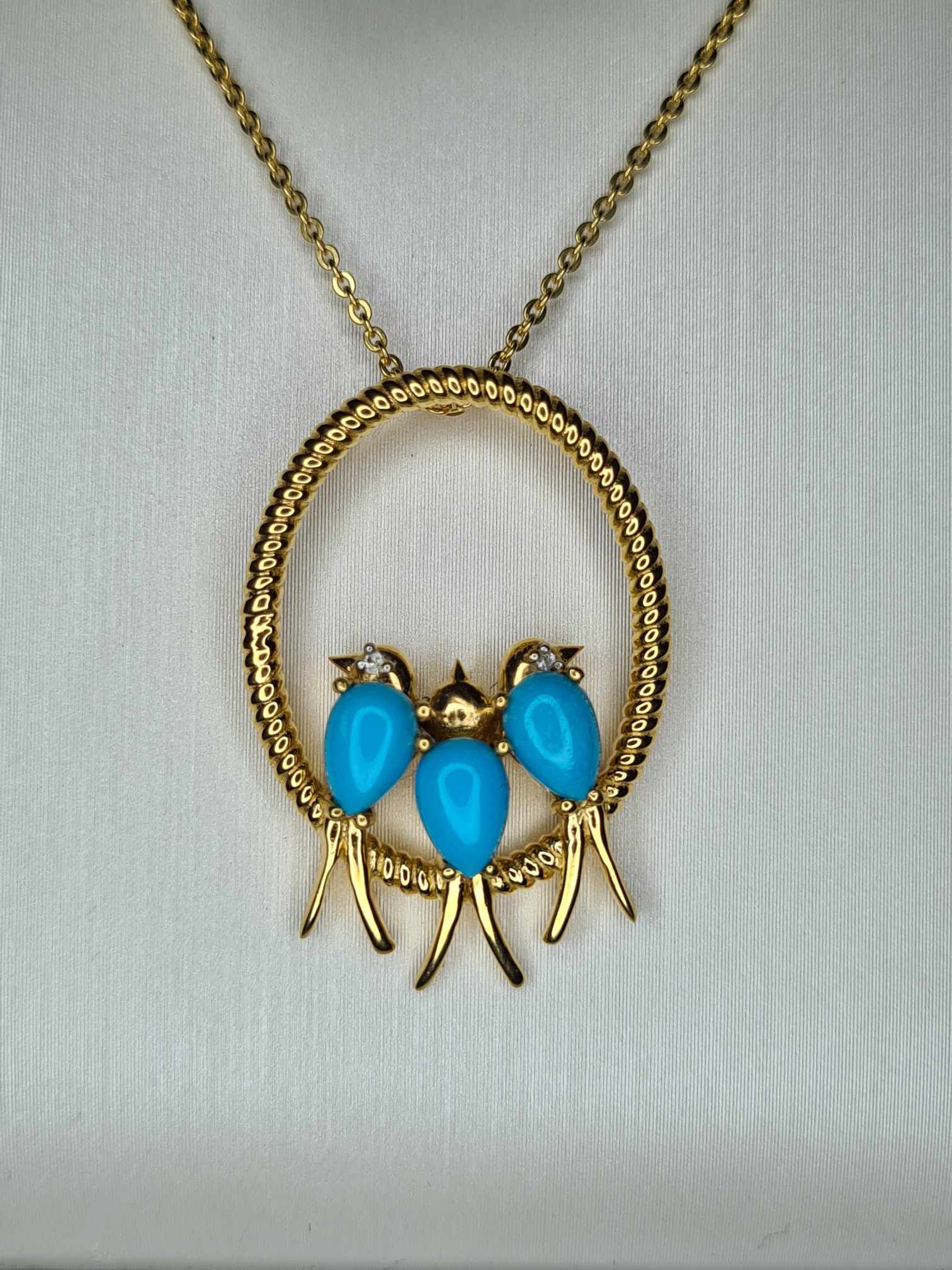 This Stunning Necklace features 3 sleeping beauty turquoise swallows