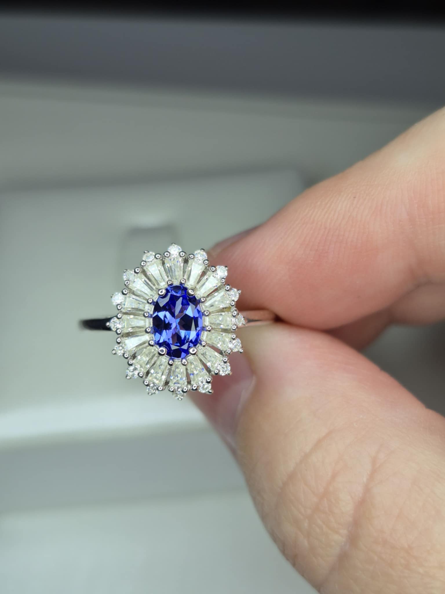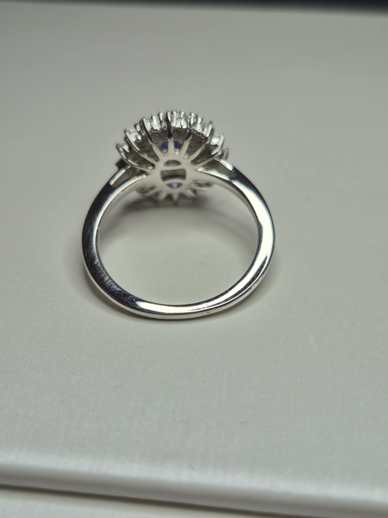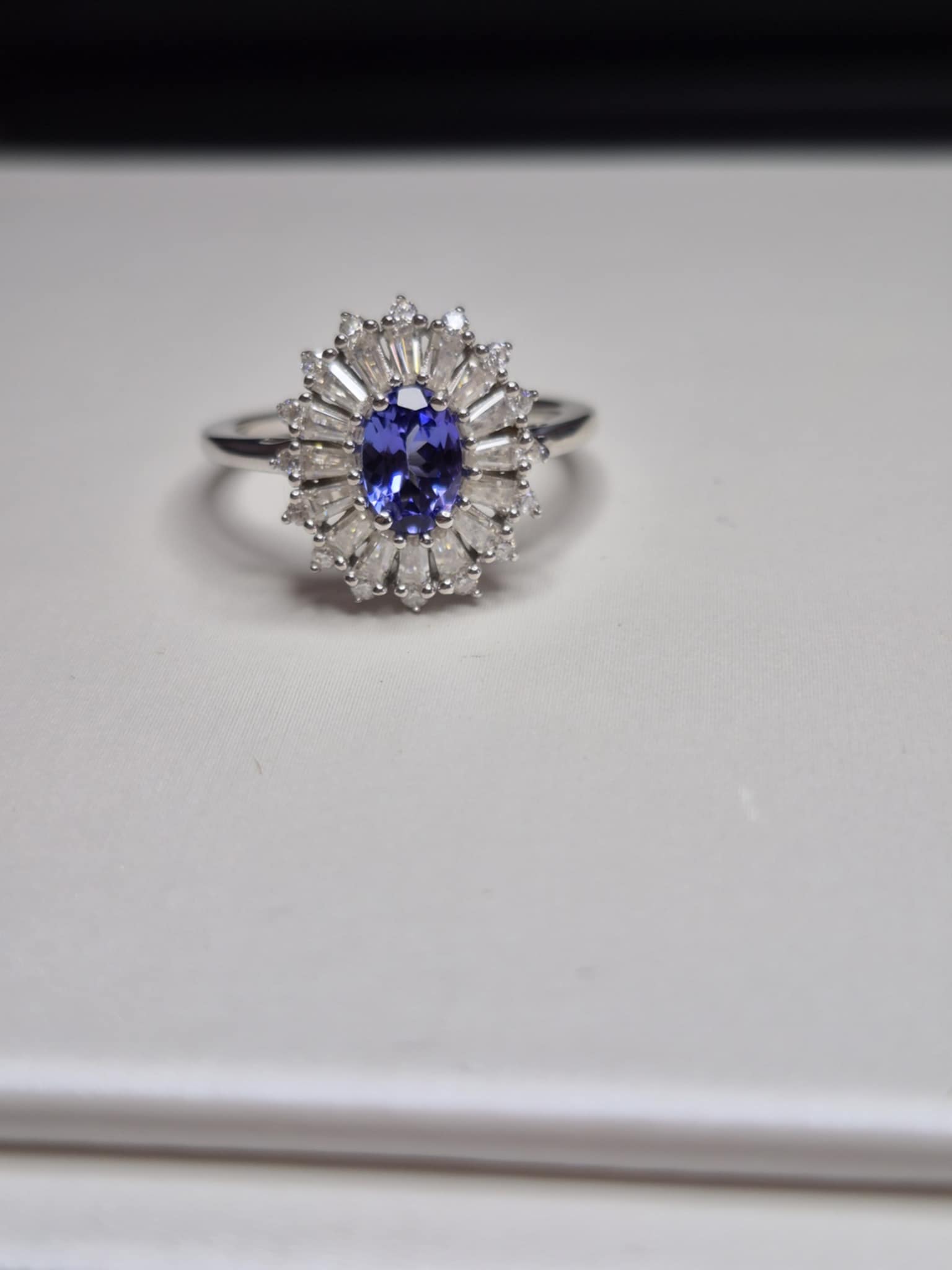 1.24ct Tanzanite & Moissanite Halo Ring in Rhodium Overlay 925 Sterling Silver SIZE M