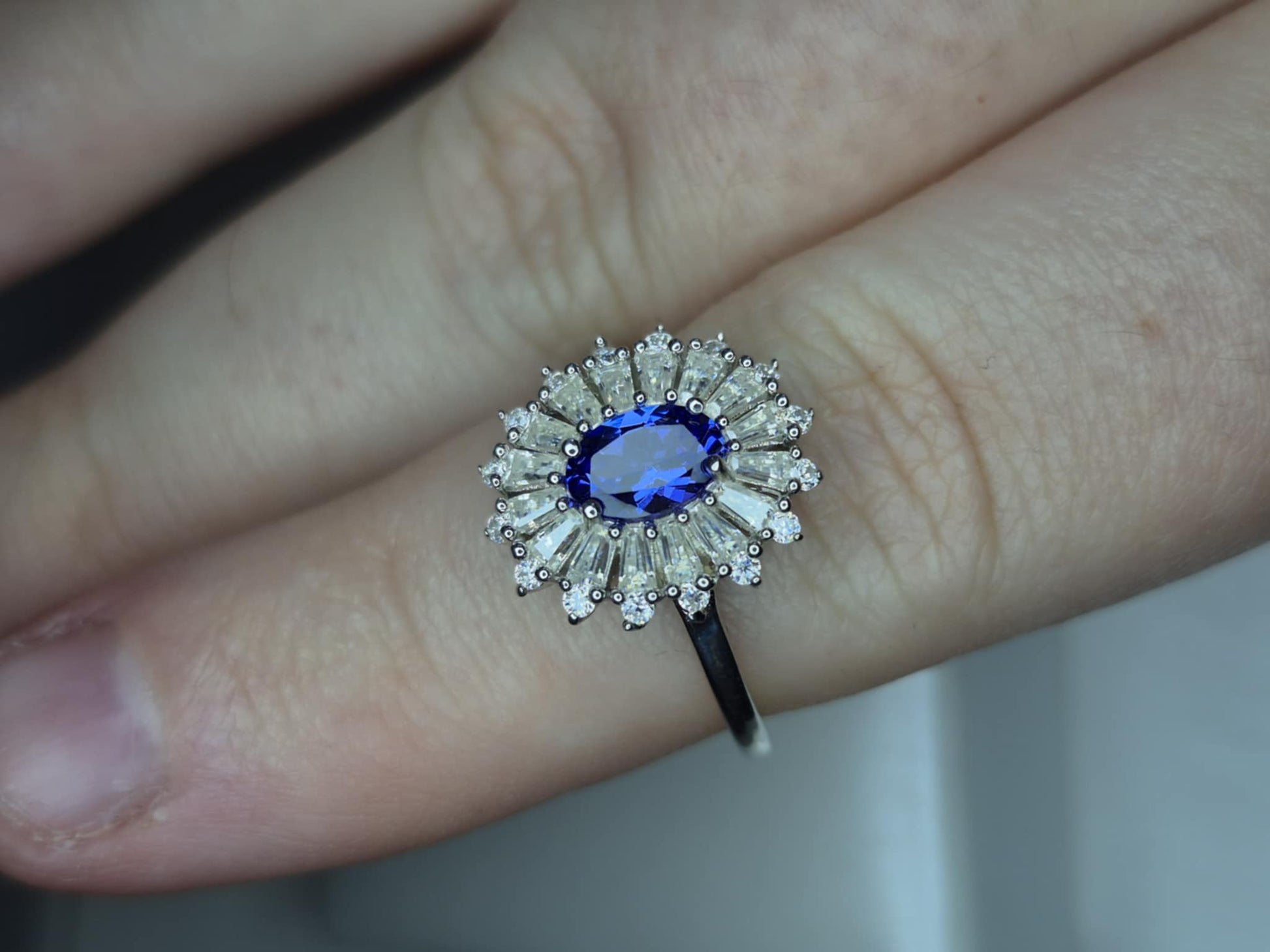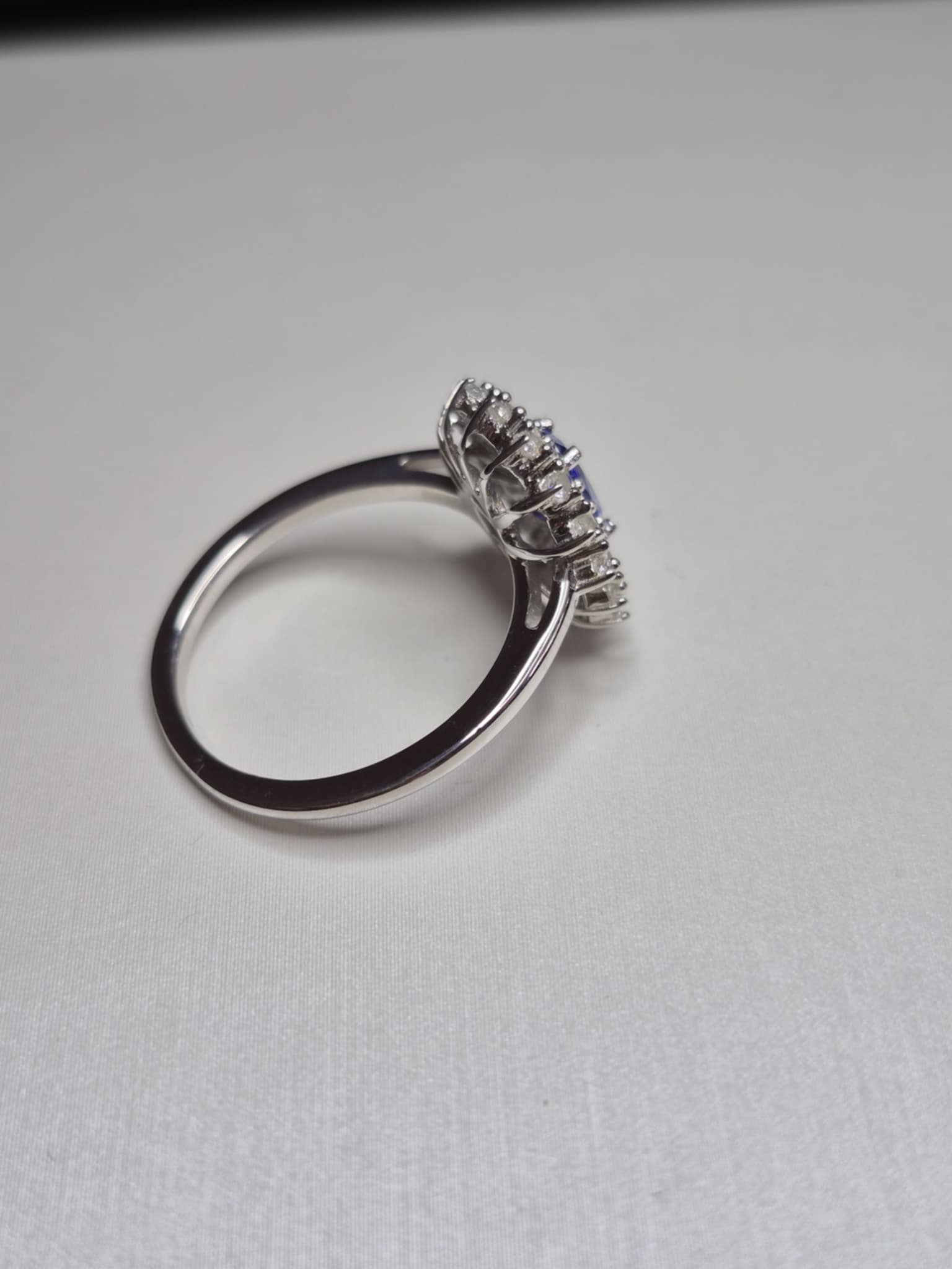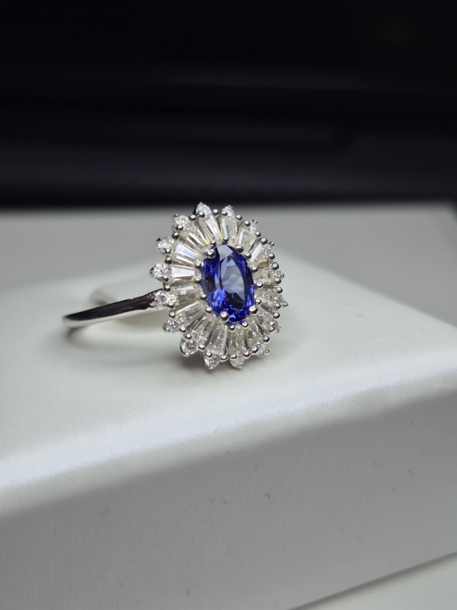 1.24ct Tanzanite & Moissanite Halo Ring in Rhodium Overlay 925 Sterling Silver SIZE M