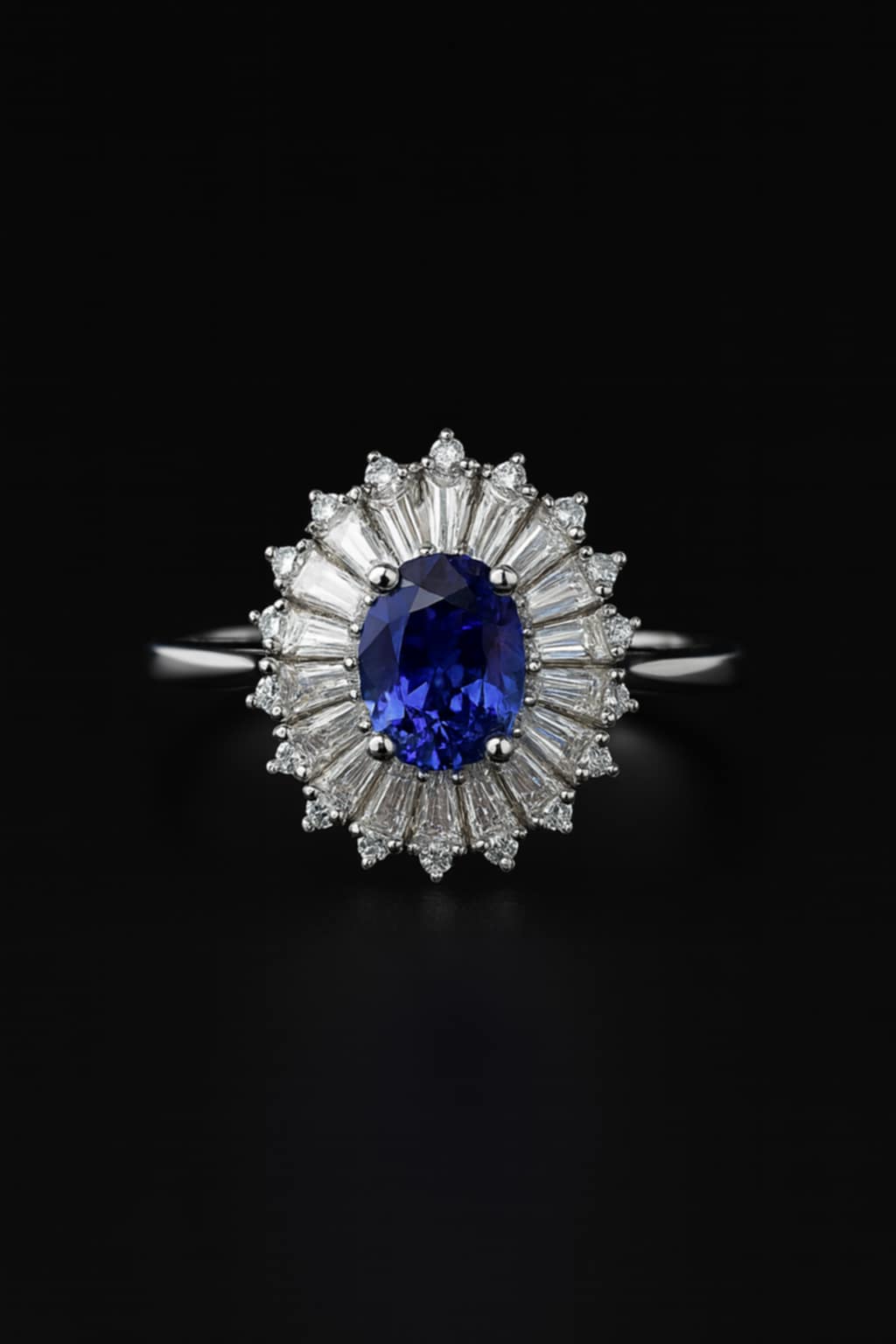 1.24ct Tanzanite & Moissanite Halo Ring in Rhodium Overlay 925 Sterling Silver