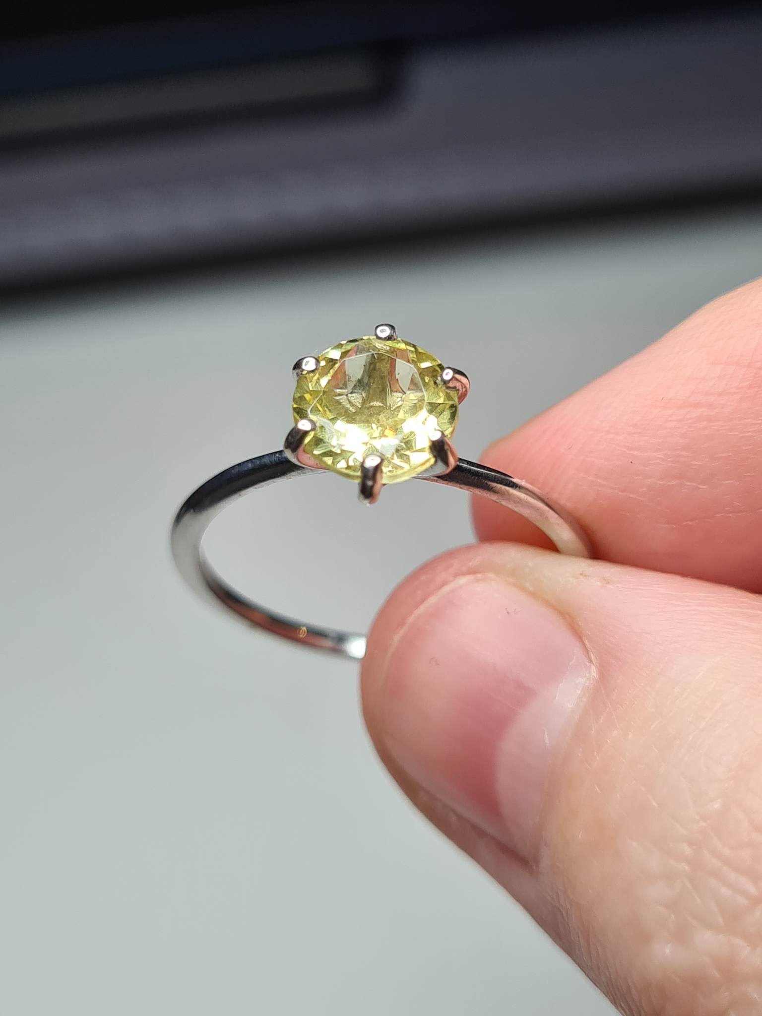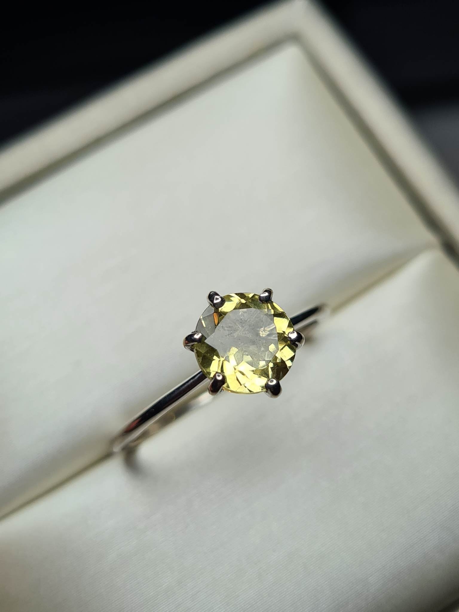 Captivating Yellow Apatite: This solitaire gemstone ring features a stunning Yellow Apatite—one of the purest yellow crystal gemstones. The 7mm Faceted Cut enhances its brilliance, capturing the essence of pure sunshine on your finger.