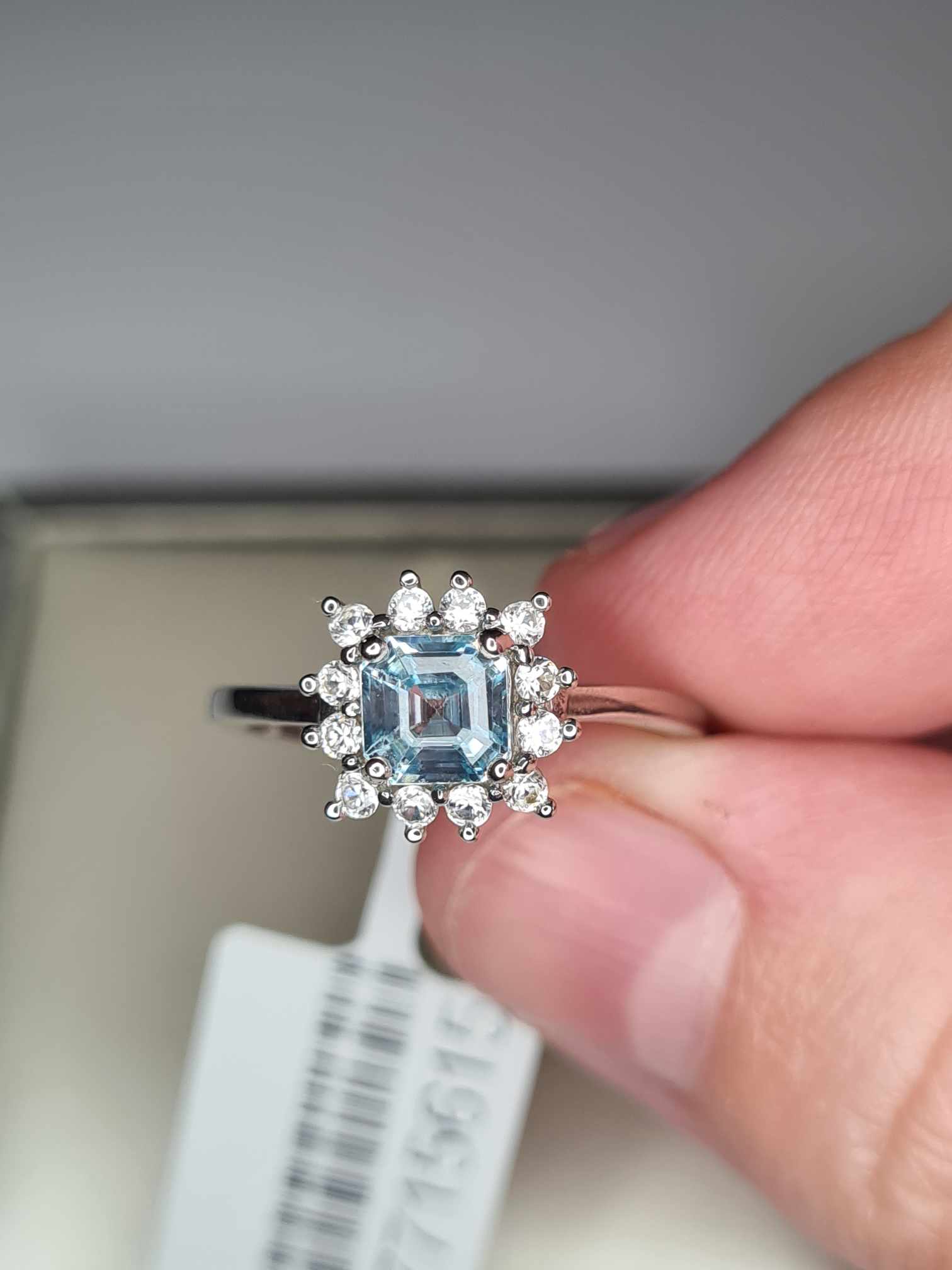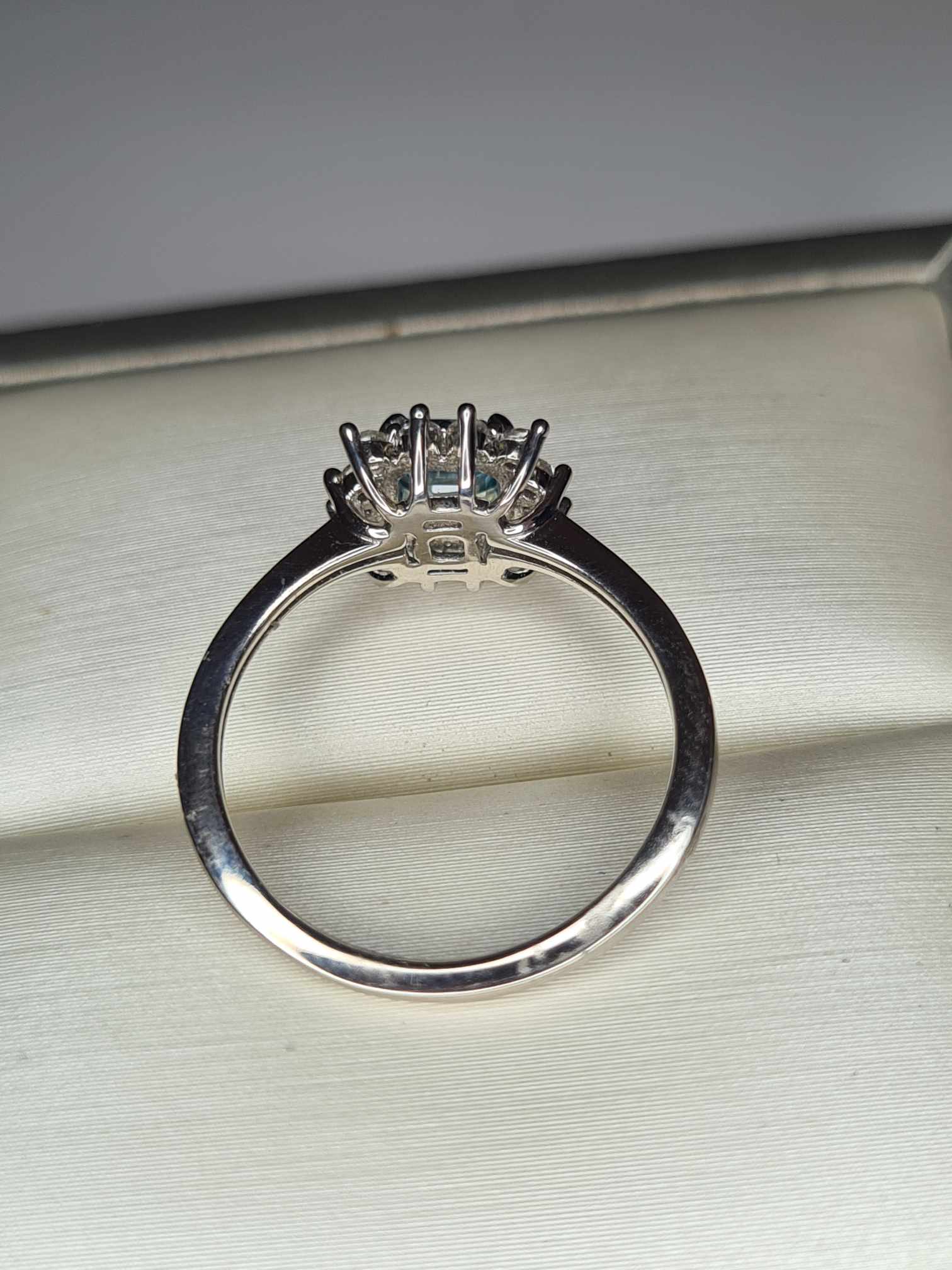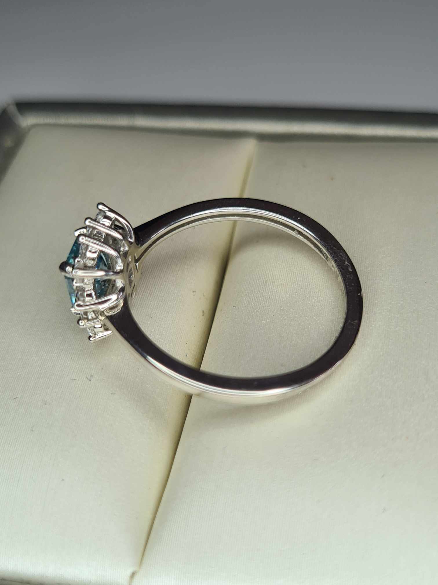 1.25ct Blue & White Zircon Halo Ring in Platinum Overlay 925 Sterling Silver SIZE L