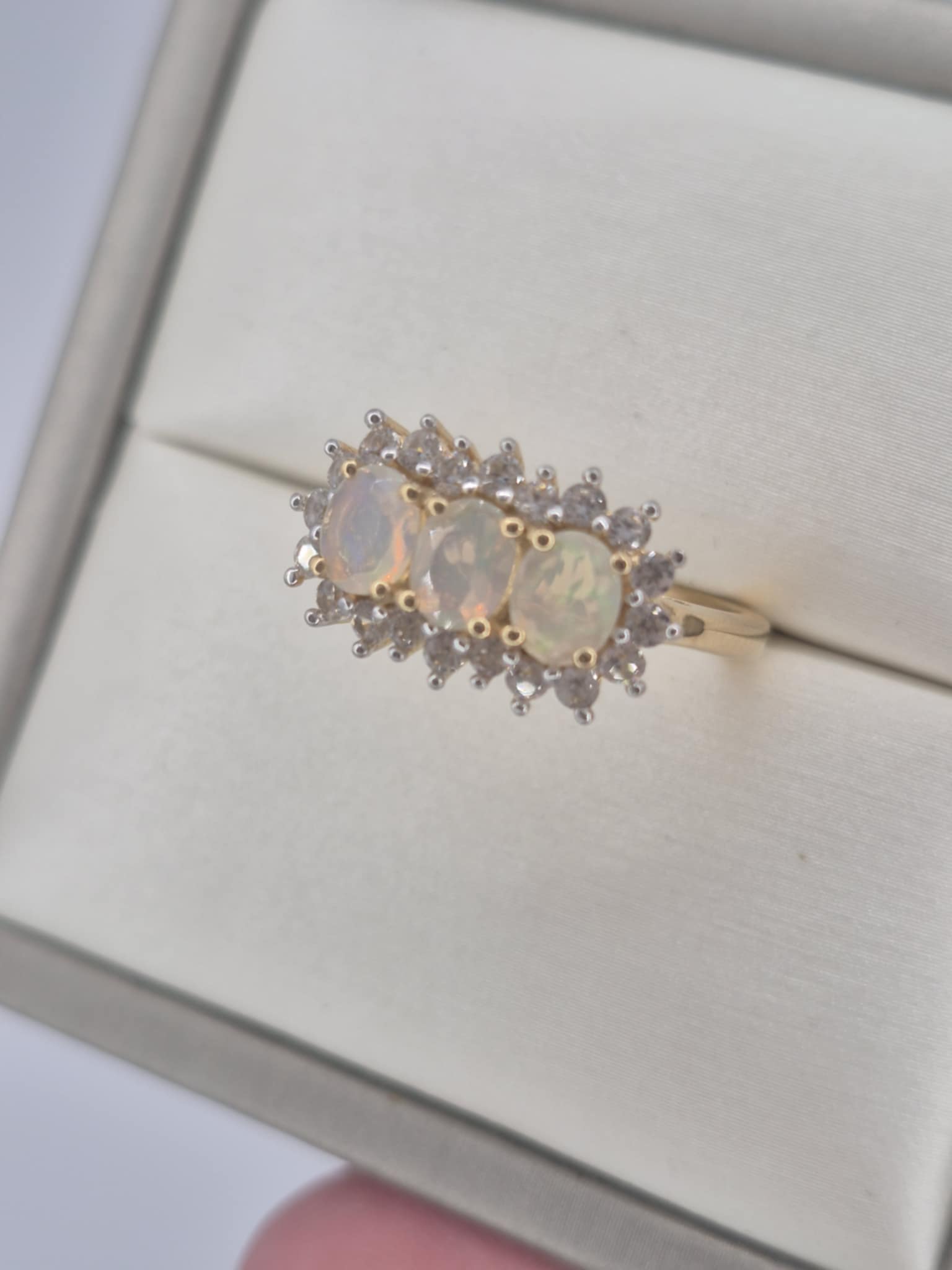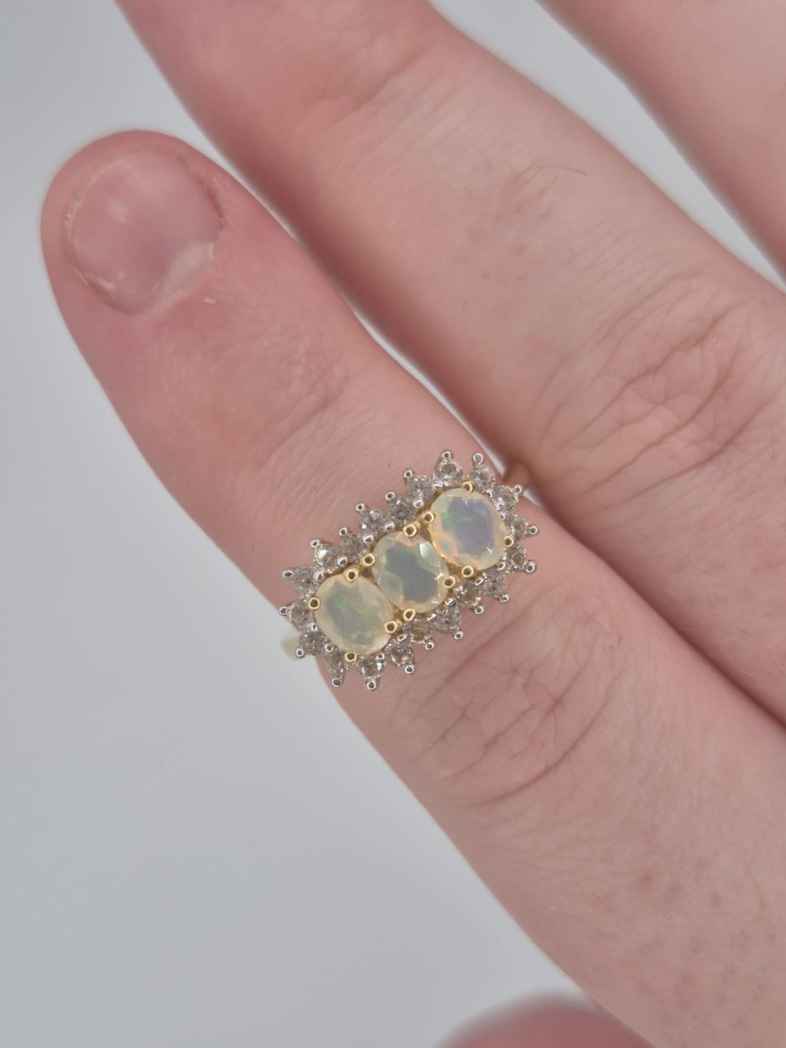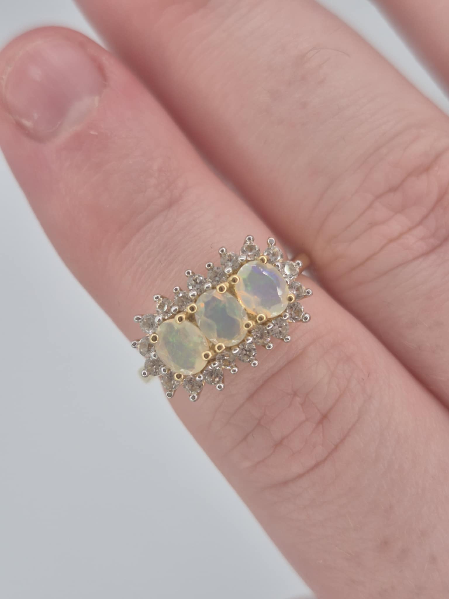 1.26ct Ethiopian Opal & White Zircon Halo Ring in 18K Gold Overlay 925 Sterling Silver SIZE L