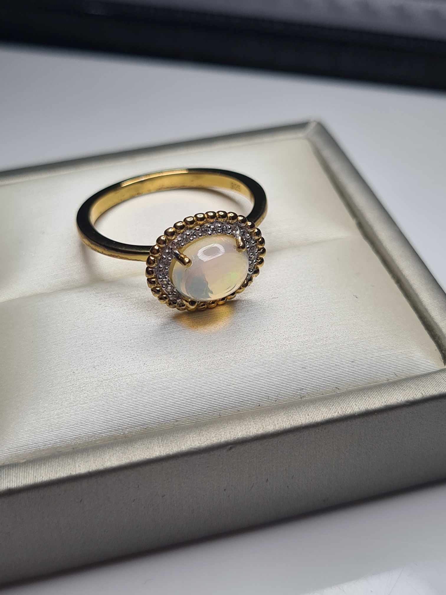 1.27ct Ethiopian Welo Opal & Natural Zircon Ring in 18K Gold Overlay 925 Sterling Silver SIZES L,T