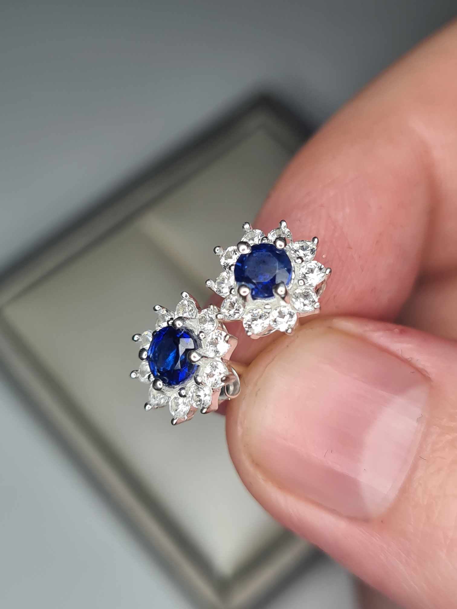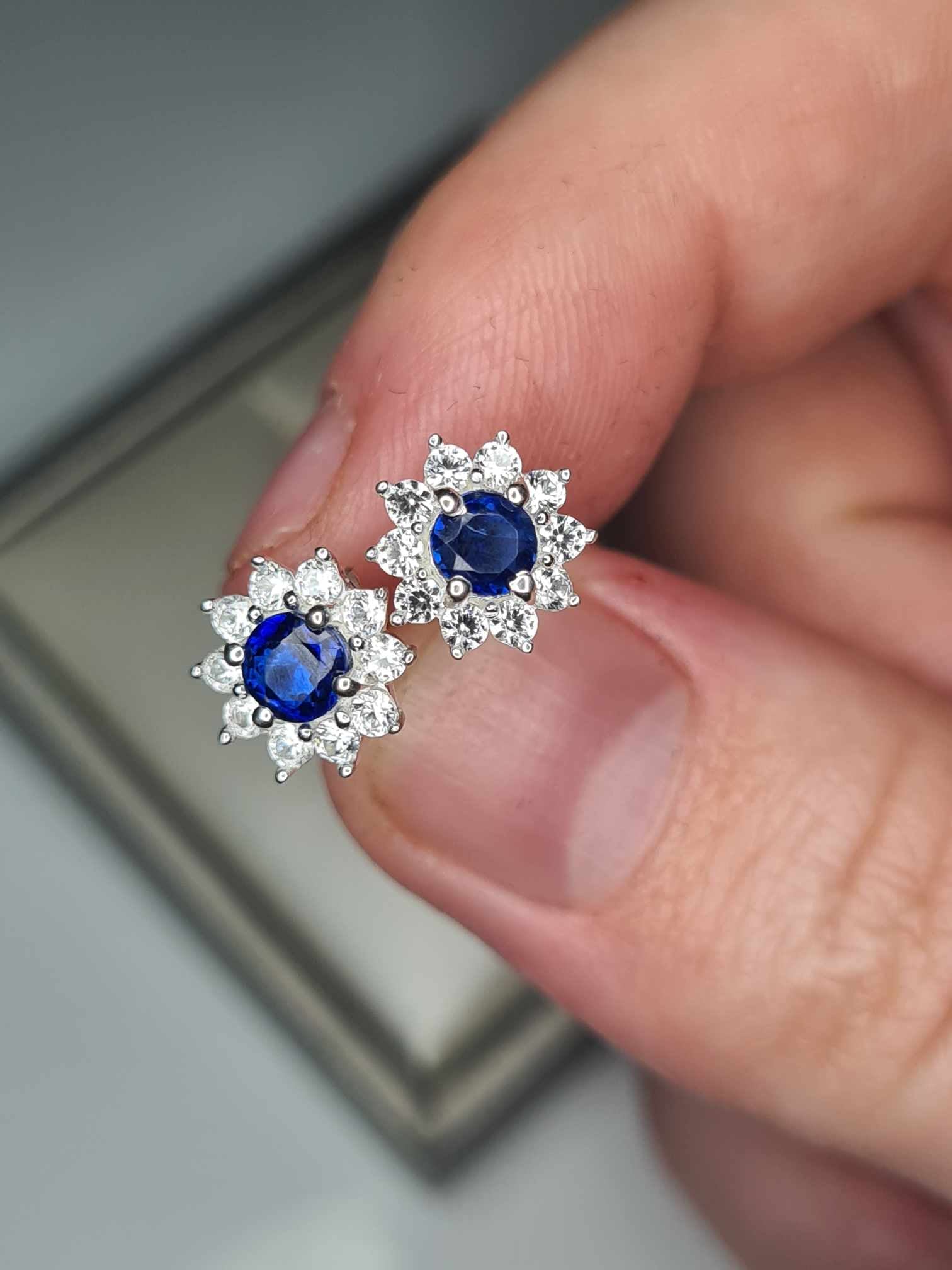 Floral Radiance: The heart of each stud boasts a 4mm Kyanite with a faceted cut (0.666ct), surrounded by a delicate halo of 10 White Zircon gems, each measuring 1.7mm with a faceted cut (0.600ct). This arrangement captures the essence of a blooming flower, radiating grace and timeless allure.