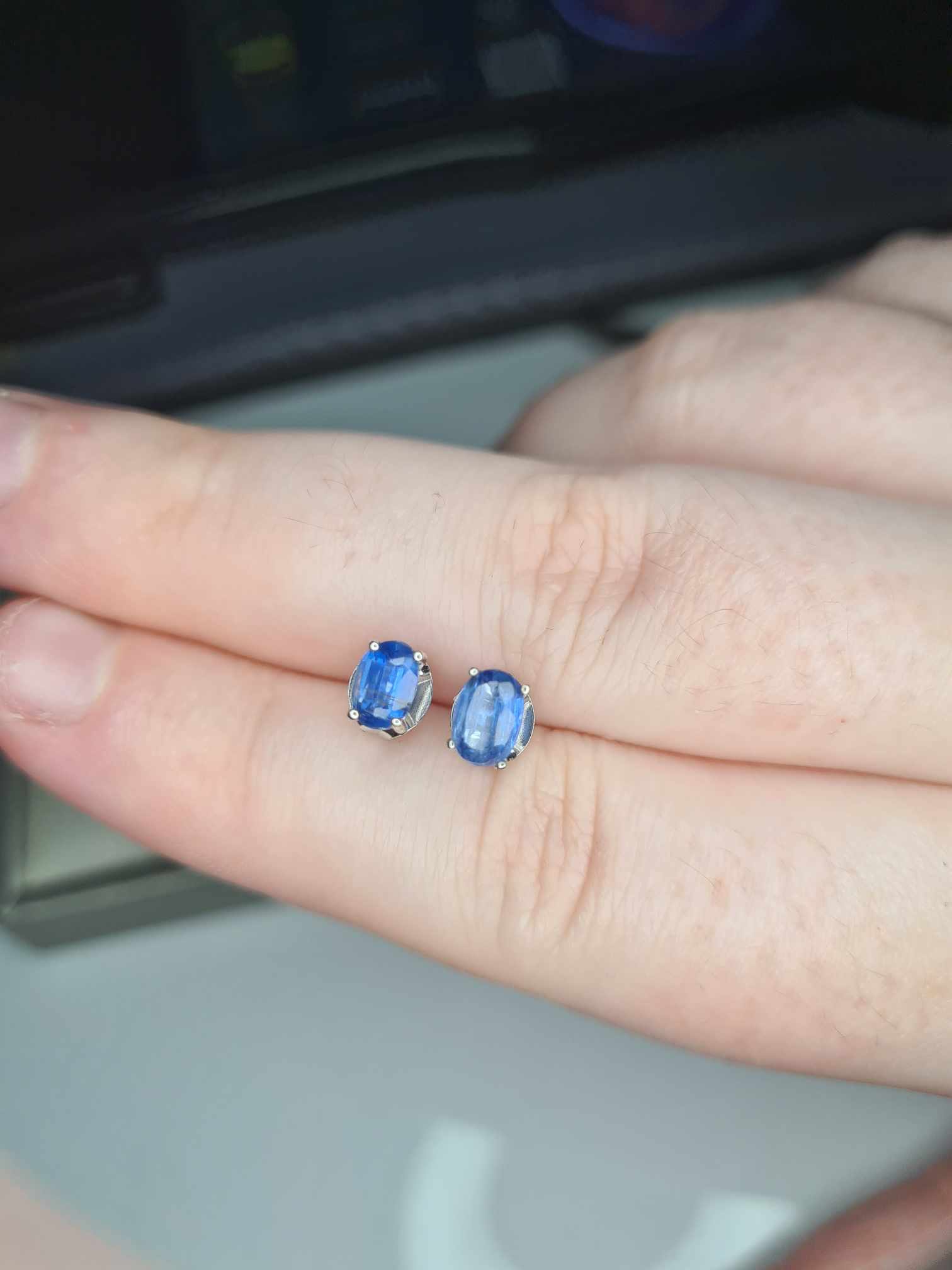 1.28ct Natural Himalayan Kyanite Solitaire Stud Earrings in Platinum Gold Overlay 925 Sterling Silver