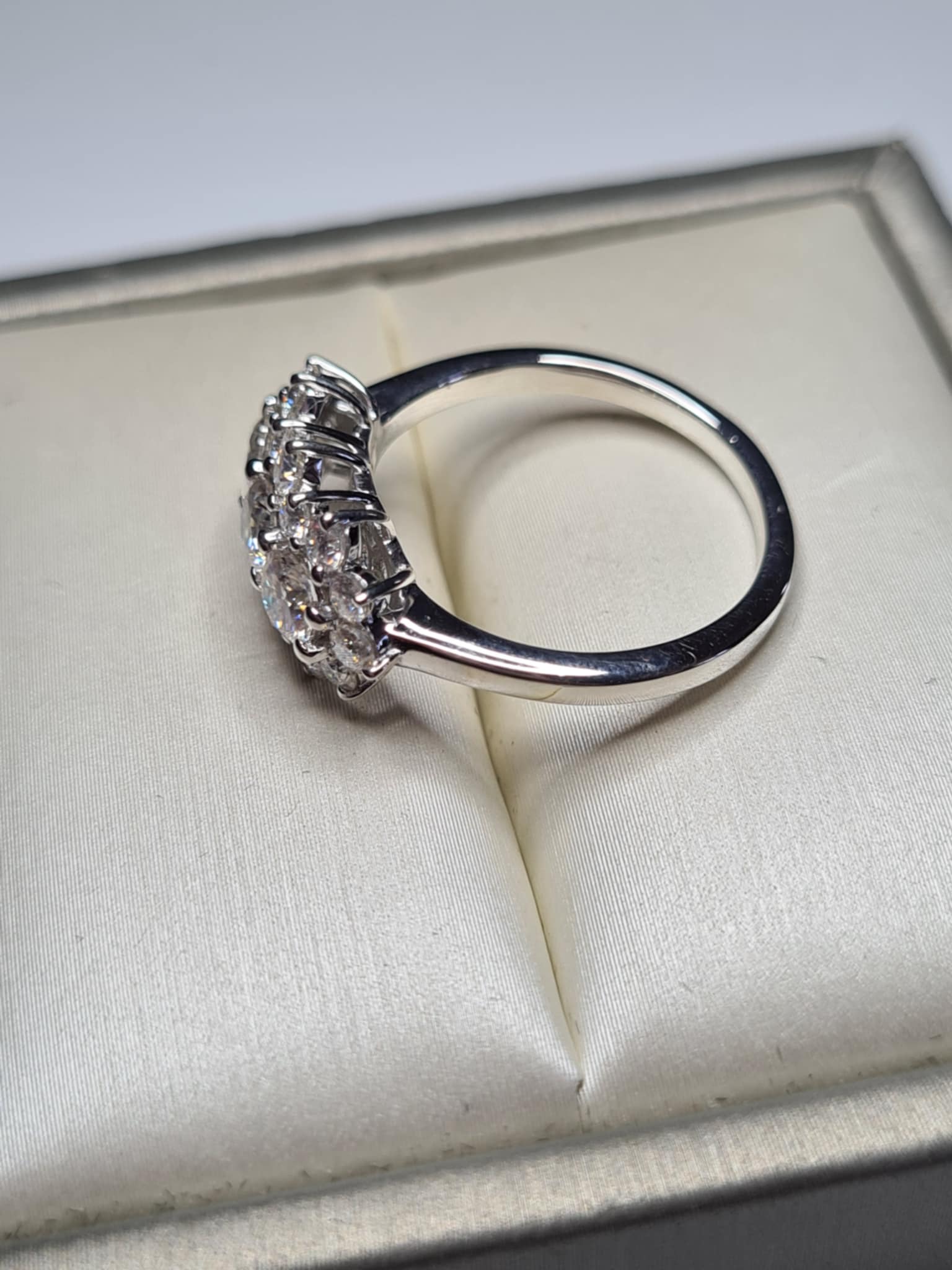 1.30ct Moissanite Boat Ring in Rhodium Overlay 925 Sterling Silver SIZE M