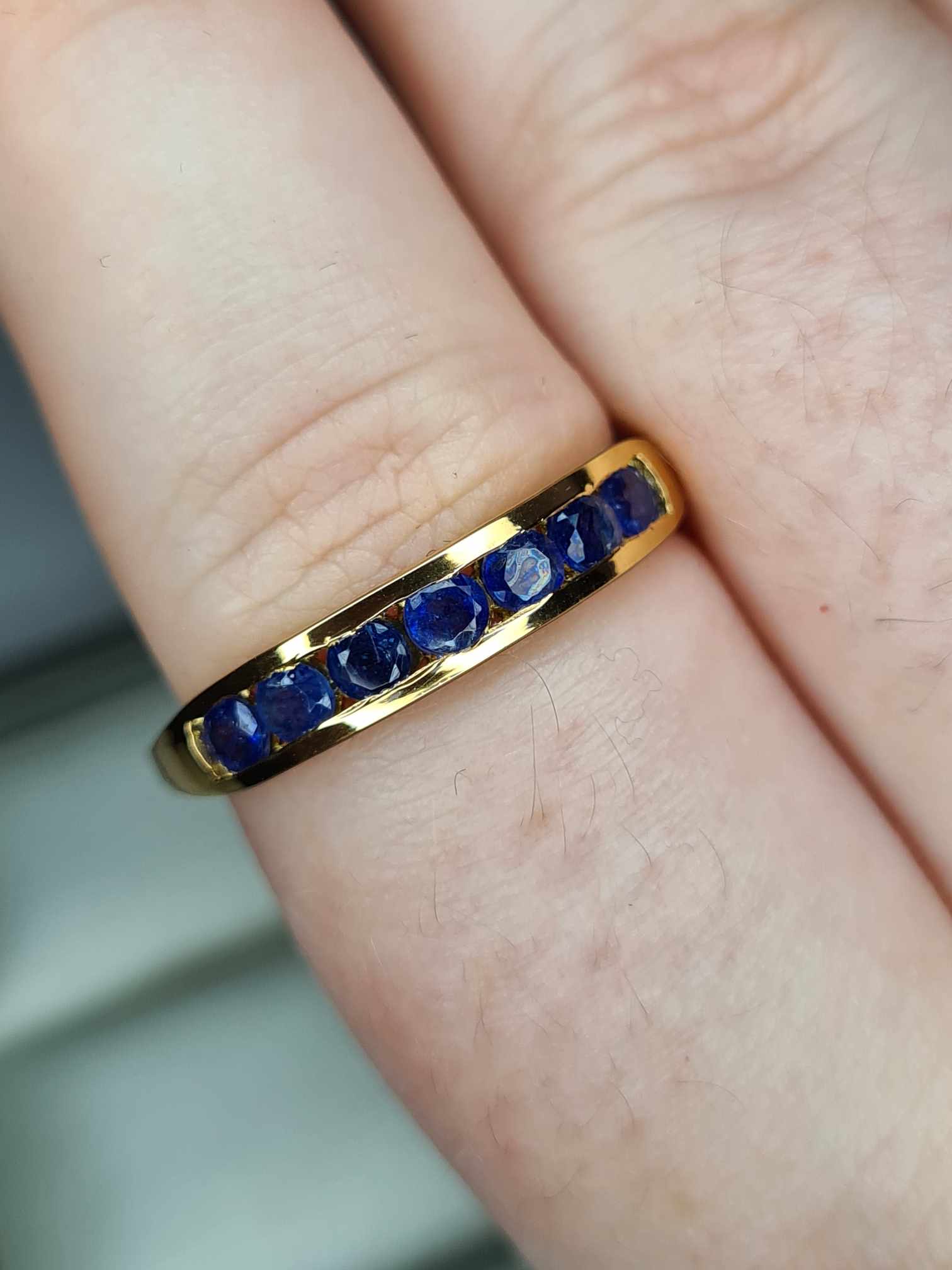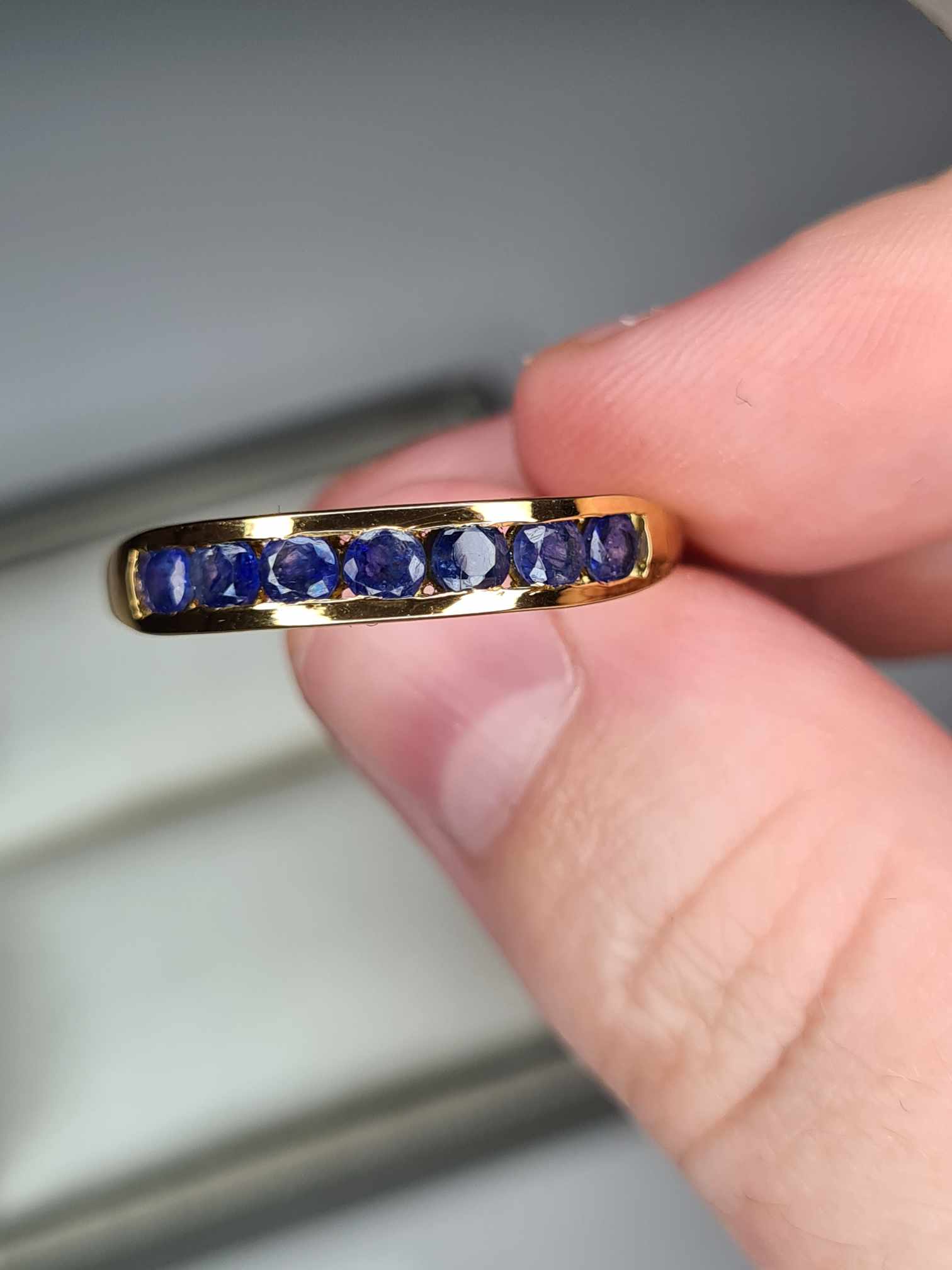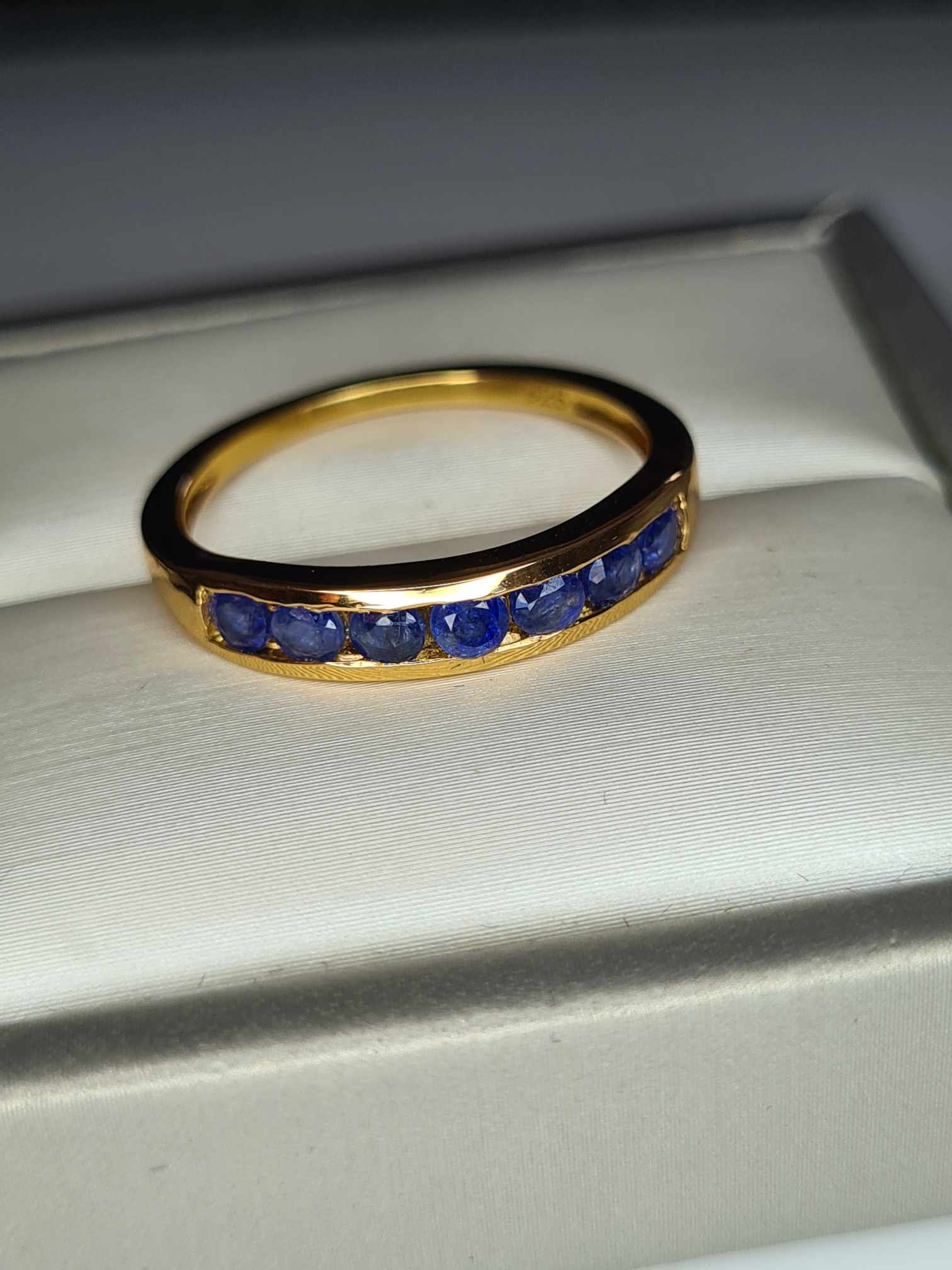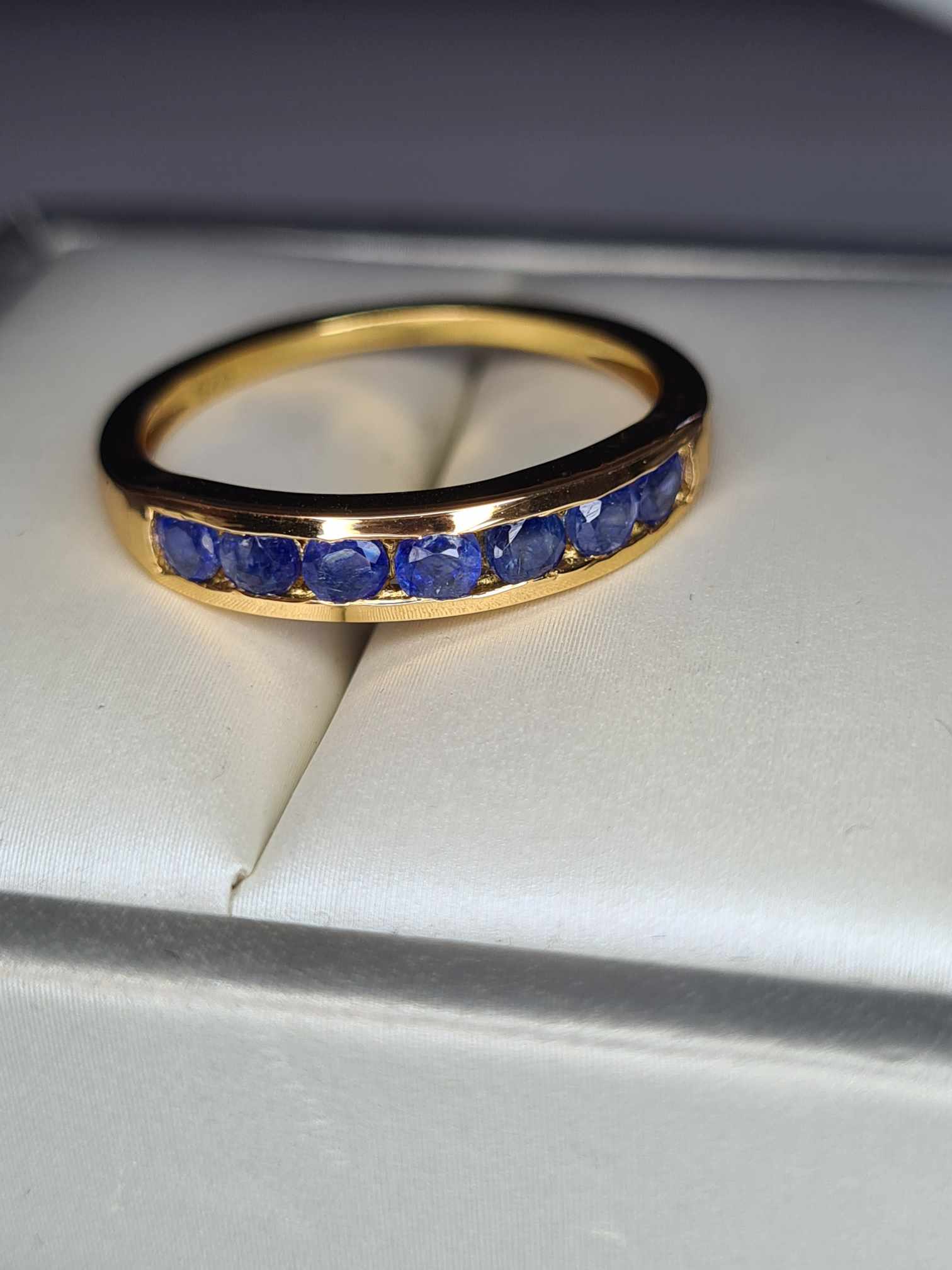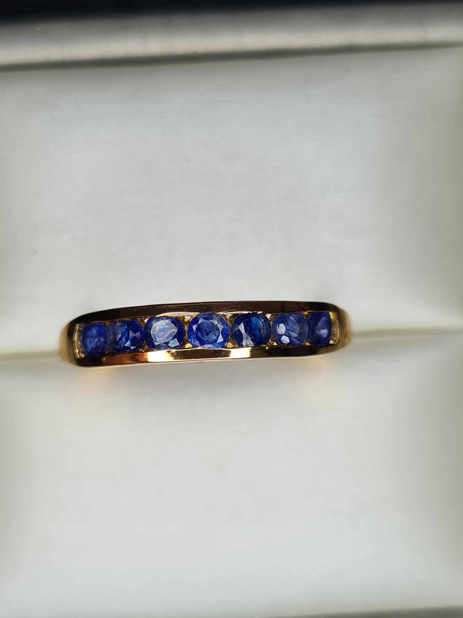 1.30ct Sapphire Half-Eternity Band Ring in 14K Gold Overlay 925 Sterling Silver SIZE T