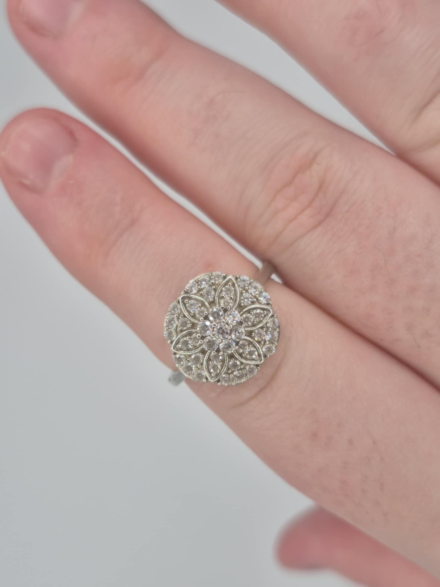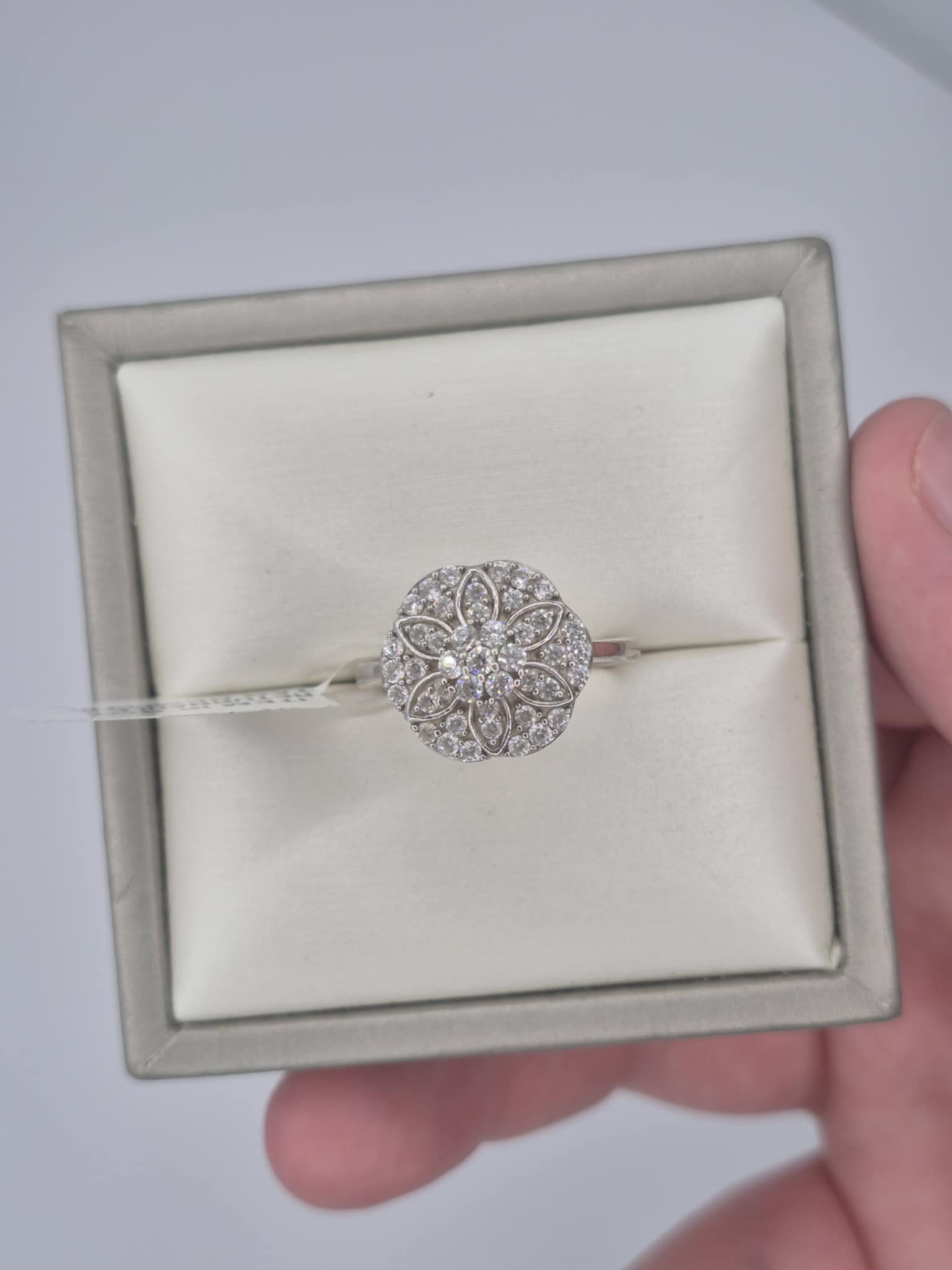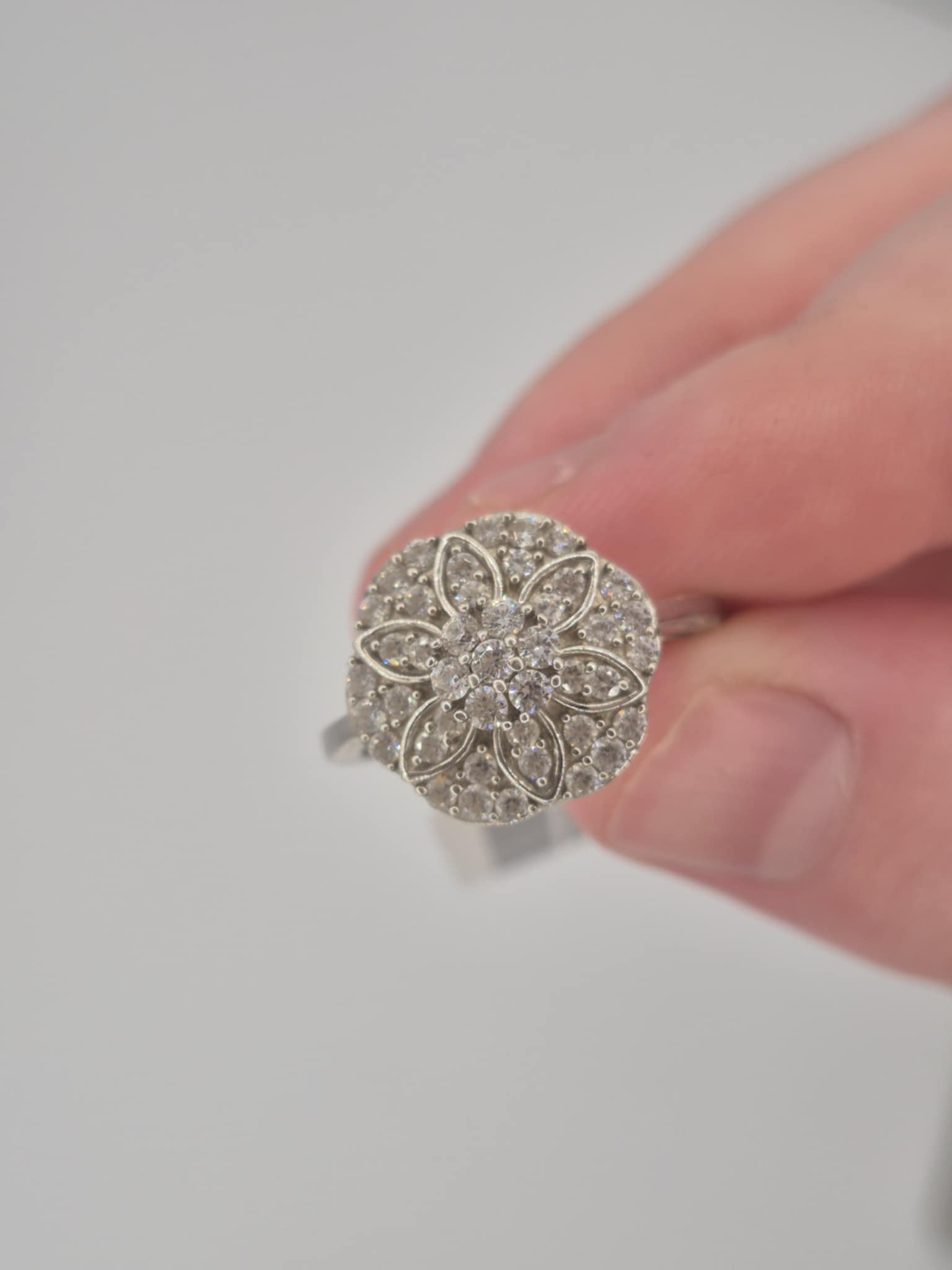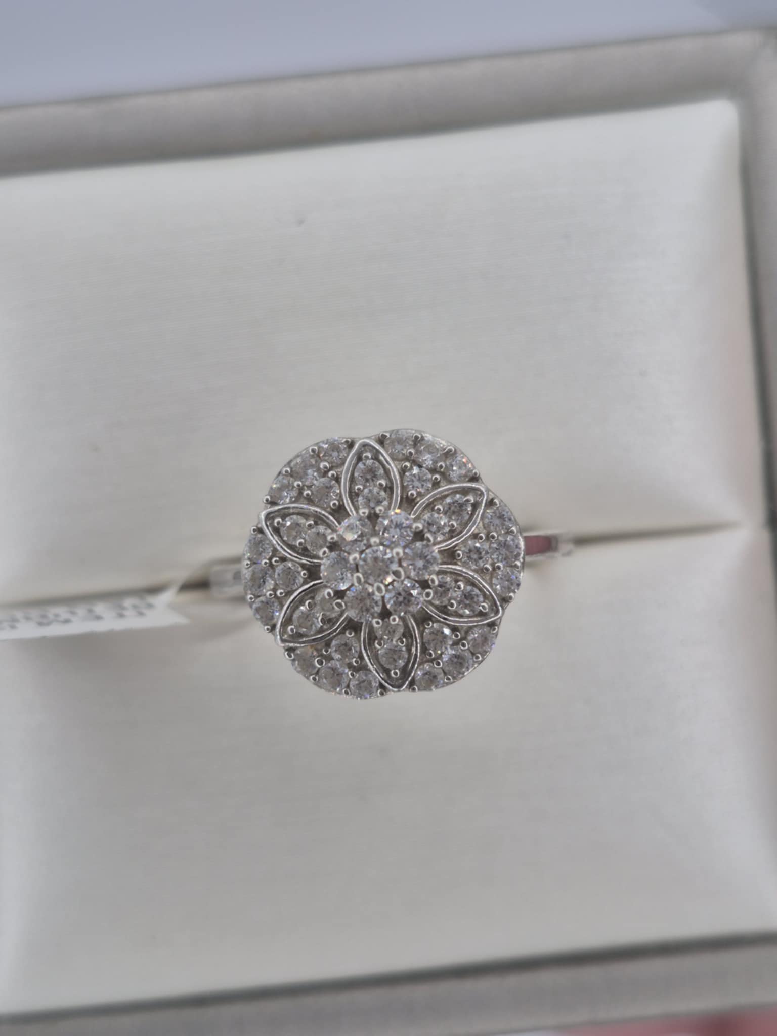 1.38 Ct. Swarovski Zirconia Floral Ring Platinum Overlay 925 Sterling Silver SIZE O