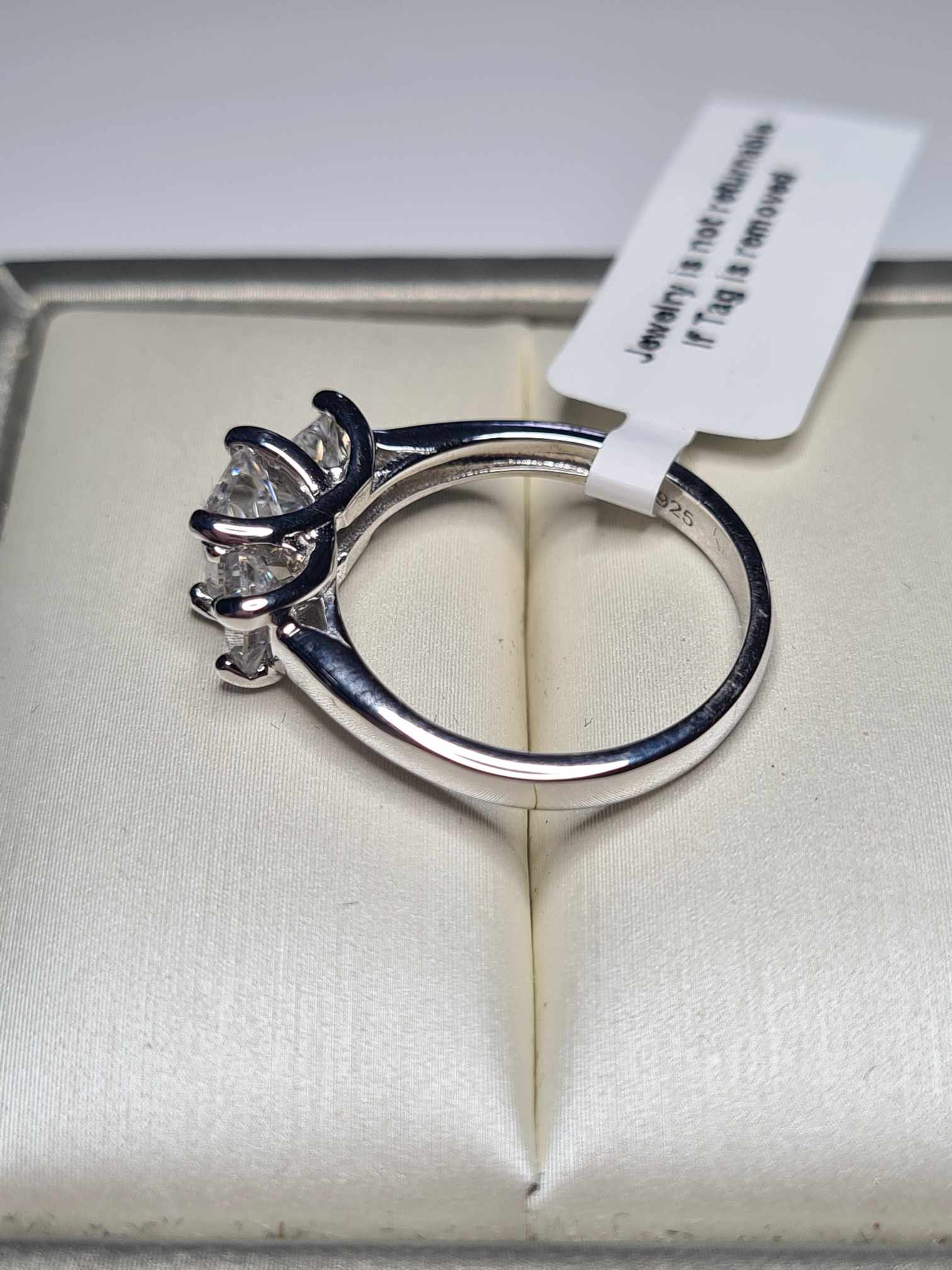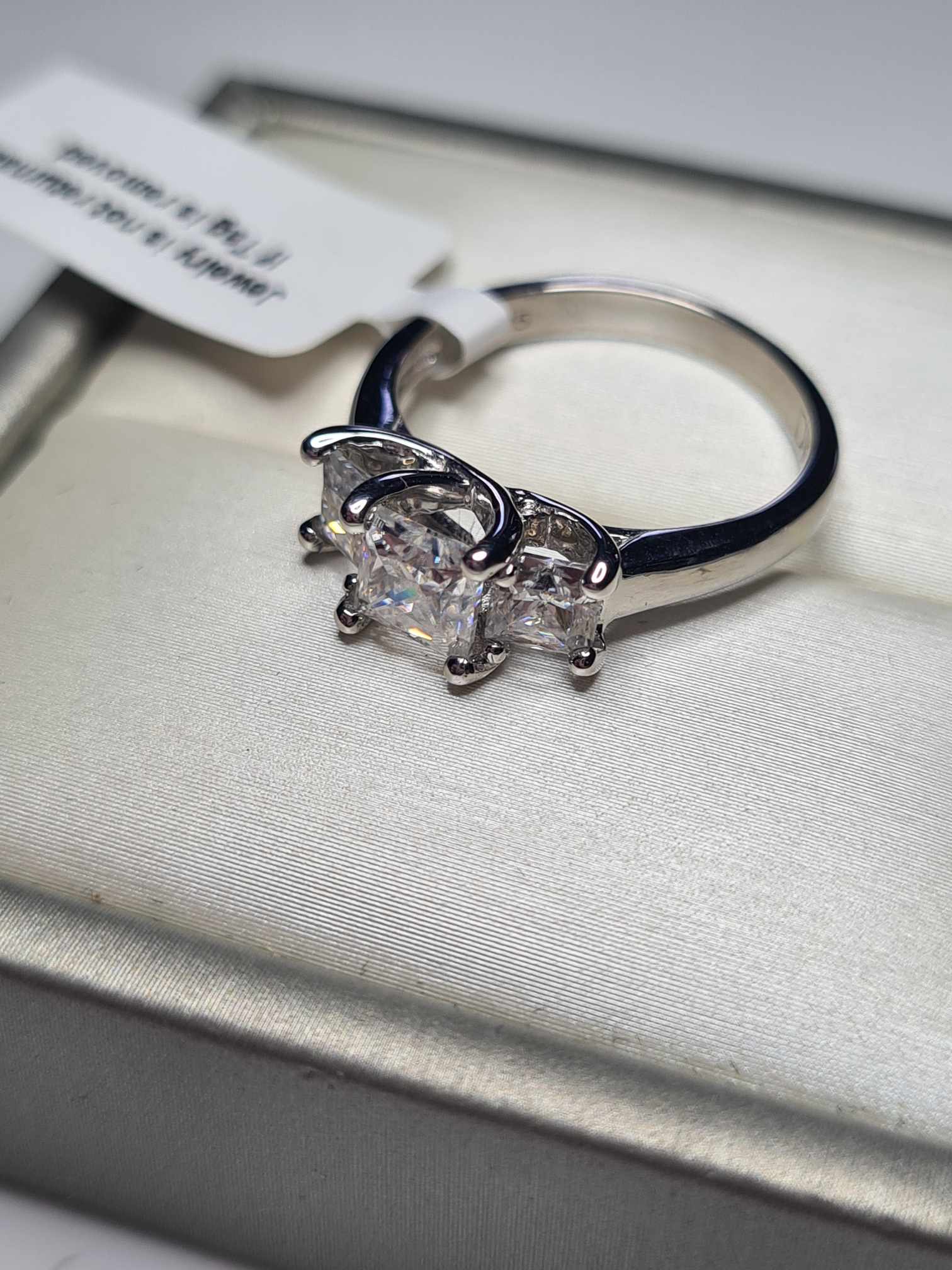 1.43ct Princess Cut Moissanite Ring in Rhodium Overlay 925 Sterling Silver SIZES M,S