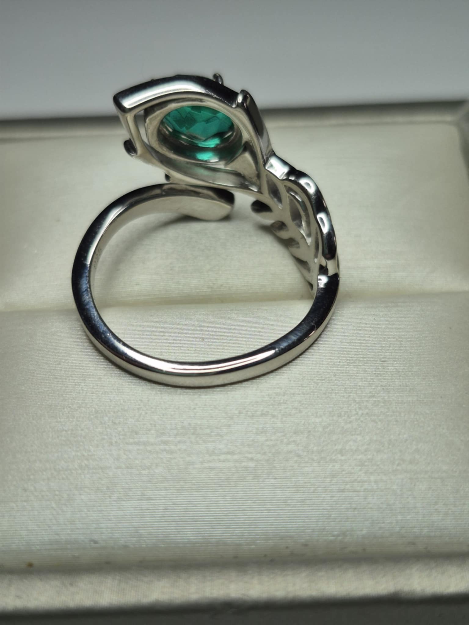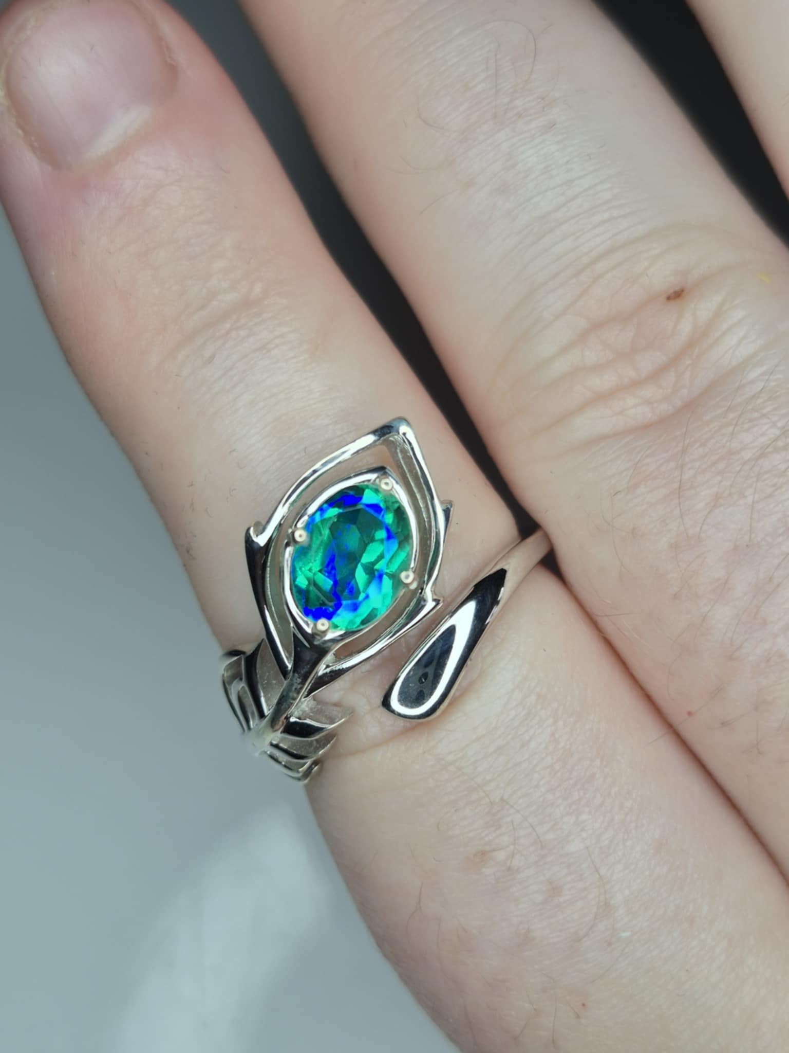 1.44ct Peacock Feather Triplet Quartz Ring in Rhodium Sterling Silver