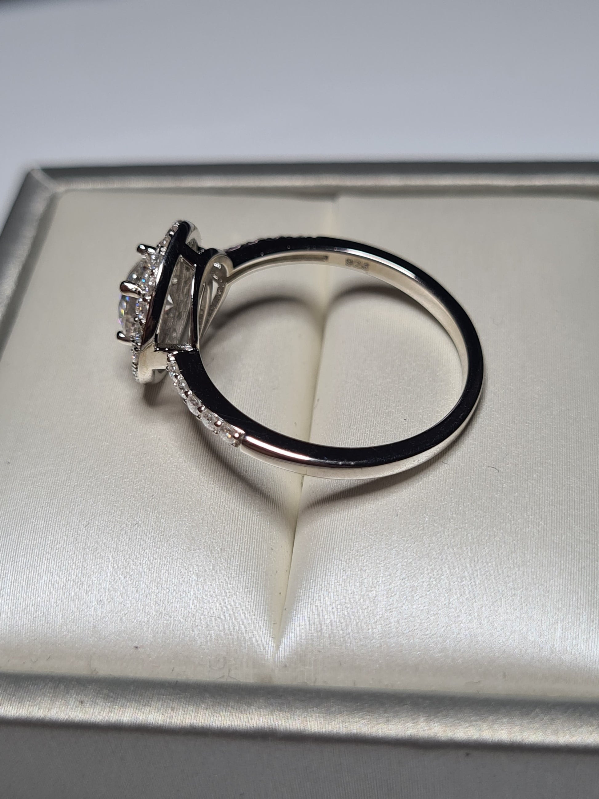 1.46ct Moissanite Halo Ring 925 sterling silver SIZE S