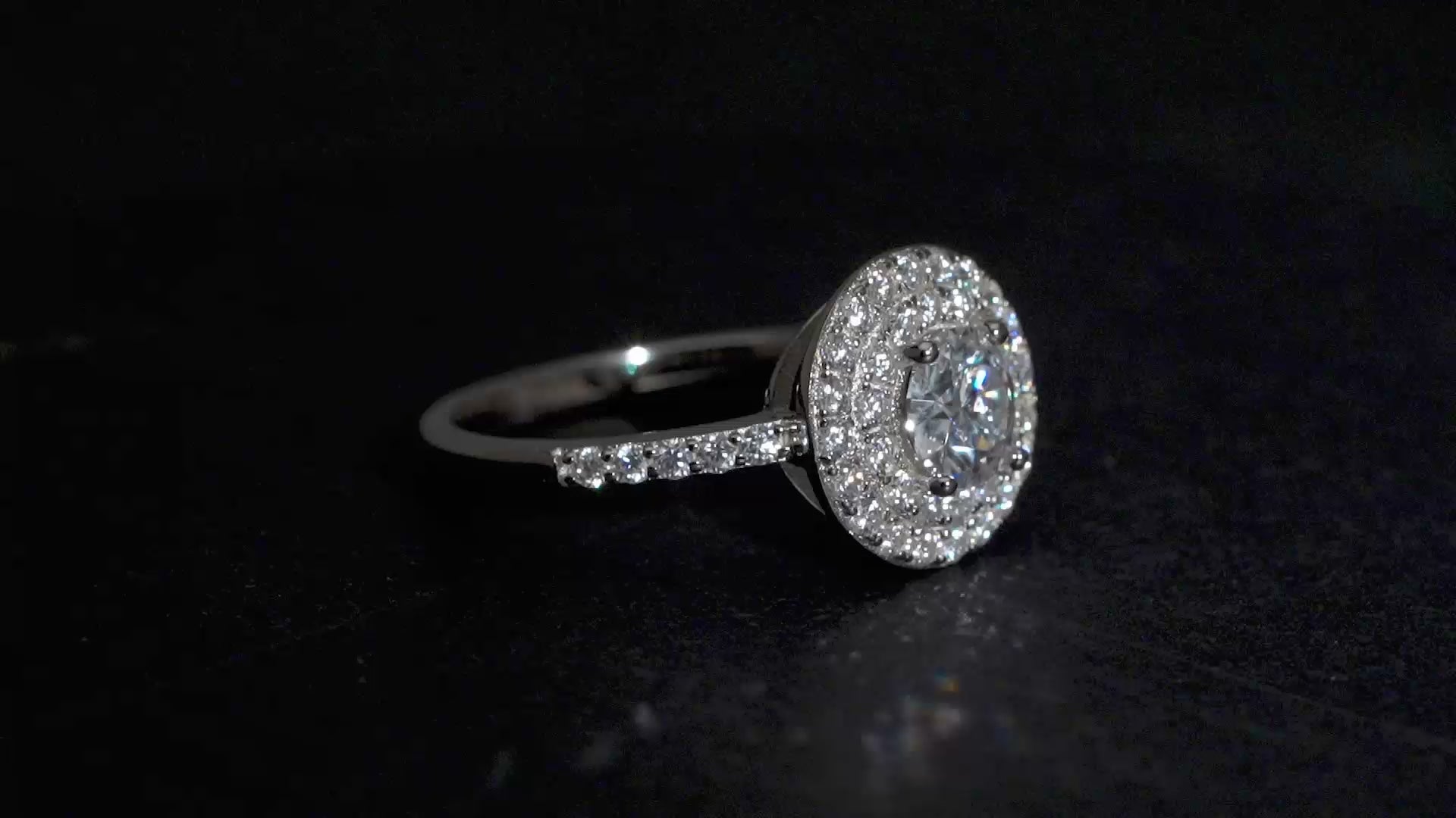 Captivating Halo Design: The intricate halo design, featuring 50 smaller Moissanite stones, creates a mesmerizing frame around the central stone, enhancing its brilliance.