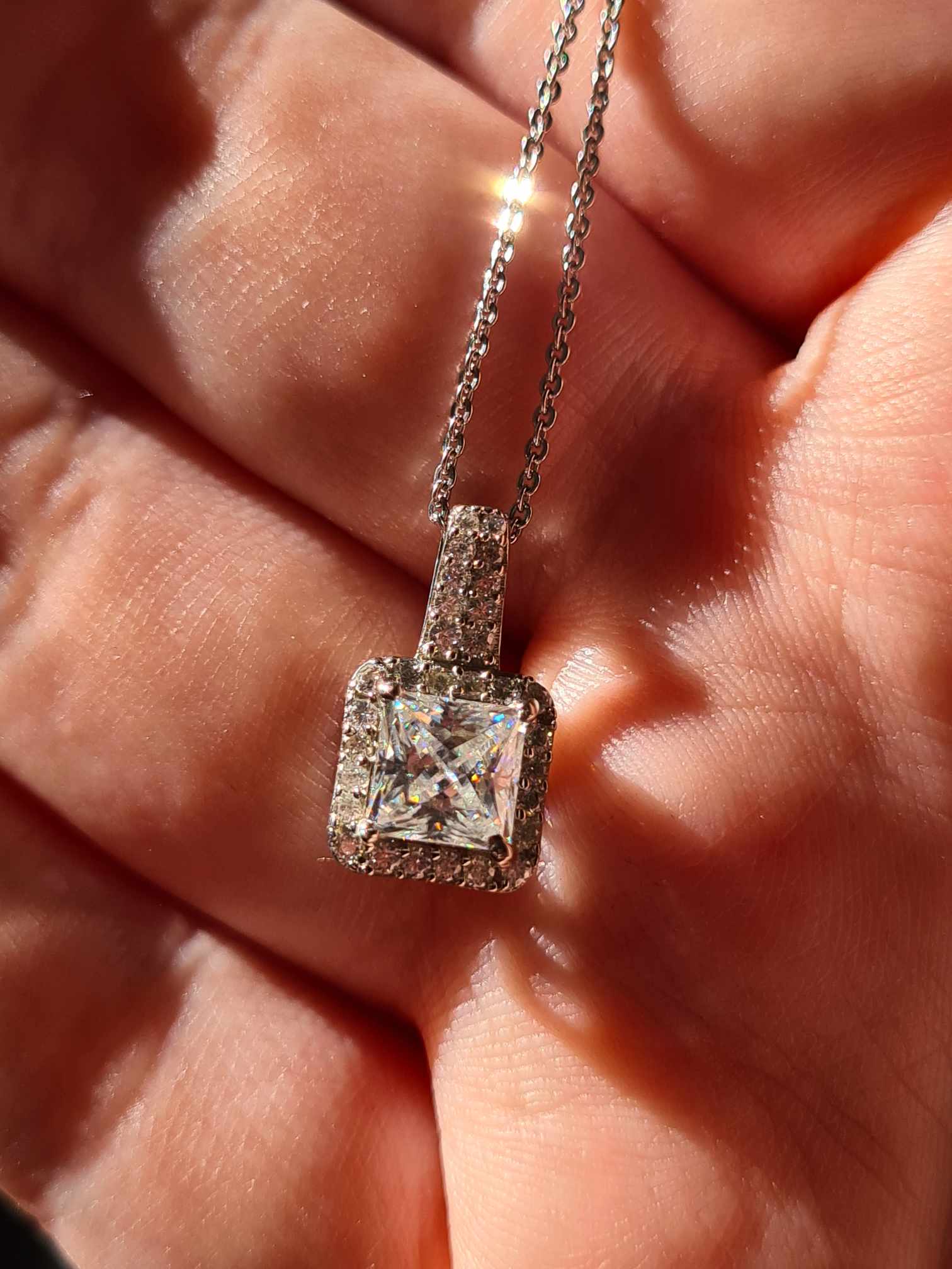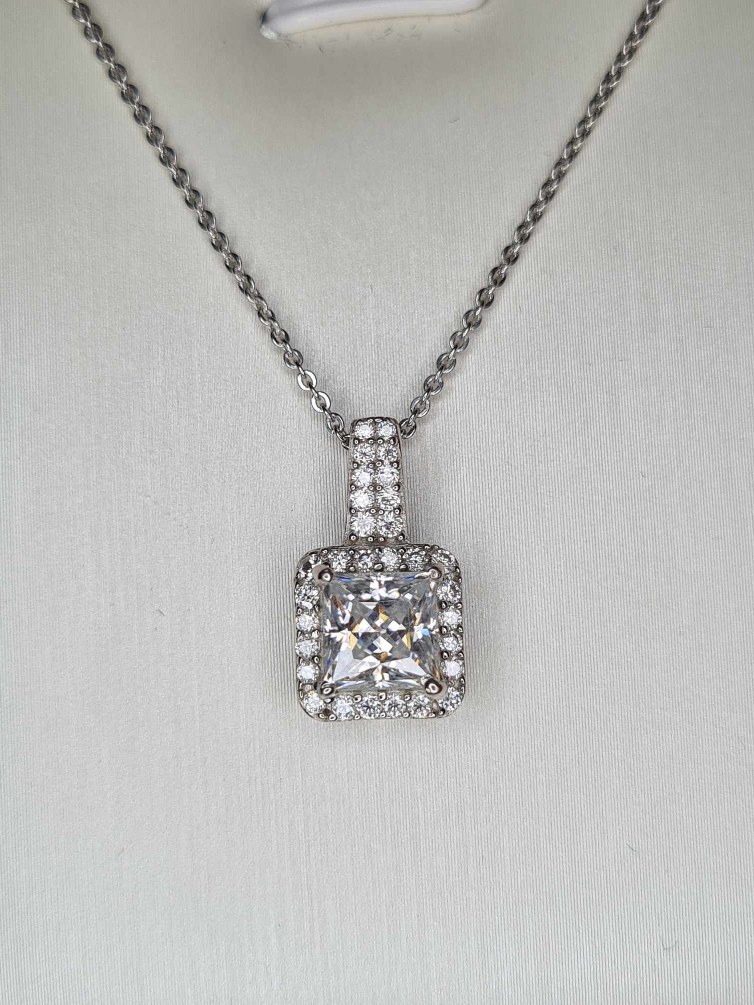 Indulge in the eternal elegance of our Moissanite Square Cut Necklace—a captivating piece that combines the brilliance of moissanite with the timeless allure of a platinum overlay.