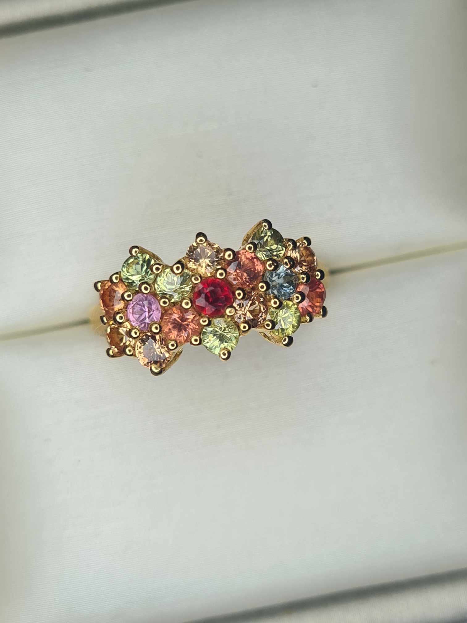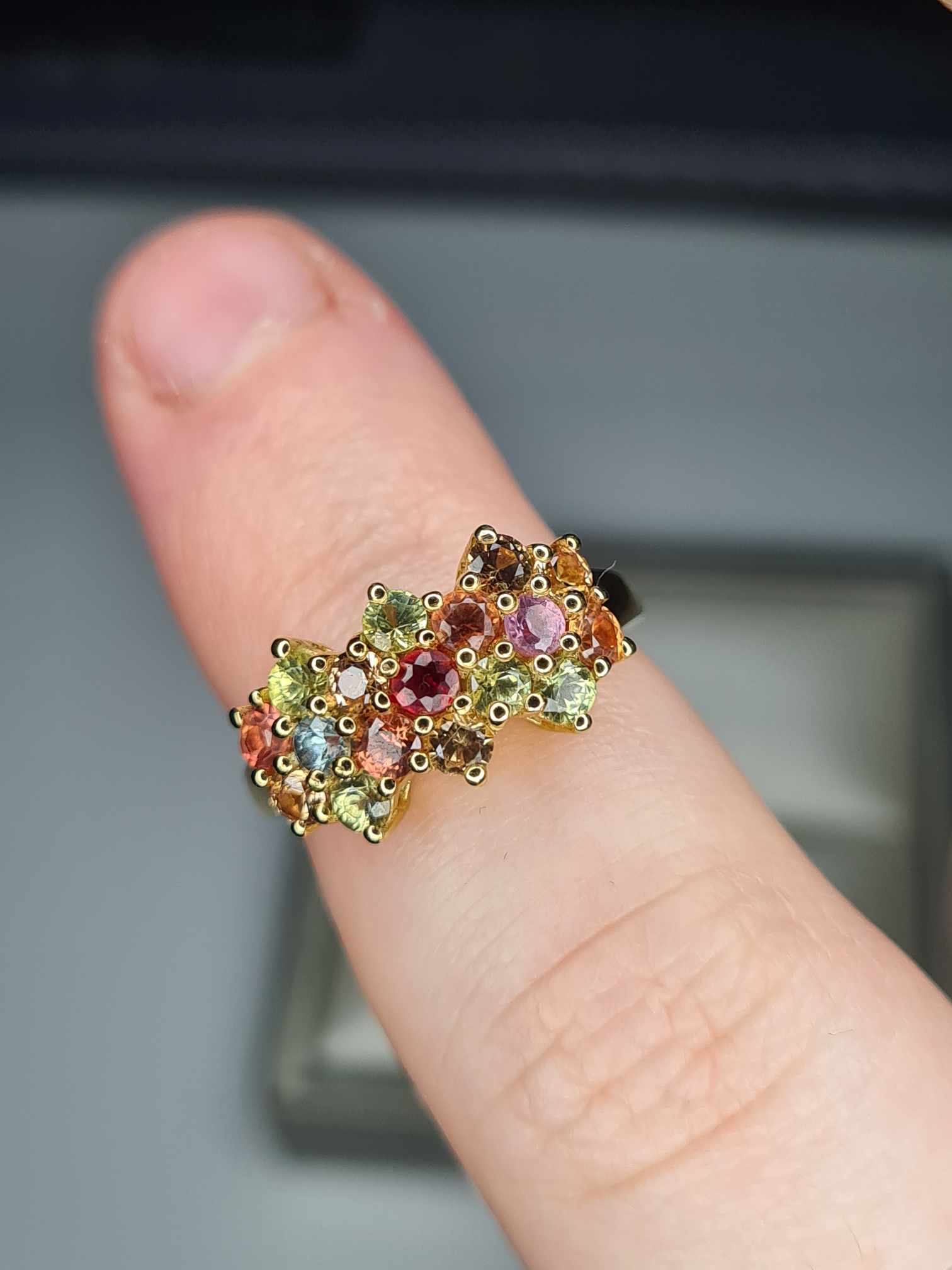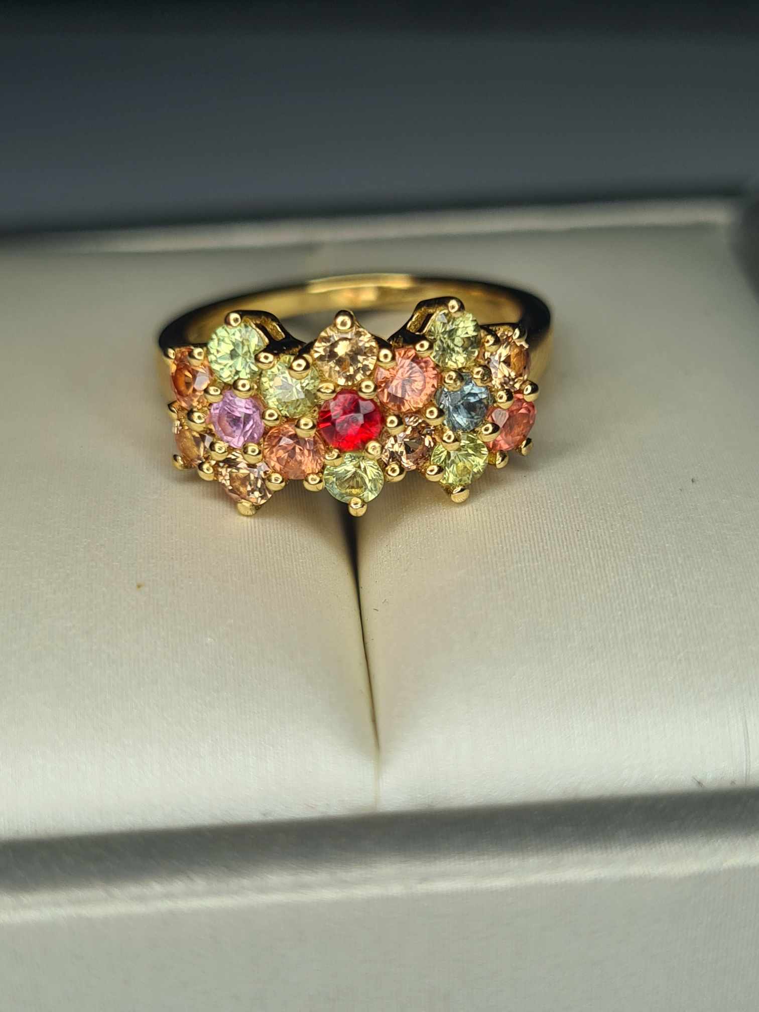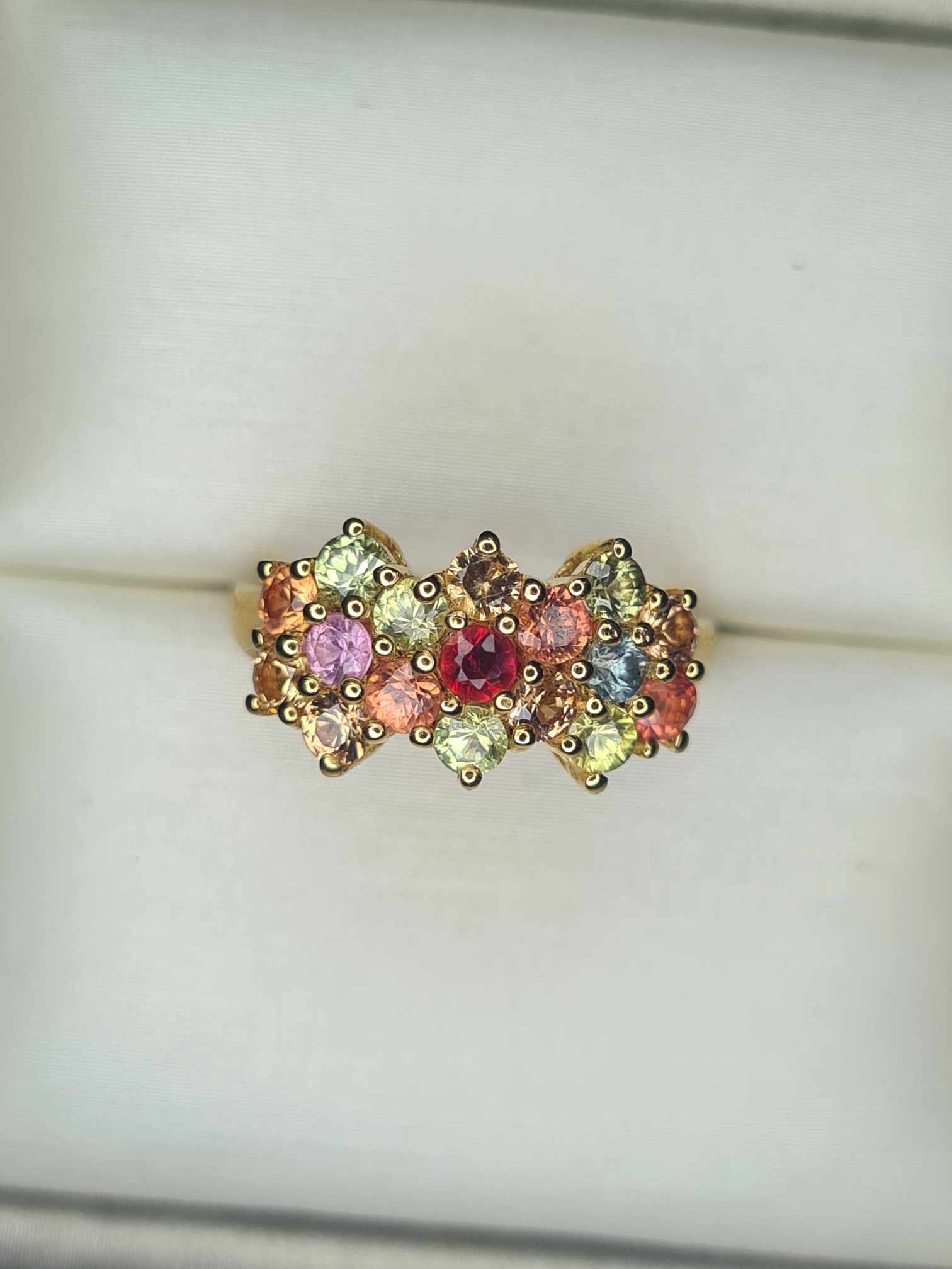 1.513ct Rainbow Sapphire Boat Ring in 18K Gold Overlay 925 Sterling Silver SIZE J