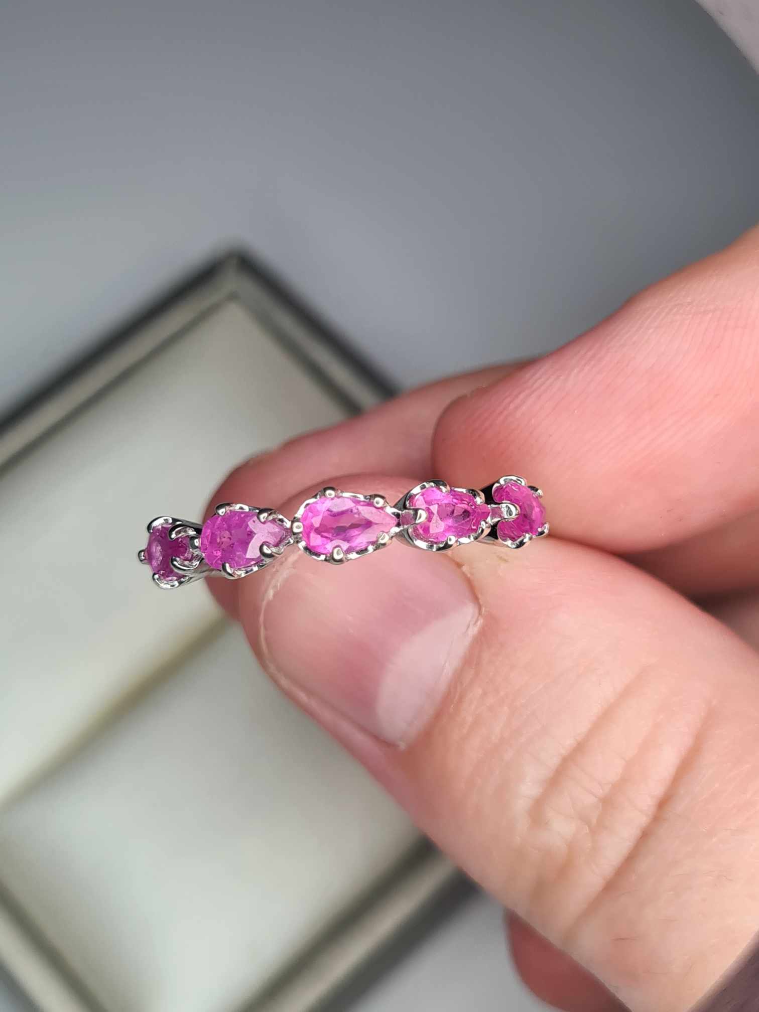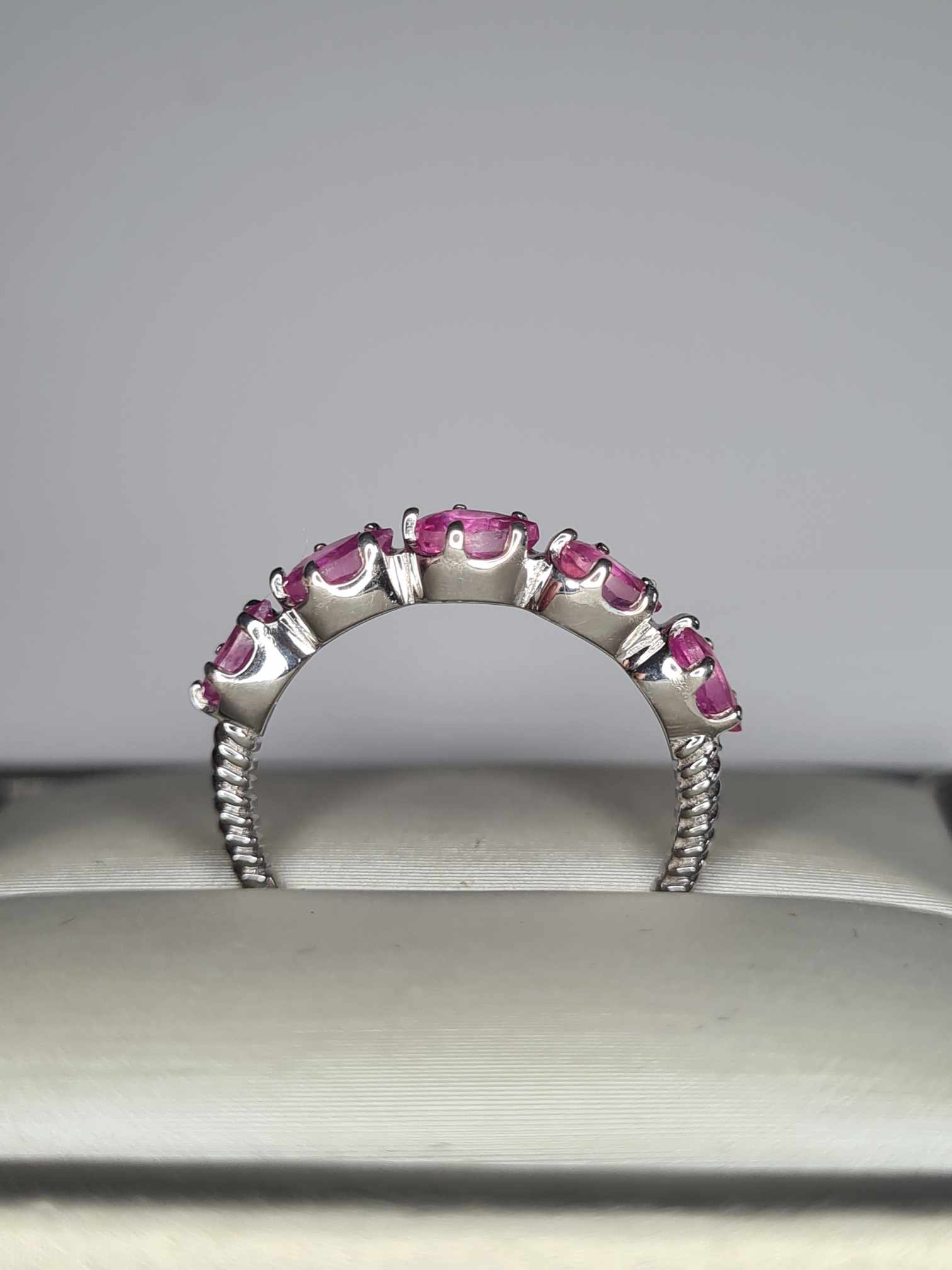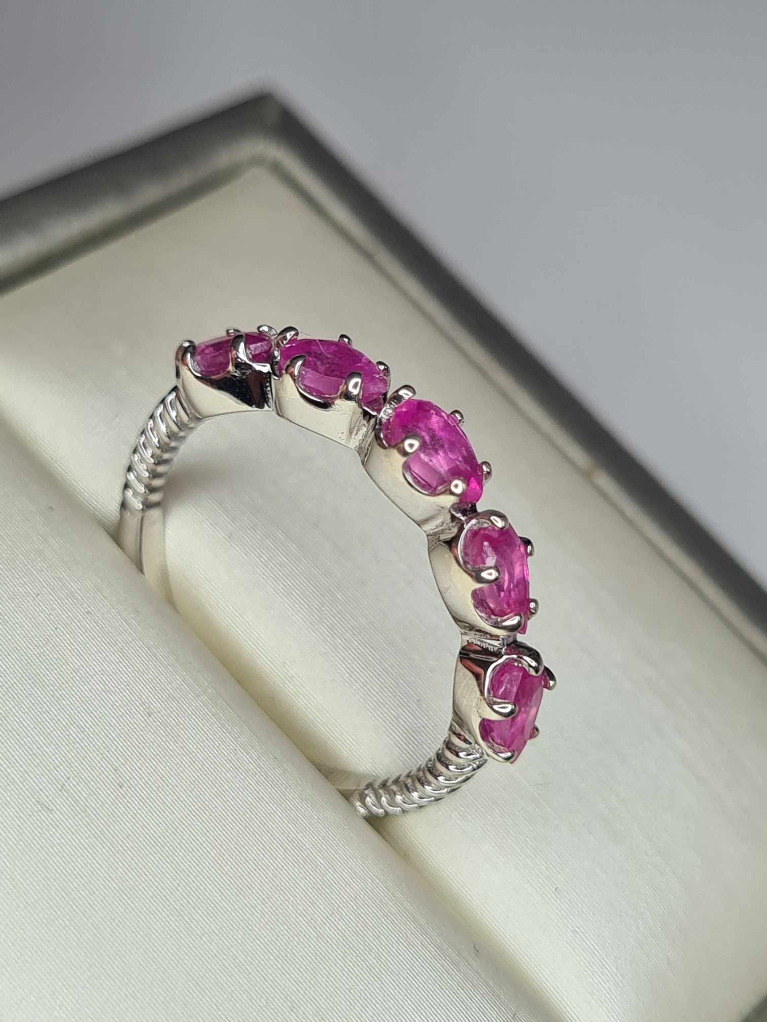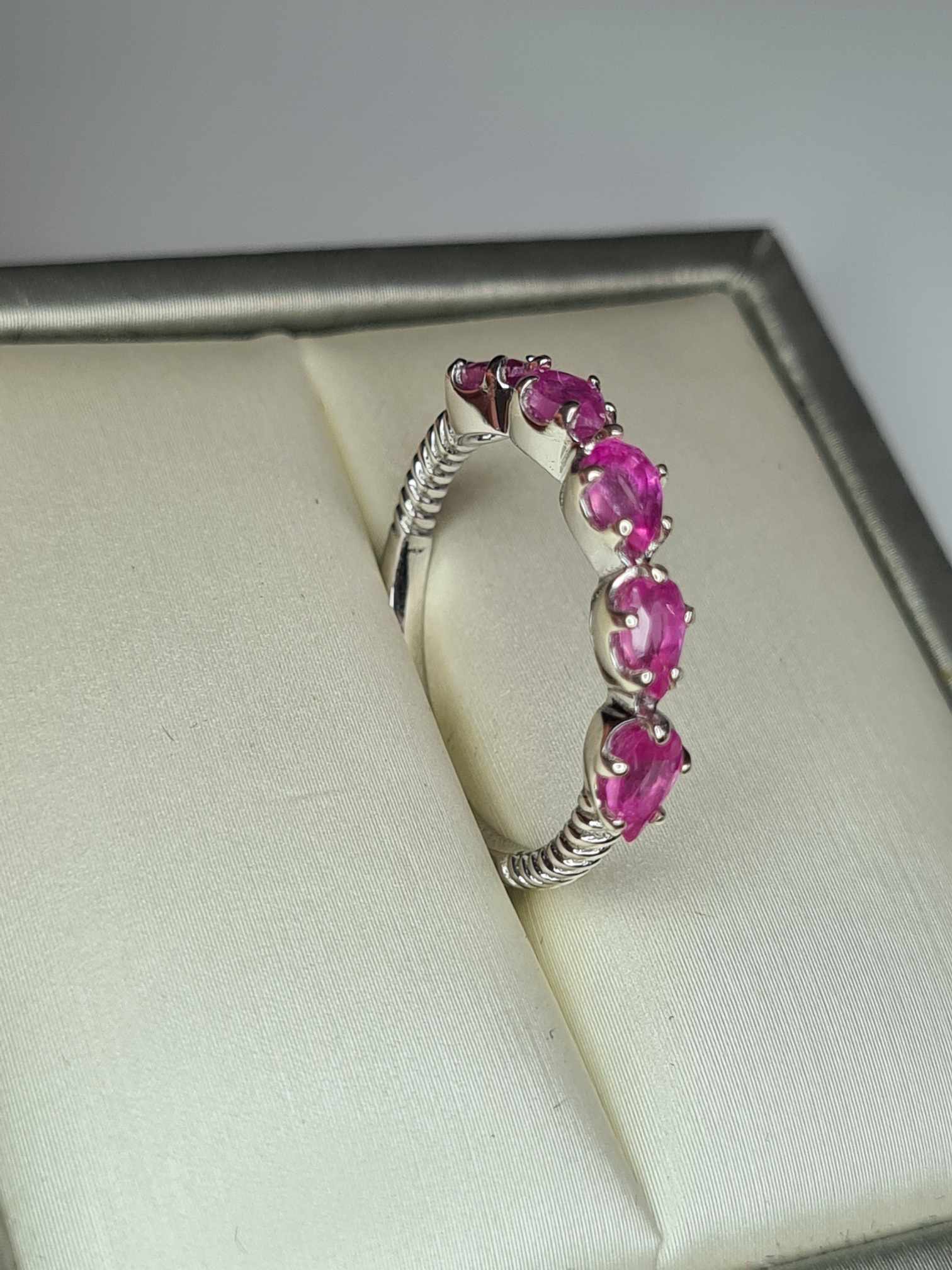 1.54ct Pink Sapphire 5 Stone Ring in Platinum Overlay 925 Sterling Silver