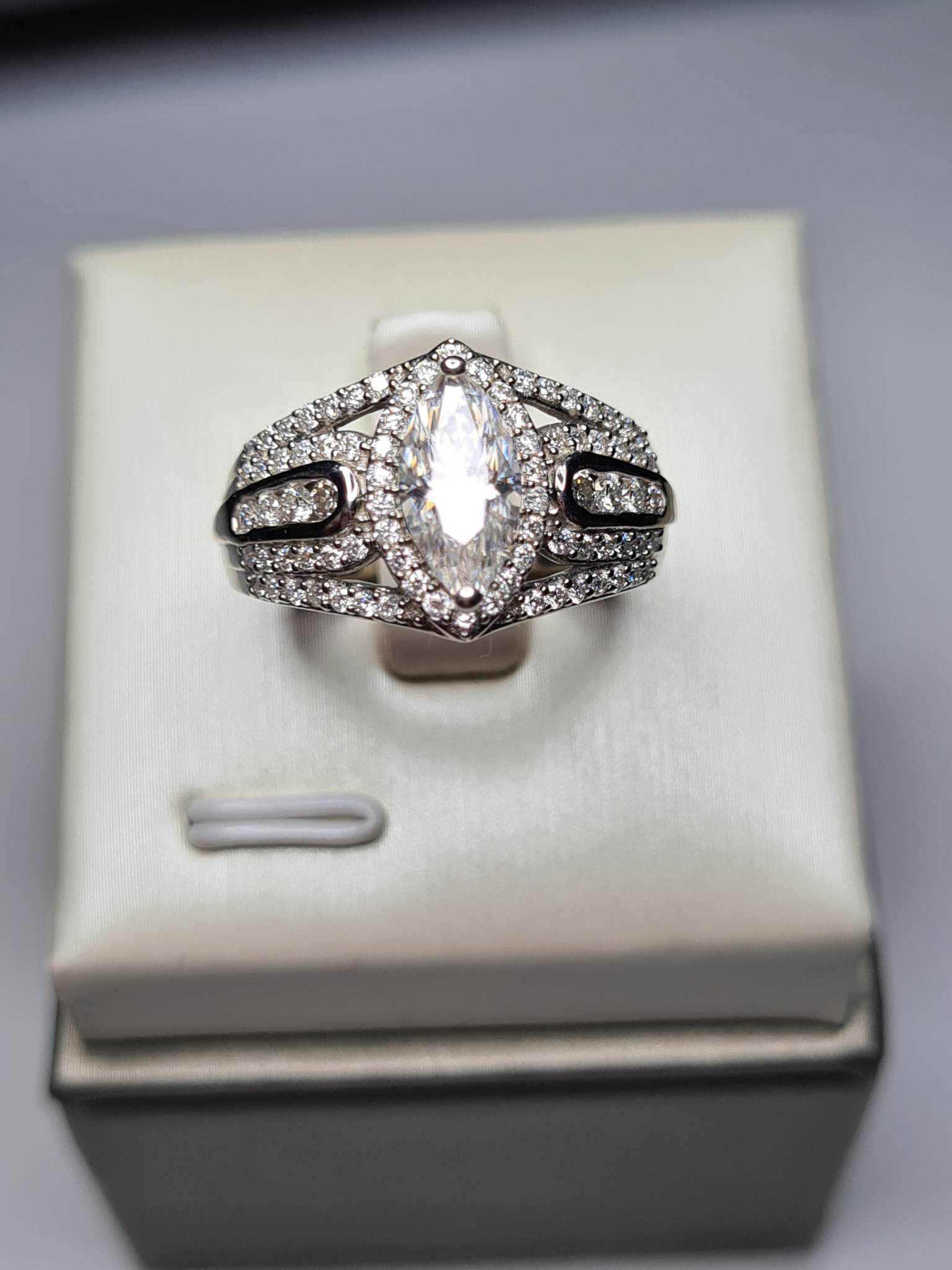 1.56Ct Marquise Moissanite Cluster Ring 925 Sterling Silver SIZE M