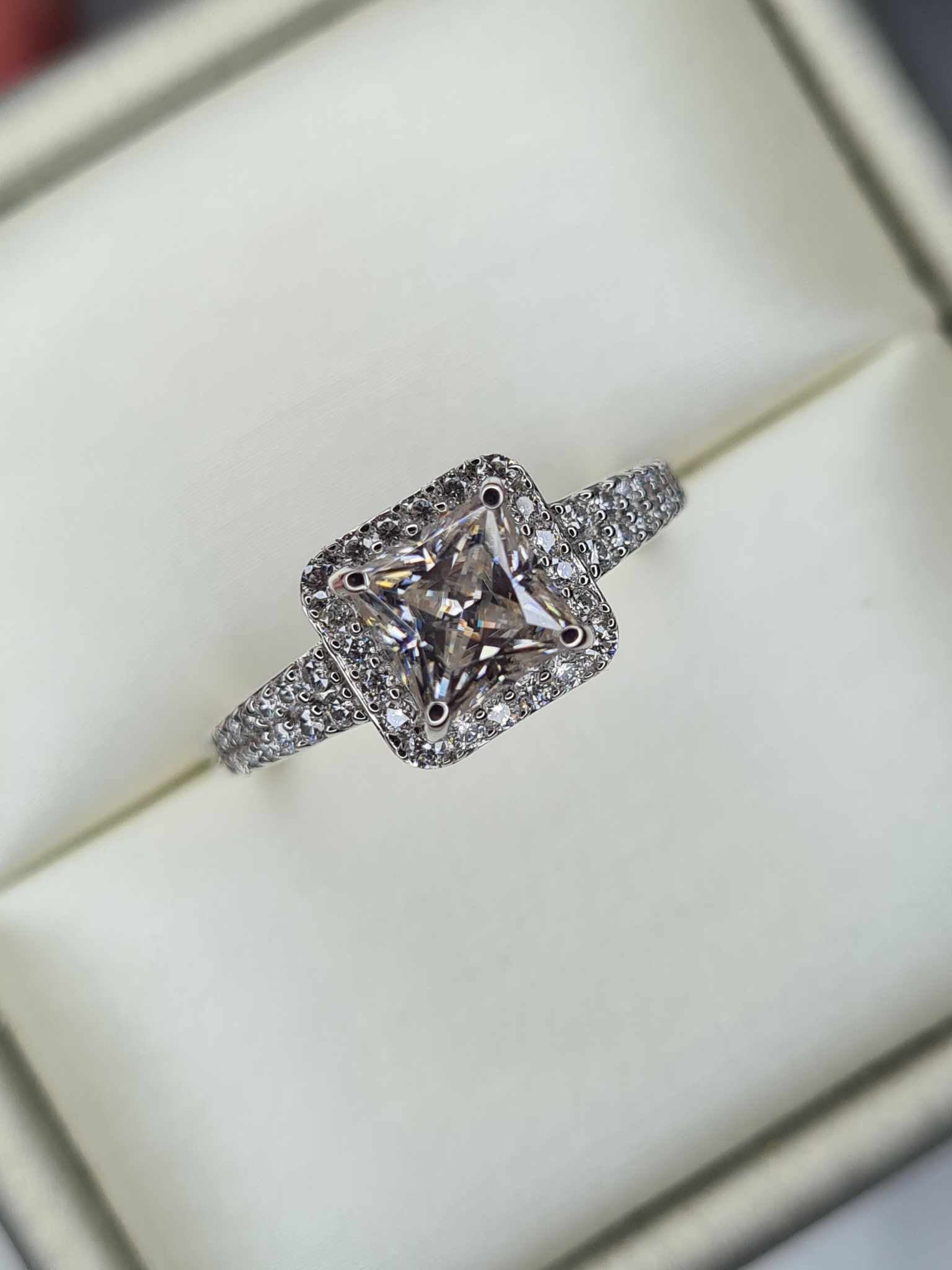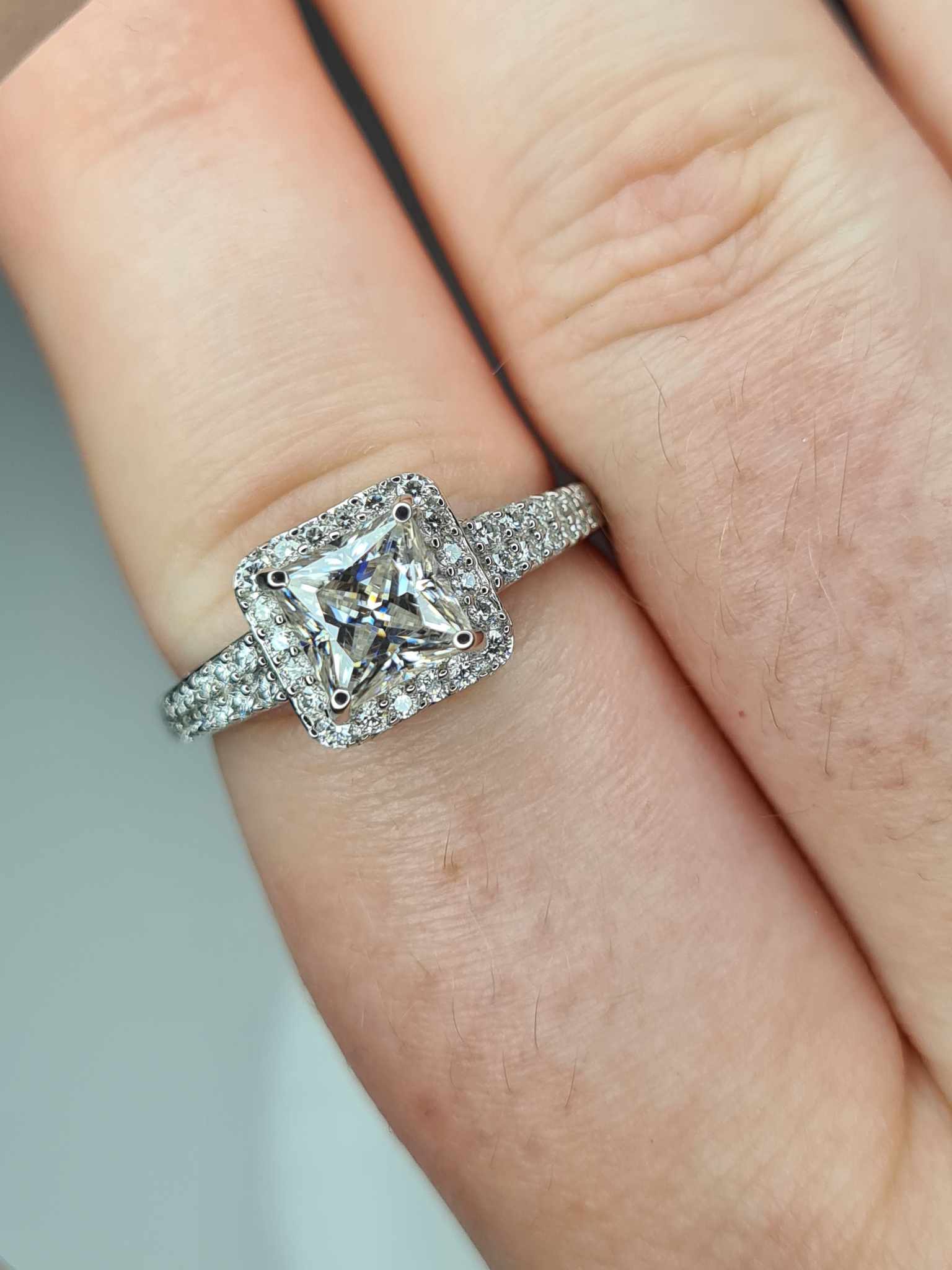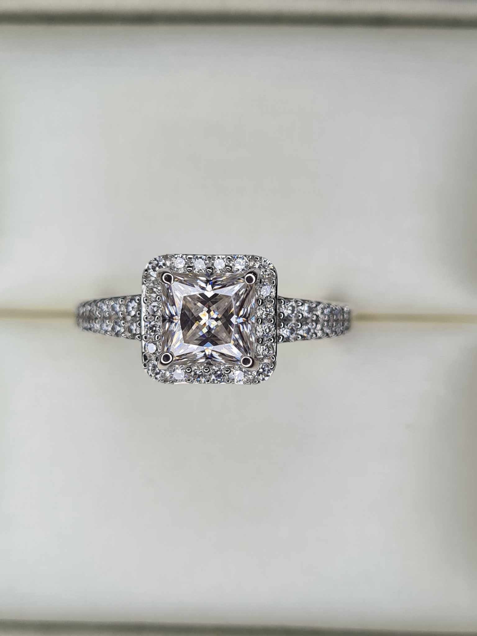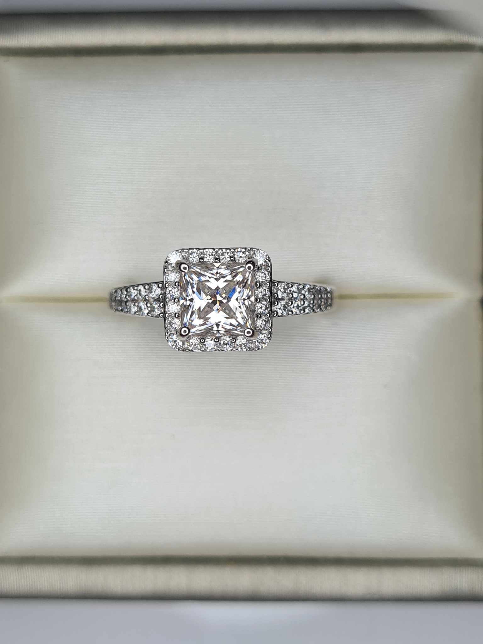 1.58ct Moissanite Square Cut Halo Ring 925 Sterling Silver SIZES N, P, R