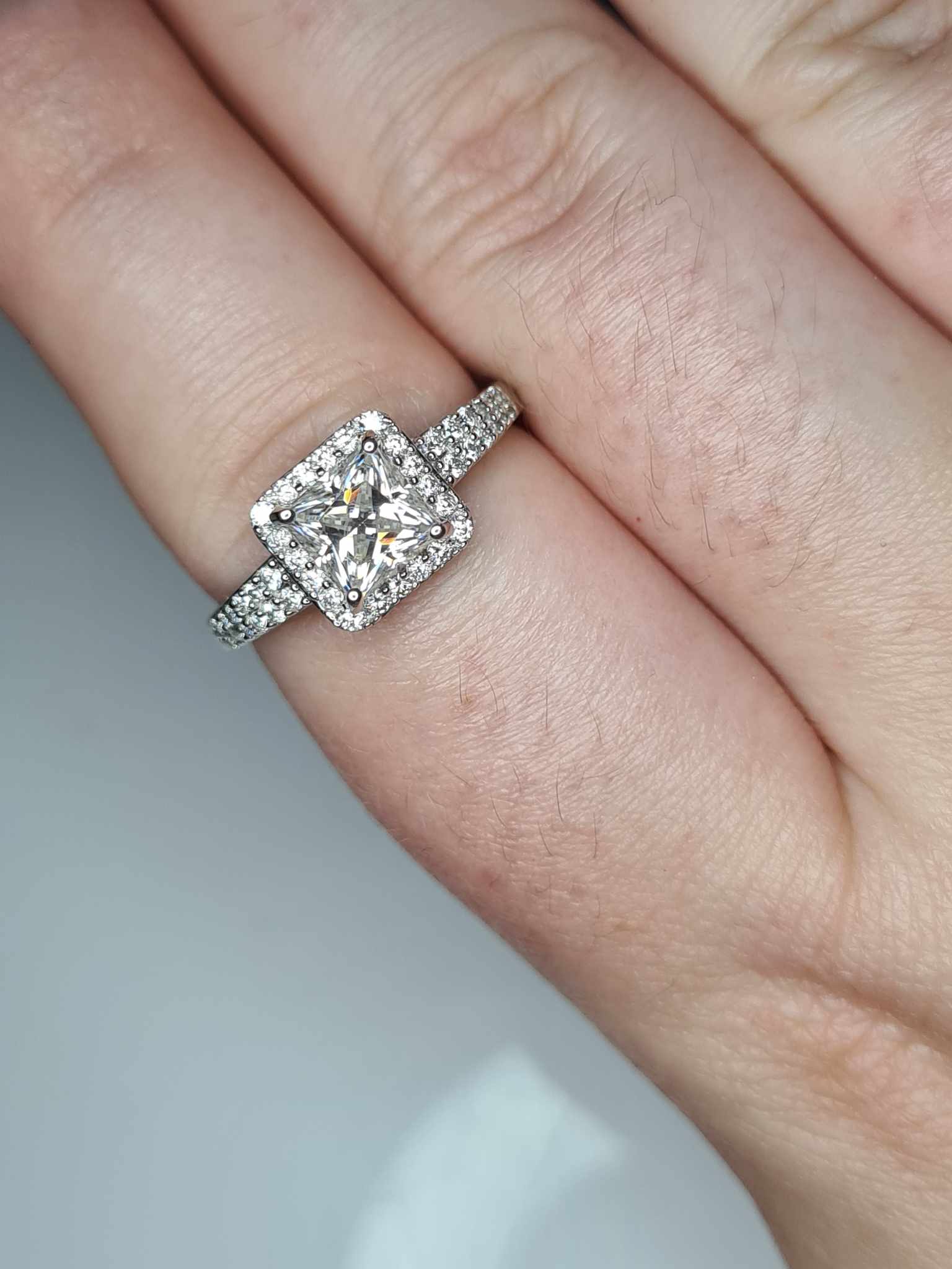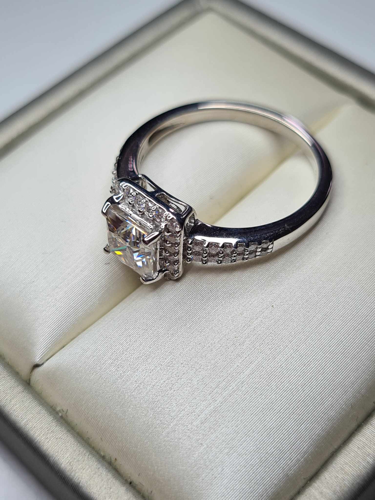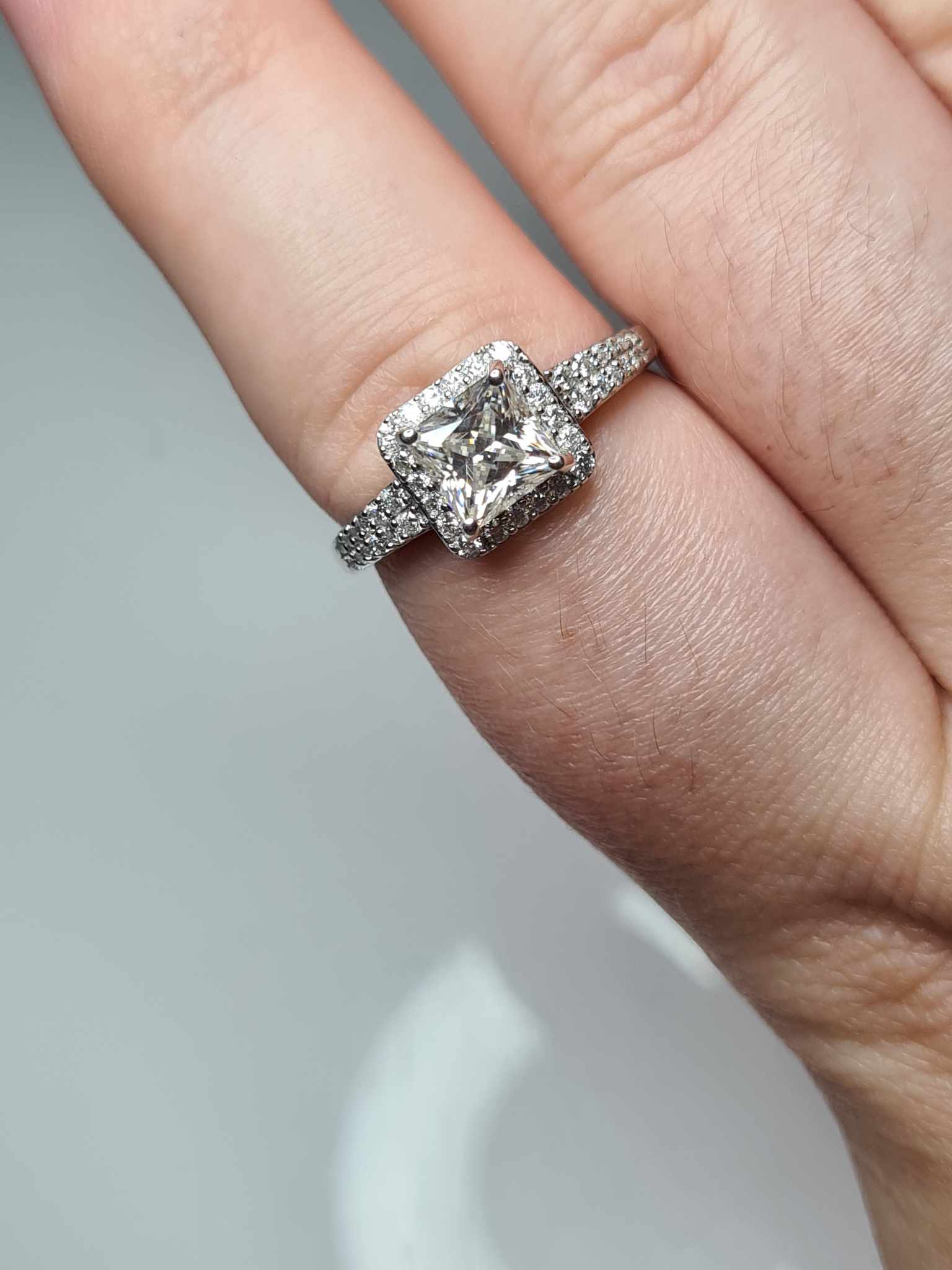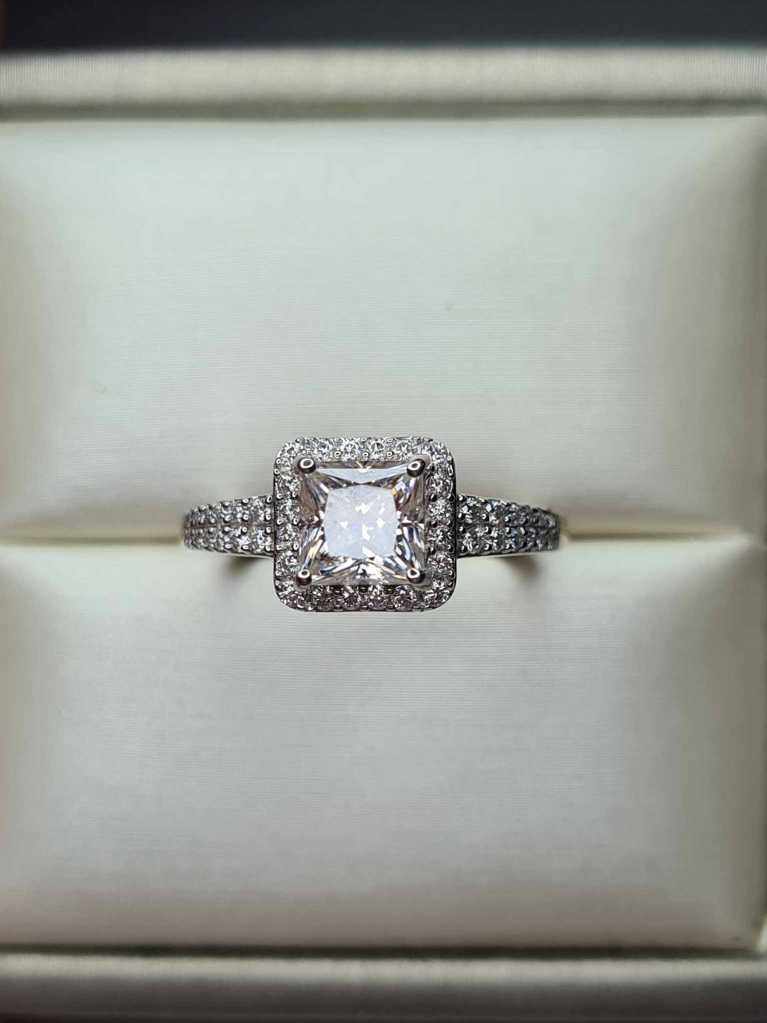 1.58ct Moissanite Square Cut Halo Ring 925 Sterling Silver SIZES N, P, R