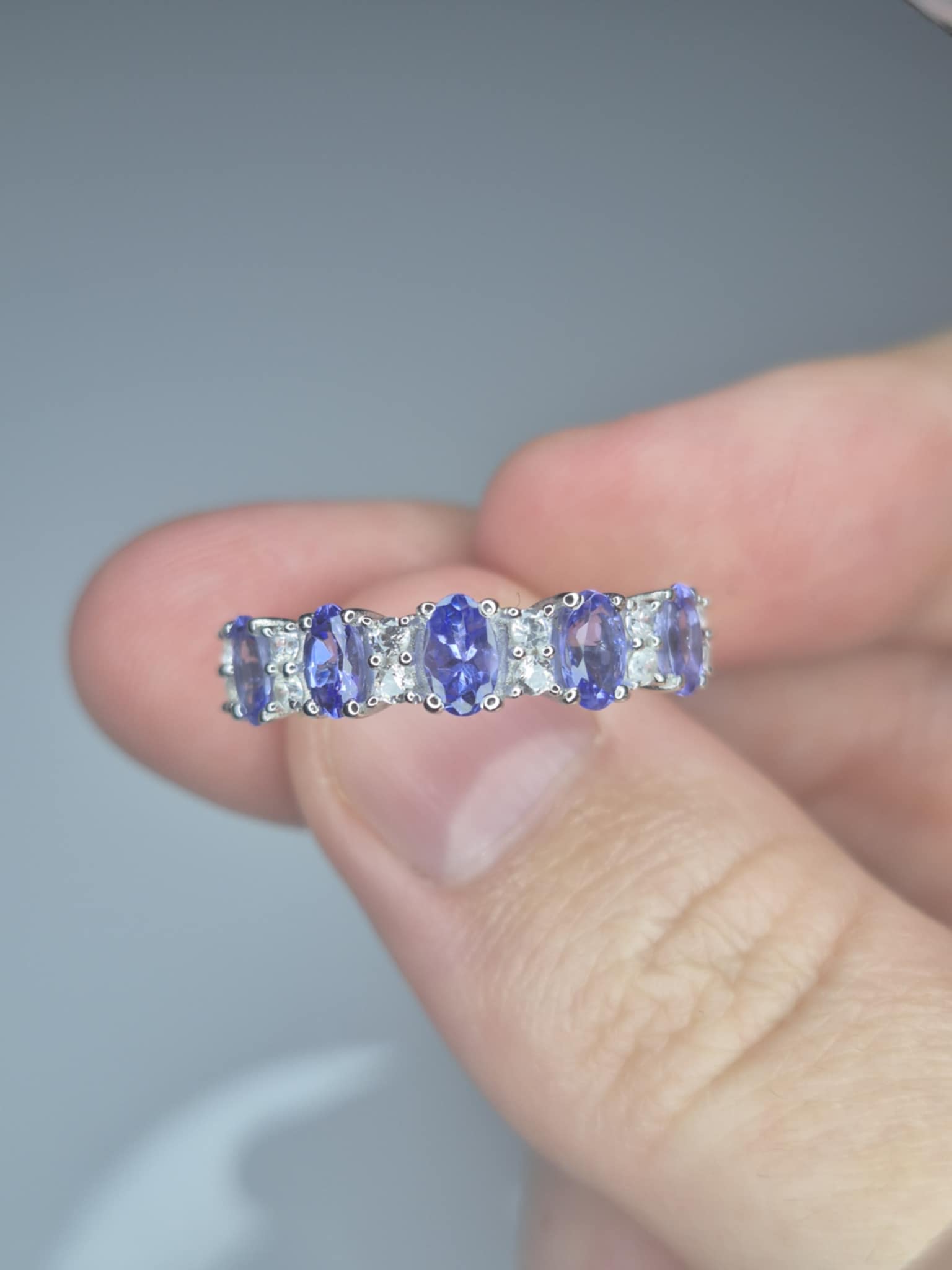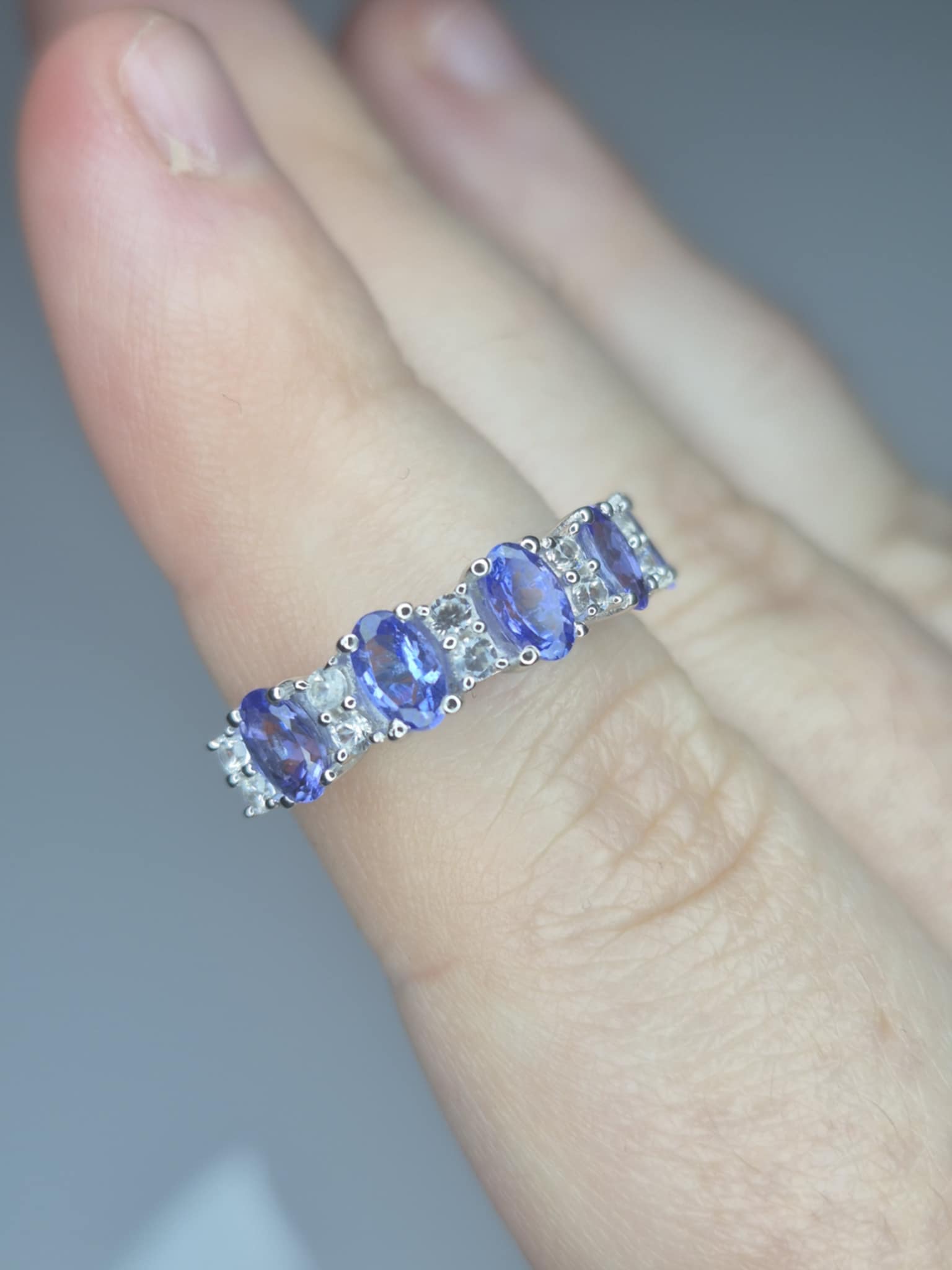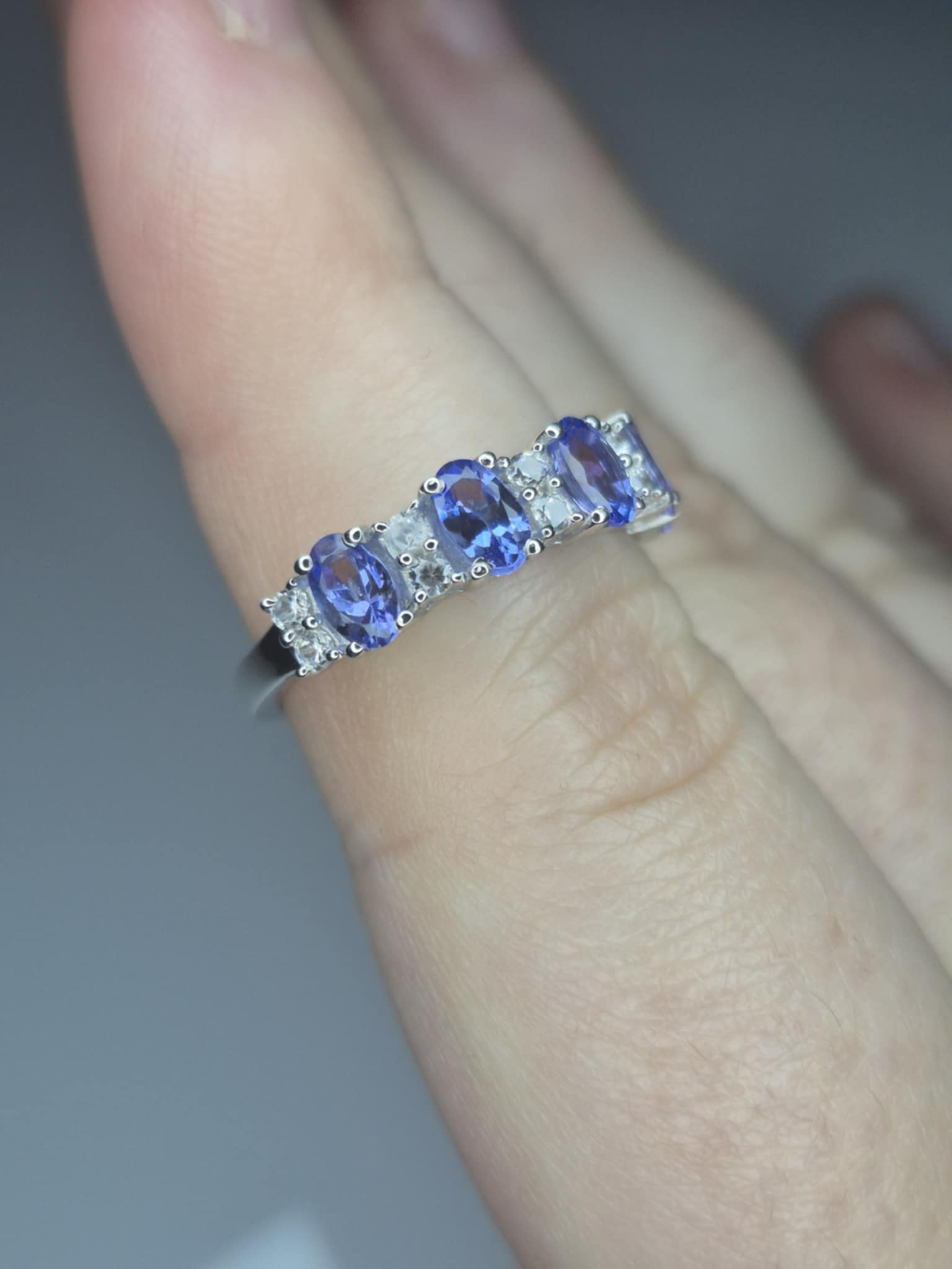1.59ct Tanzanite and White Zircon Ring 925 Sterling Silver SIZE M