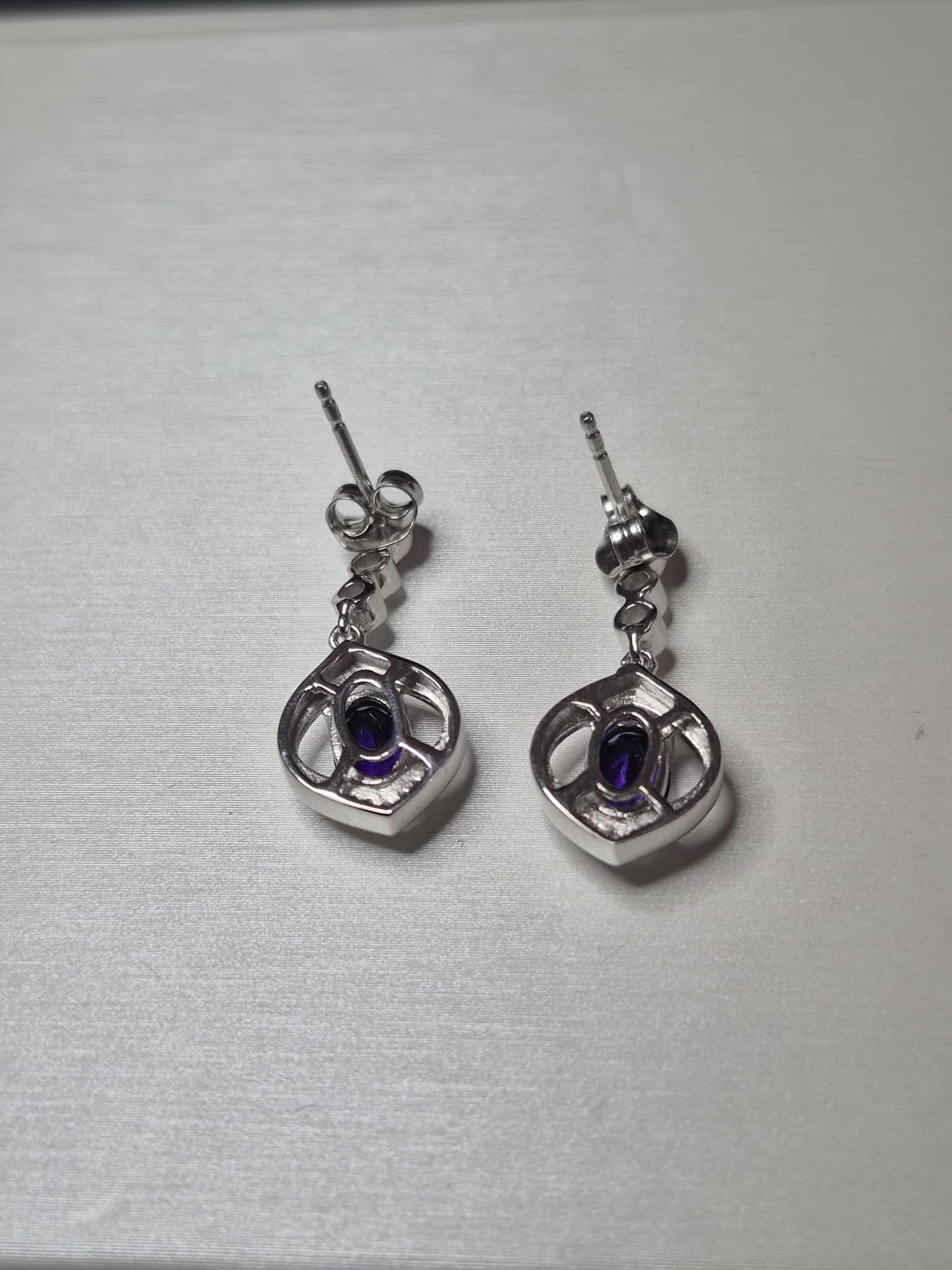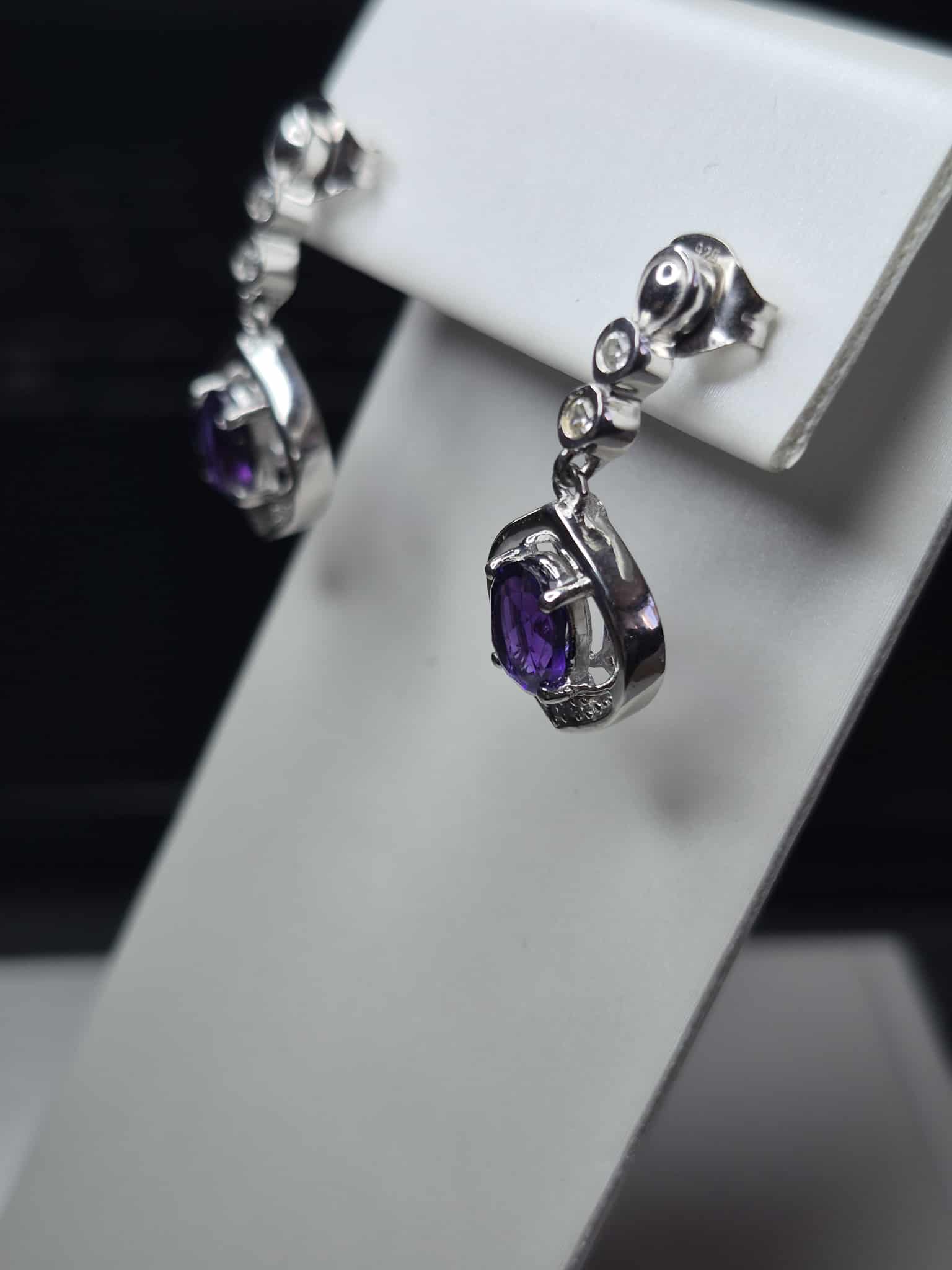 1.68ct Natural Moroccan Amethyst & White Zircon Earrings in Rhodium Overlay 925 Sterling Silver