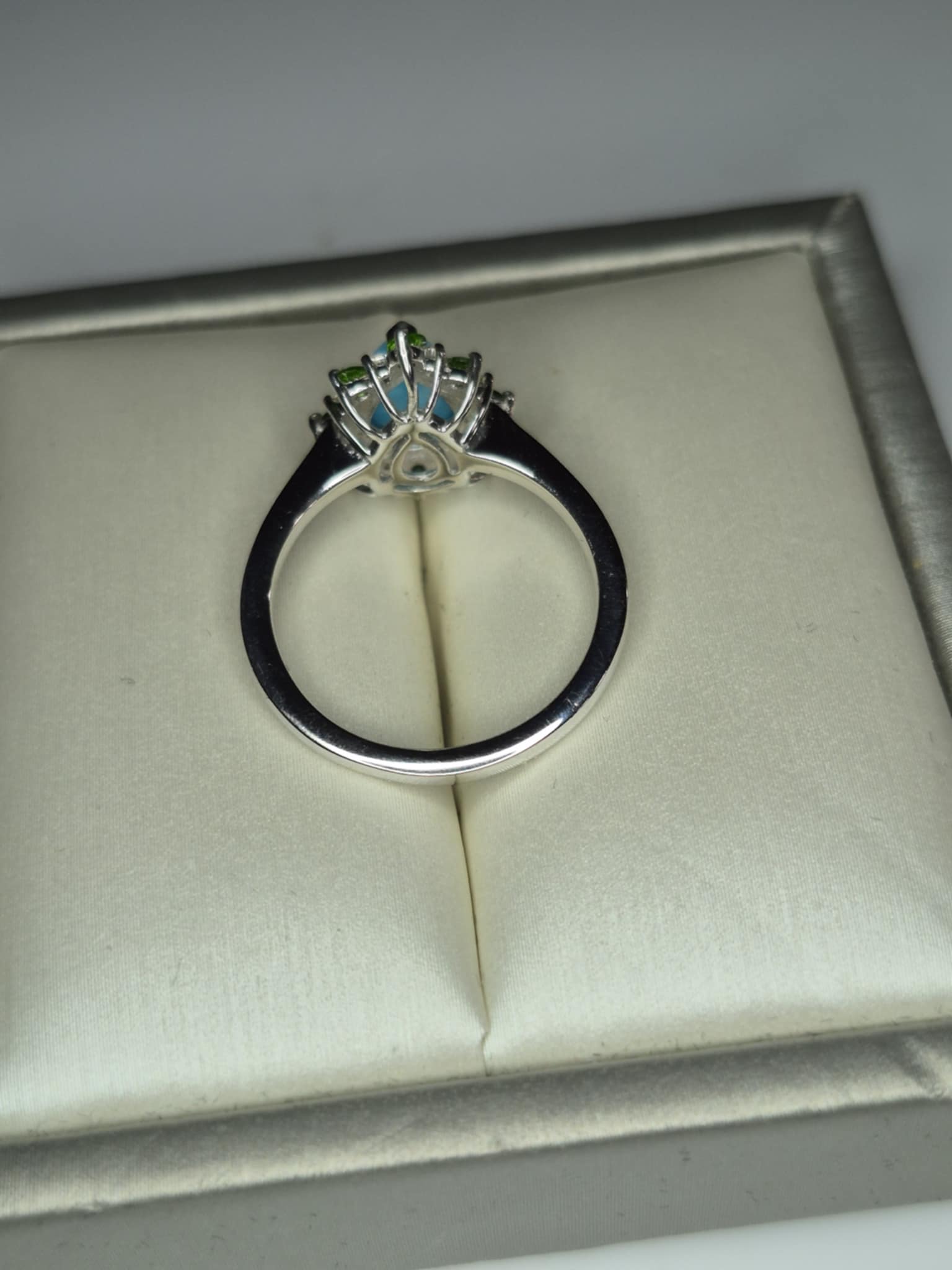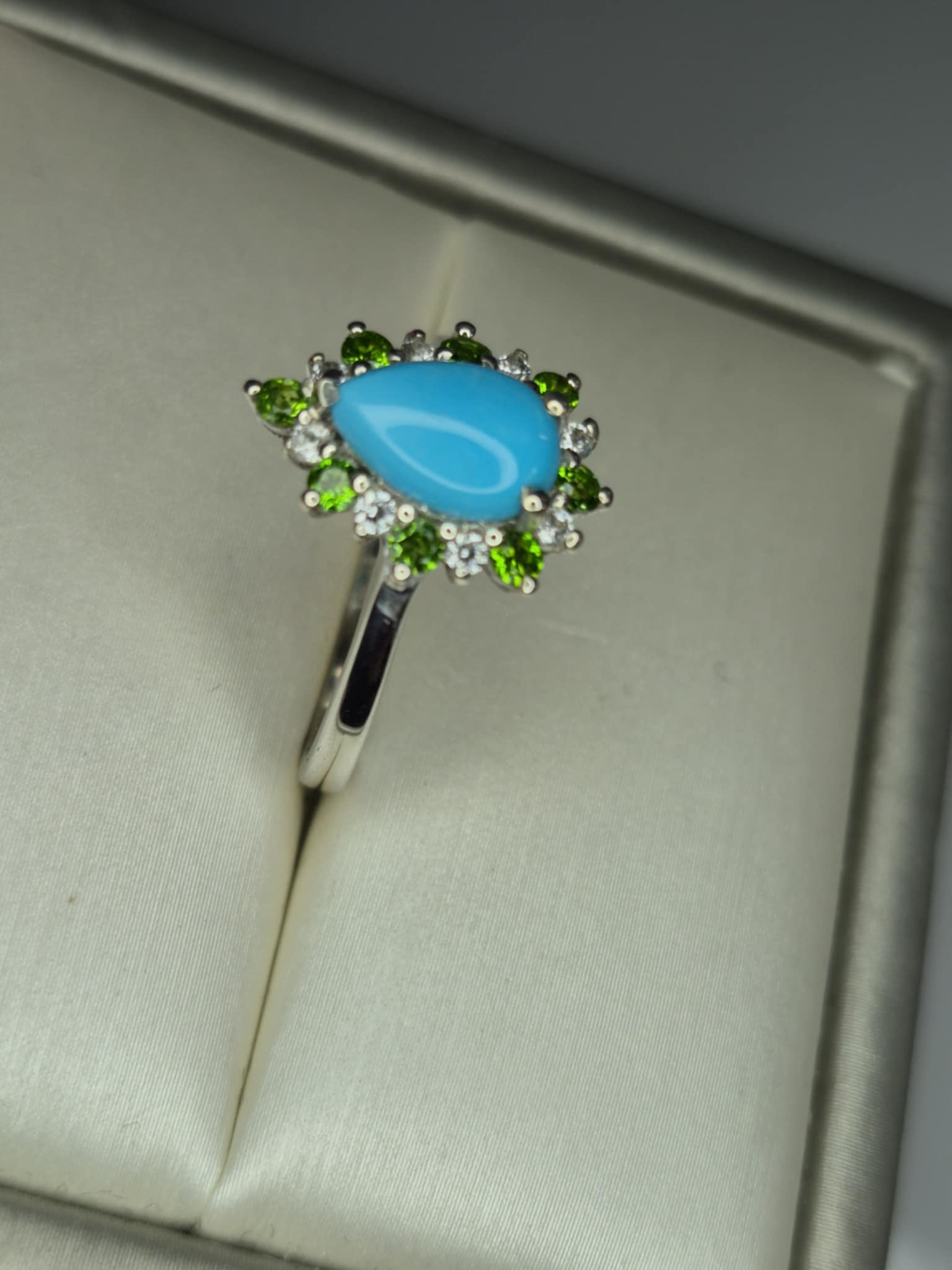 1.75ct Sleeping Beauty Turquoise, Russian Diopside, White Zircon Halo Ring in 925 Sterling Silver SIZE L