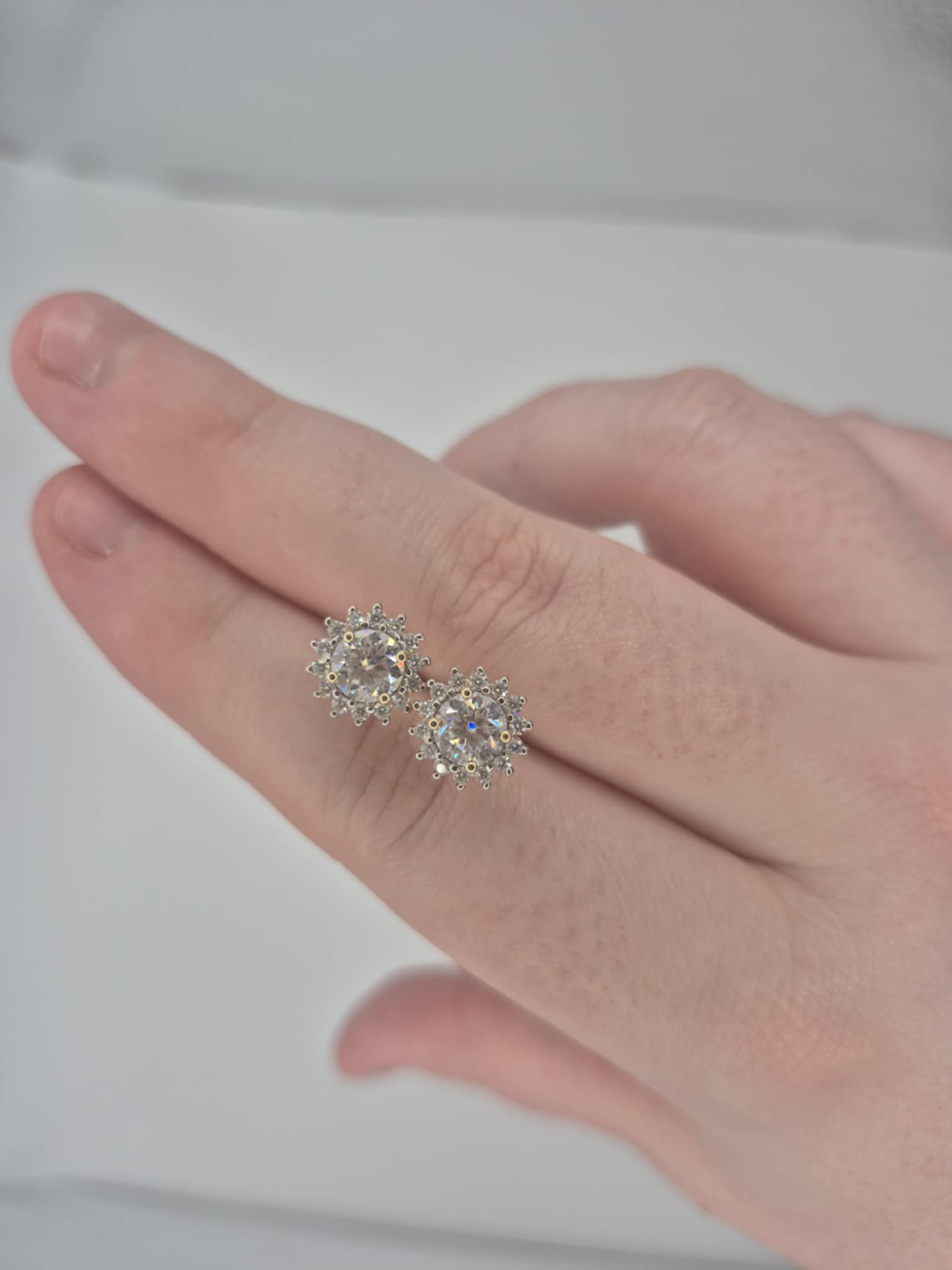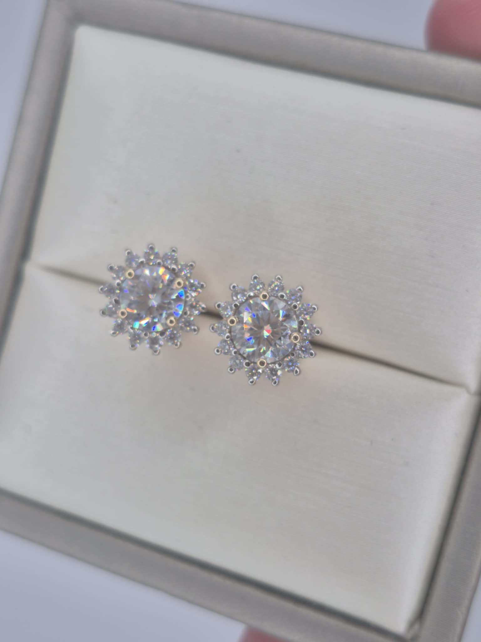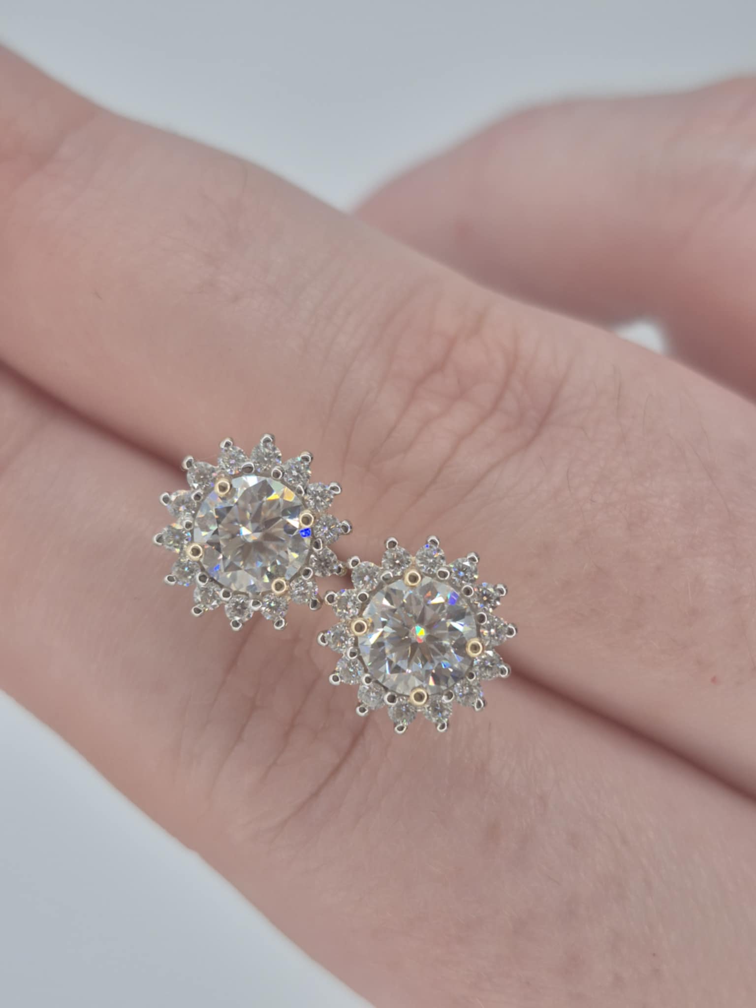These solid 9k gold moissanite halo earrings are perfect for daily or occasional wear