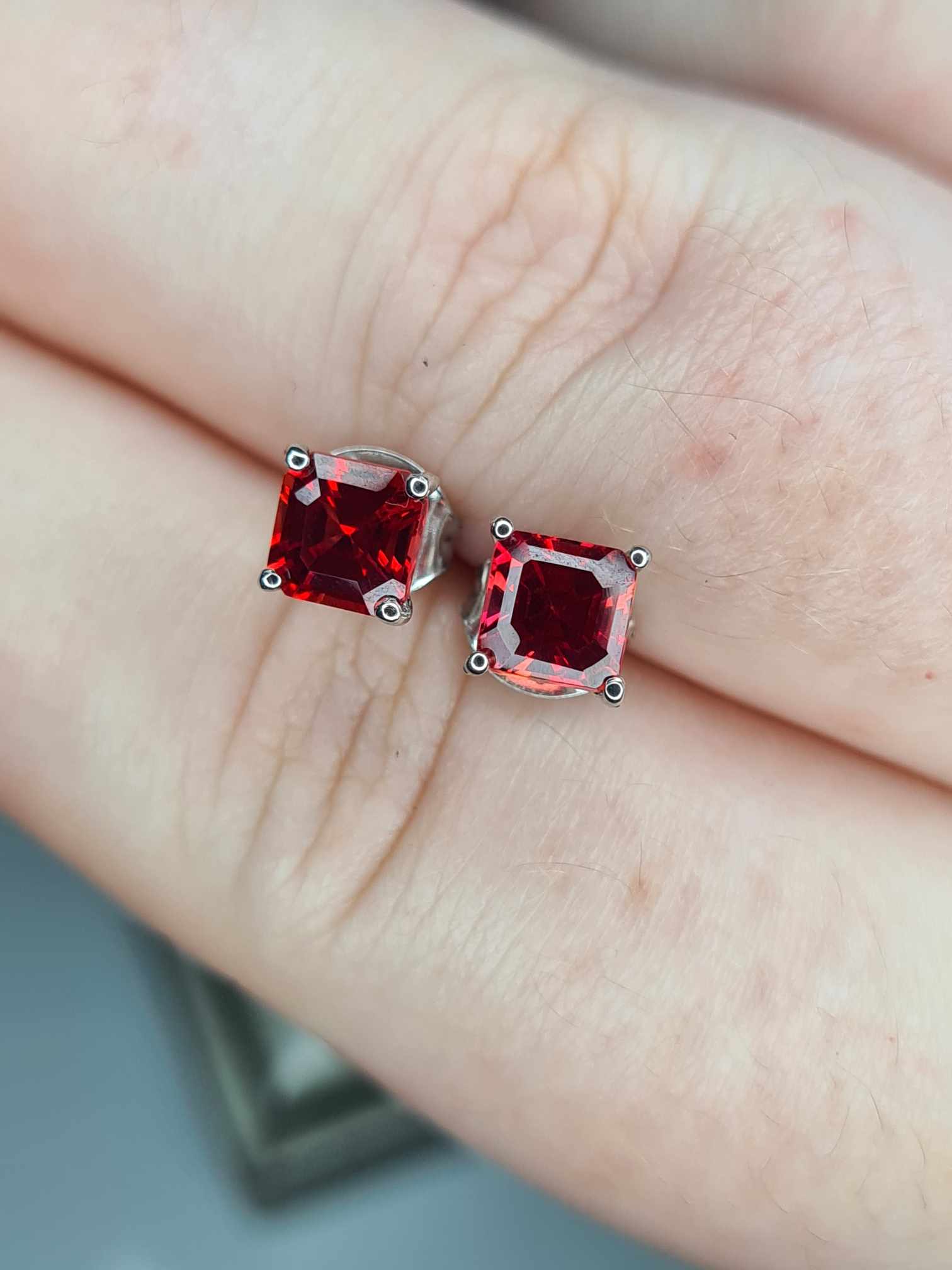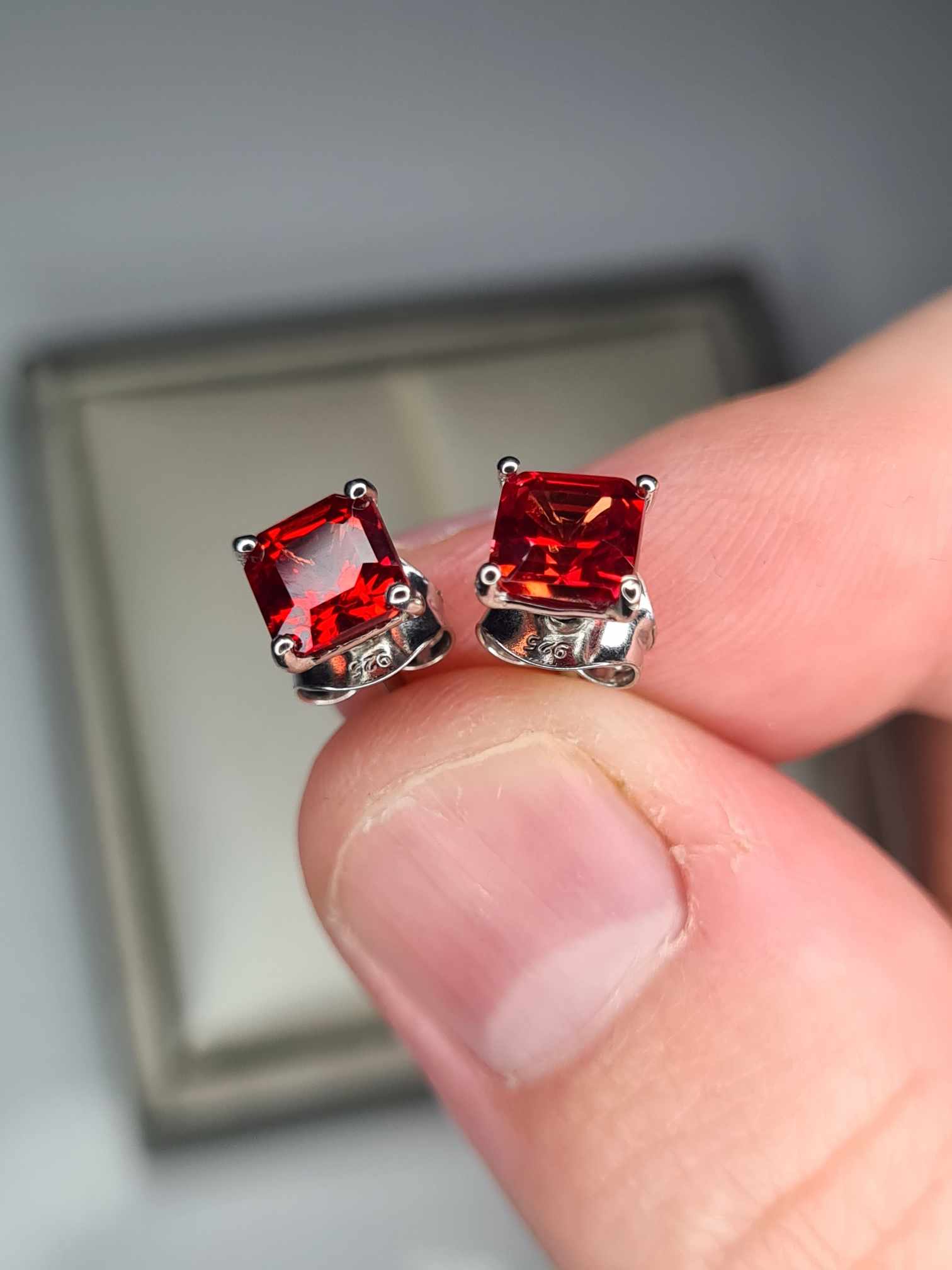 1.90ct Lab Created Padparadscha Sapphire Solitaire Stud Earrings in Platinum Overlay 925 Sterling Silver.