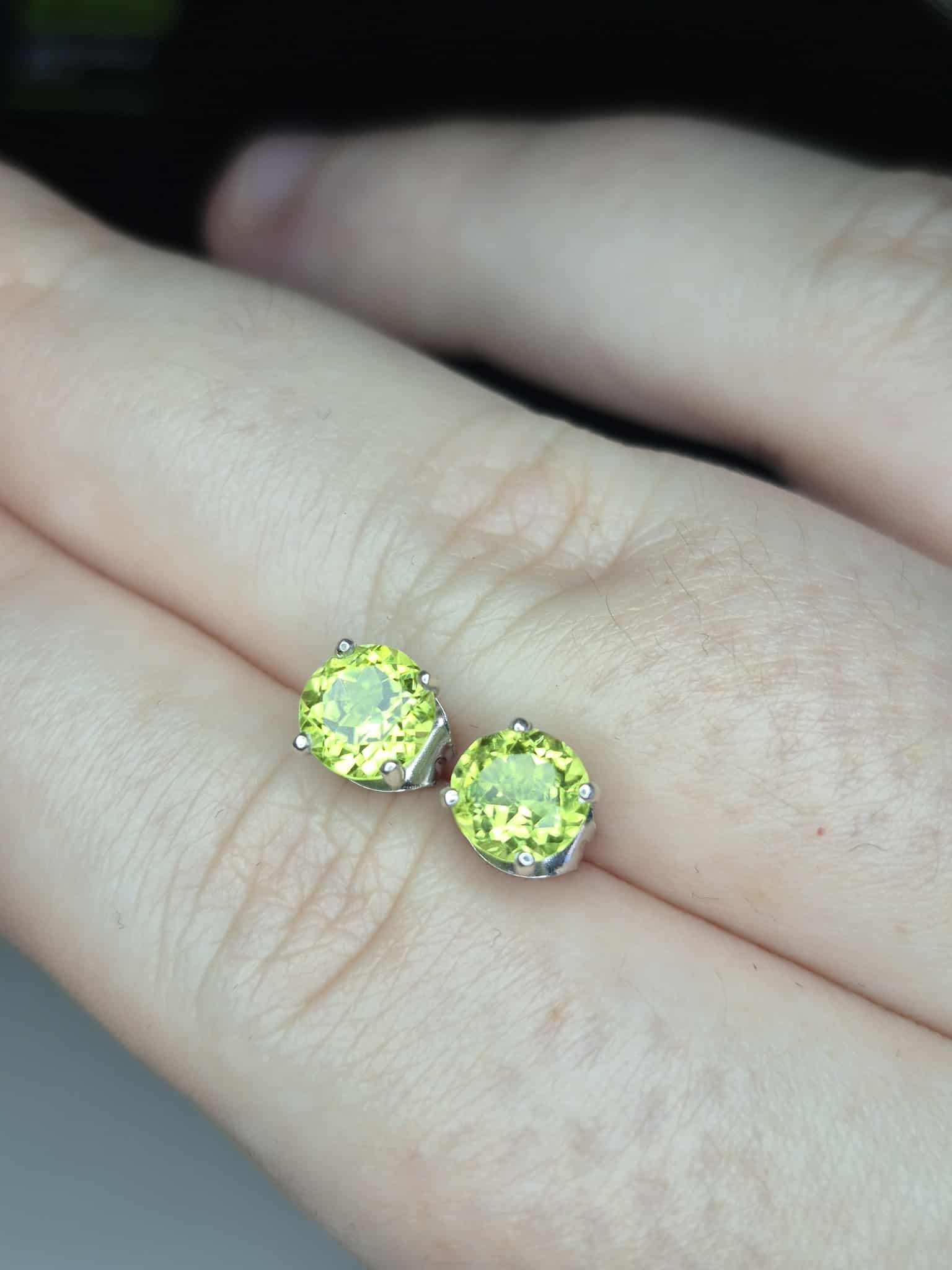 Beautiful natural peridot gemstone solitaire stud earrings, perfect for daily or occasional wear