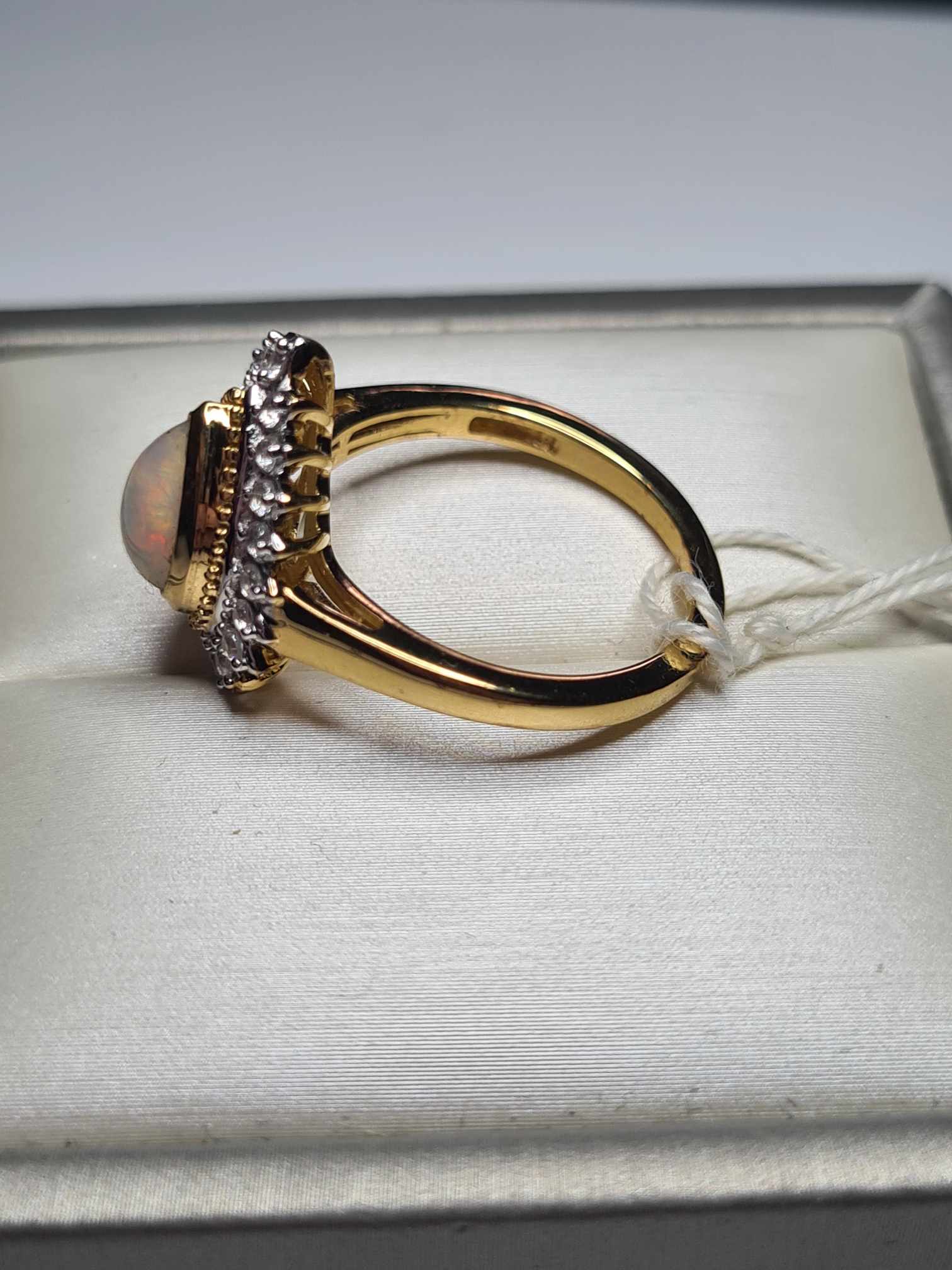 1.92ct Ethiopian Welo Opal and Natural Zircon Ring in 18K Yellow Gold Overlay 925 Sterling Silver SIZE P