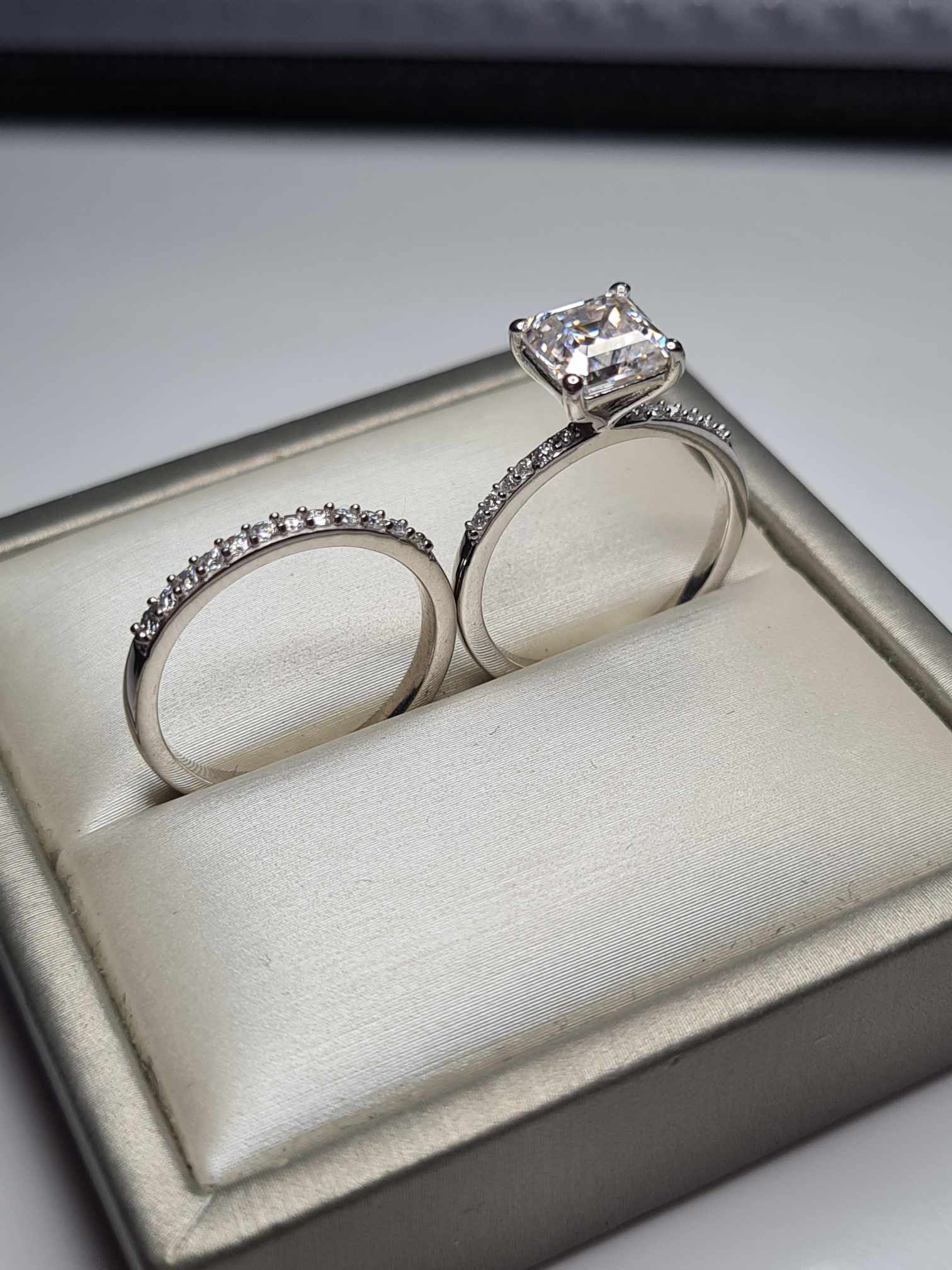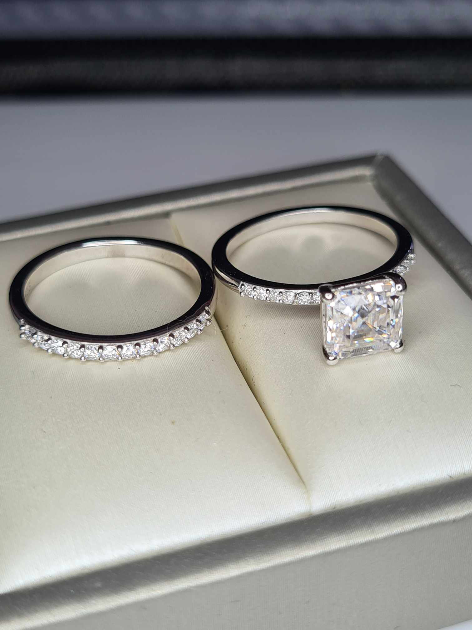 These 2 moissanite rings can be worn together or separately.