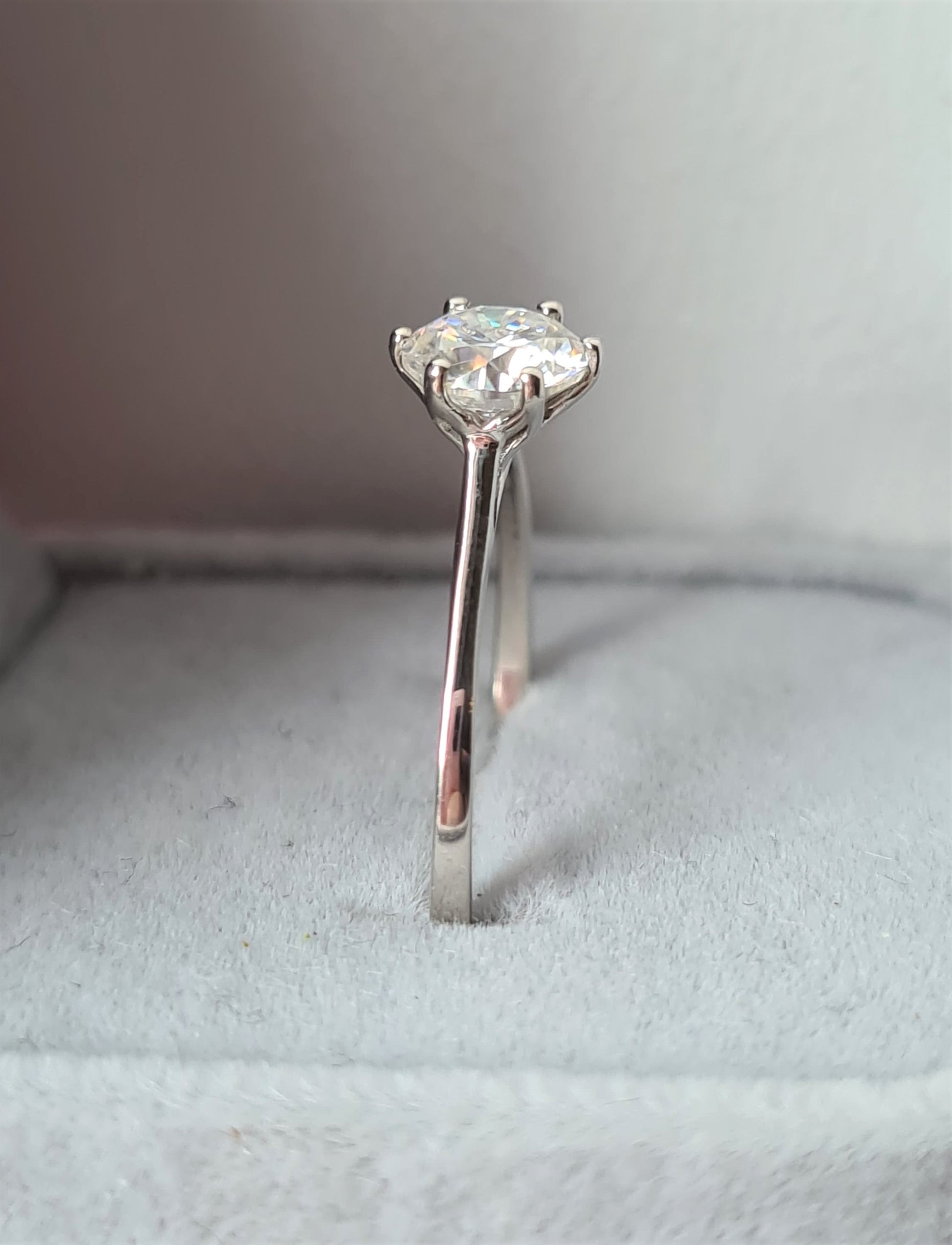 - Centre Stone: Moissanite Round 6.5mm Faceted Cut 1ct.
