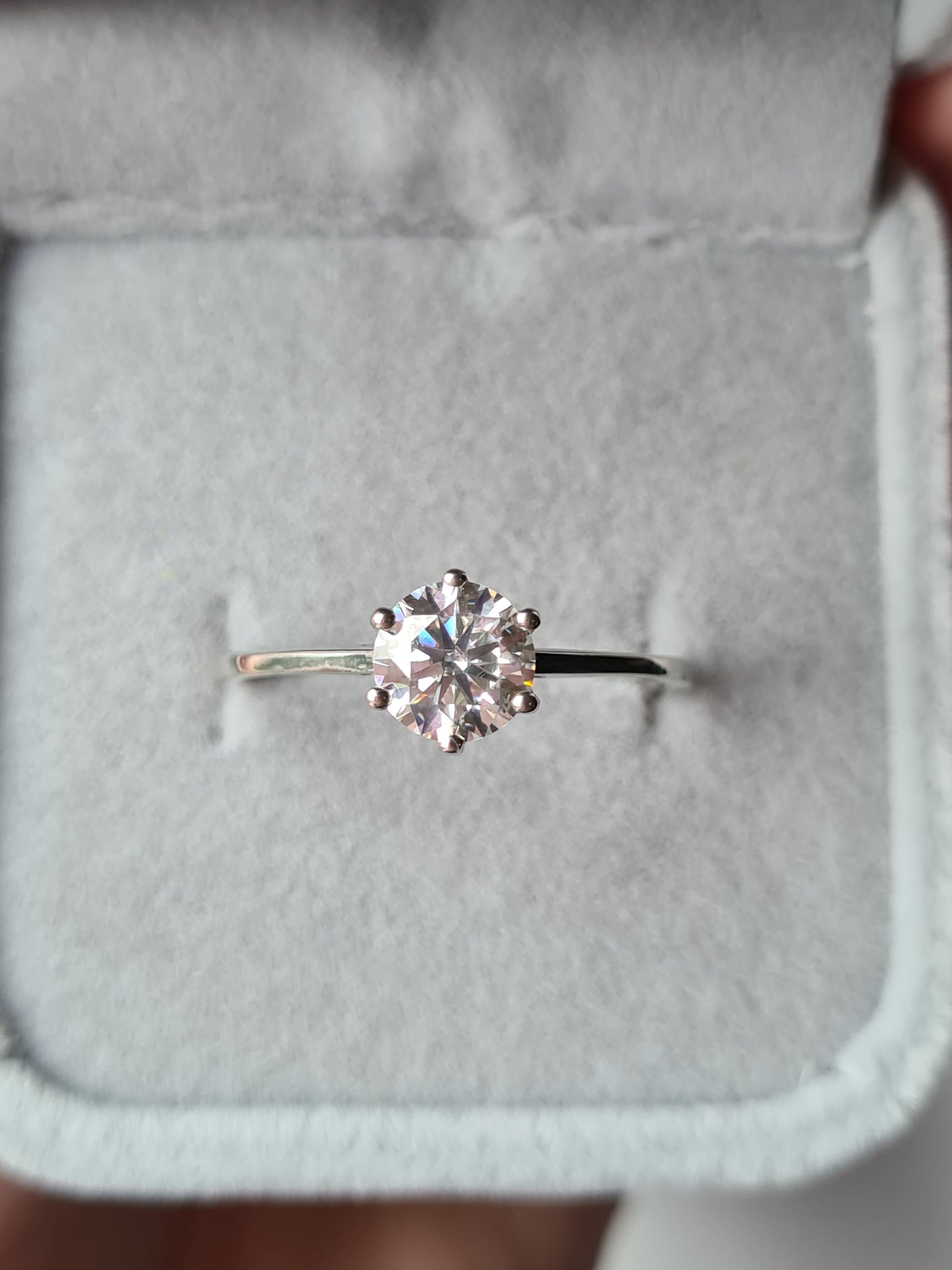 Embrace the timeless allure of our 1ct Moissanite Solitaire Ring—an exquisite symbol of everlasting elegance and love.