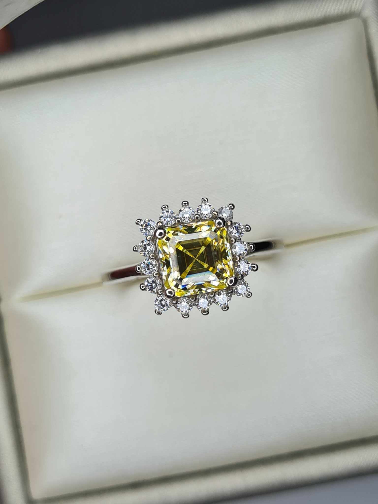 2.07ct Canary Moissanite Ring in 925 Sterling Silver SIZE P