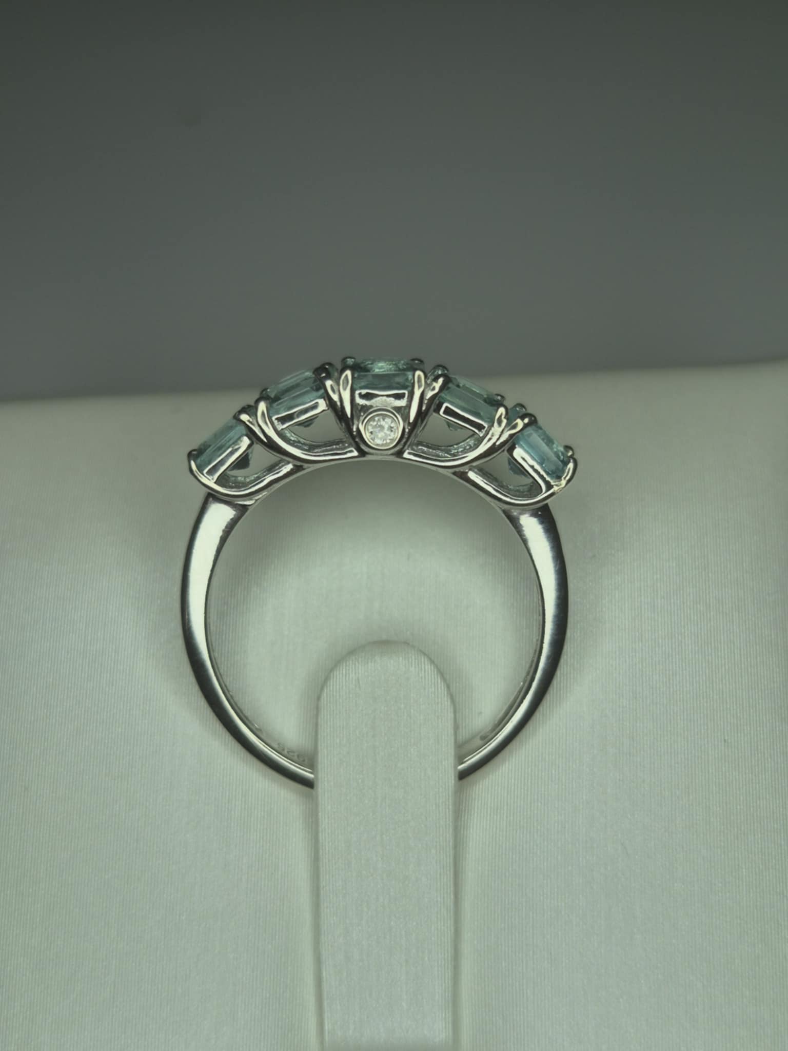 2.22ct Lagoon Apatite &Lab Grown Diamond 5 Stone Ring in Rhodium Overlay 925 Sterling Silver