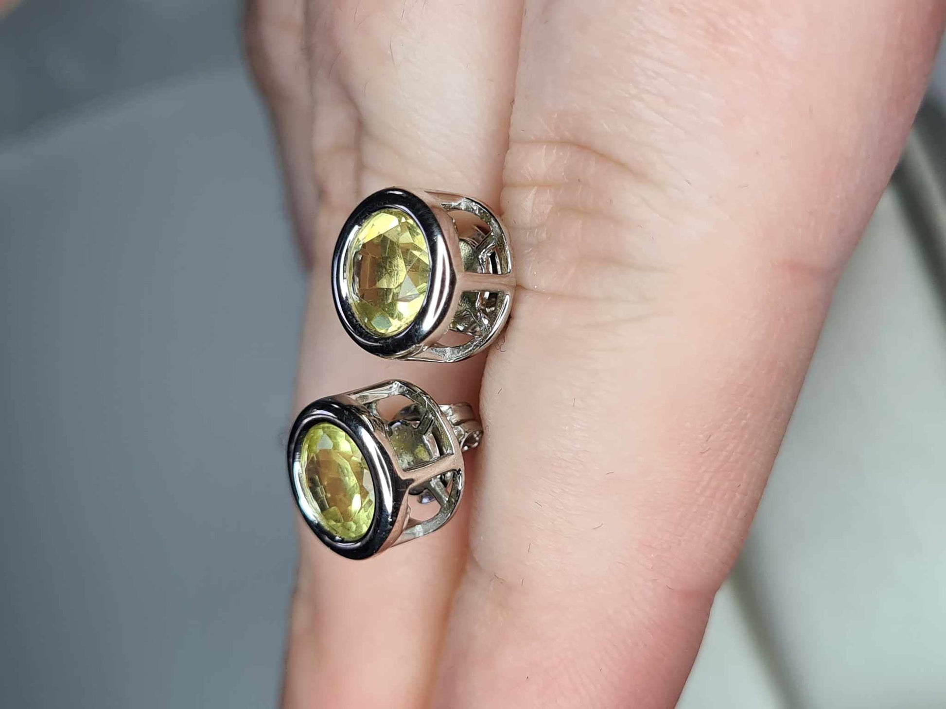 - Gemstone: Ouro Verde Quartz solitaires totaling 2.31ct, set in a hybrid of bezel and prong settings.