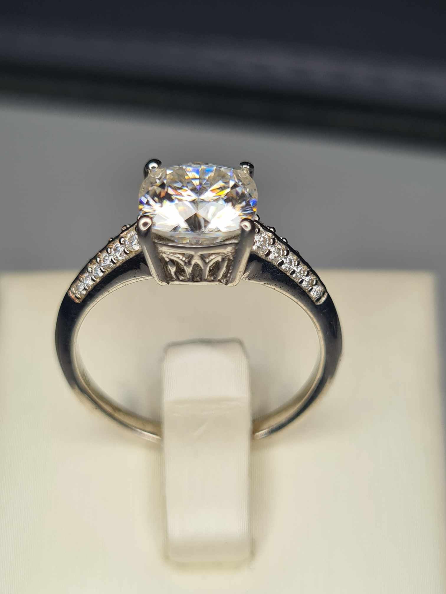 Split Design Brilliance: The shoulders of the ring are adorned with two rows of 24 round moissanites, creating a split design that adds an extra layer of sophistication. These sparkling accents enhance the overall allure of the solitaire, making it a captivating symbol of refined beauty.