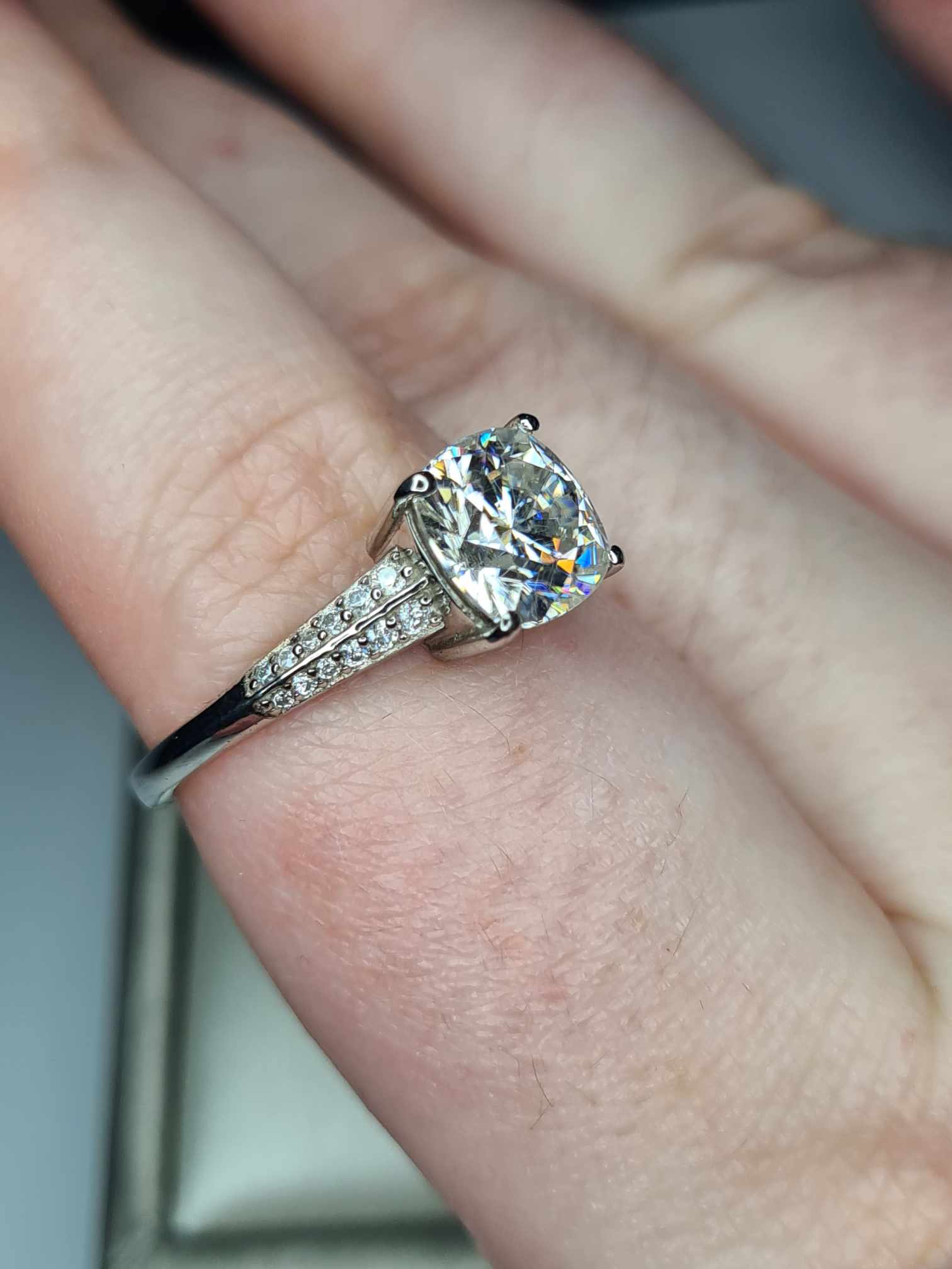 - Centre Stone: Moissanite Cushion 8x8mm Faceted Cut (2.115ct).