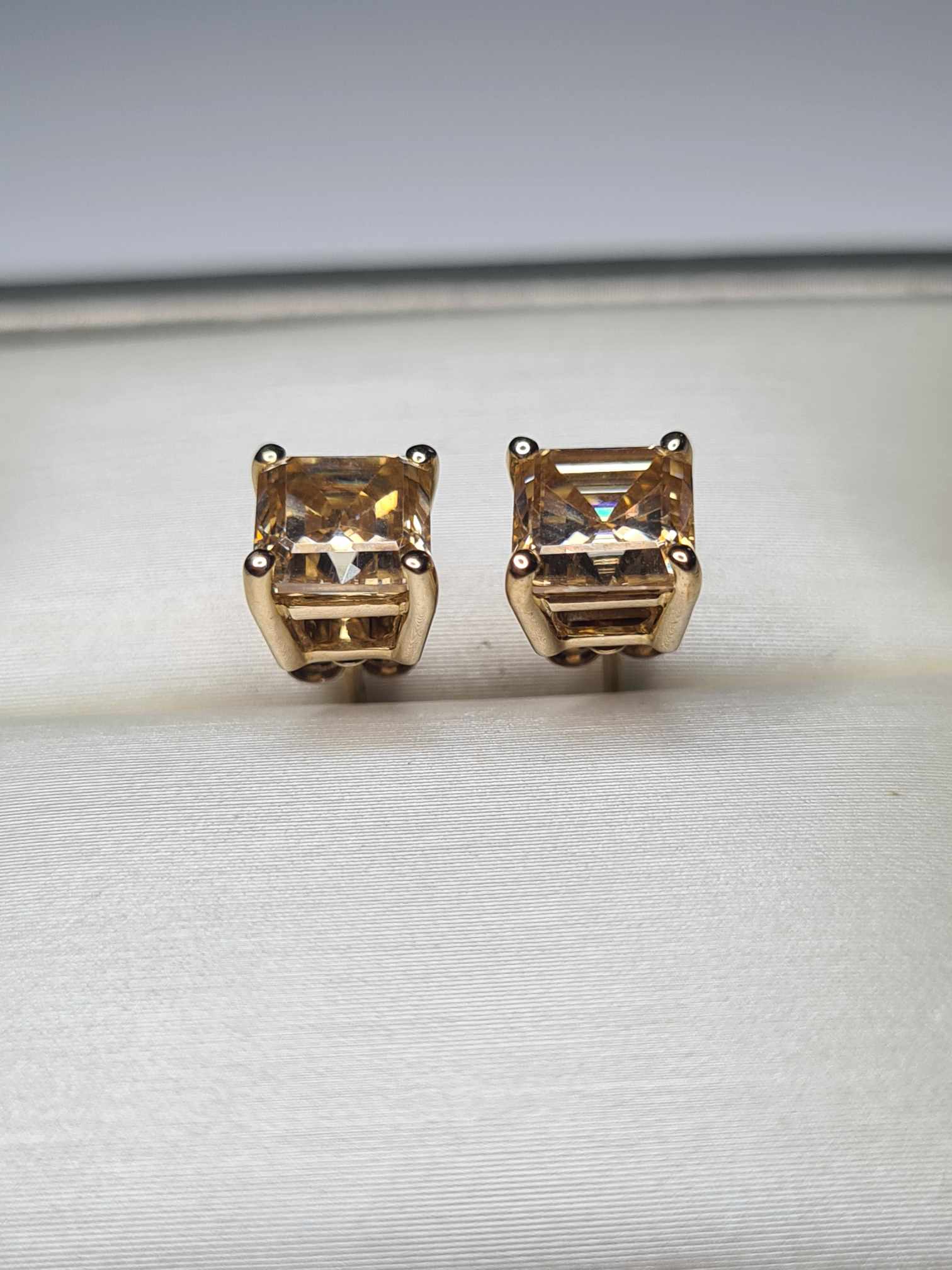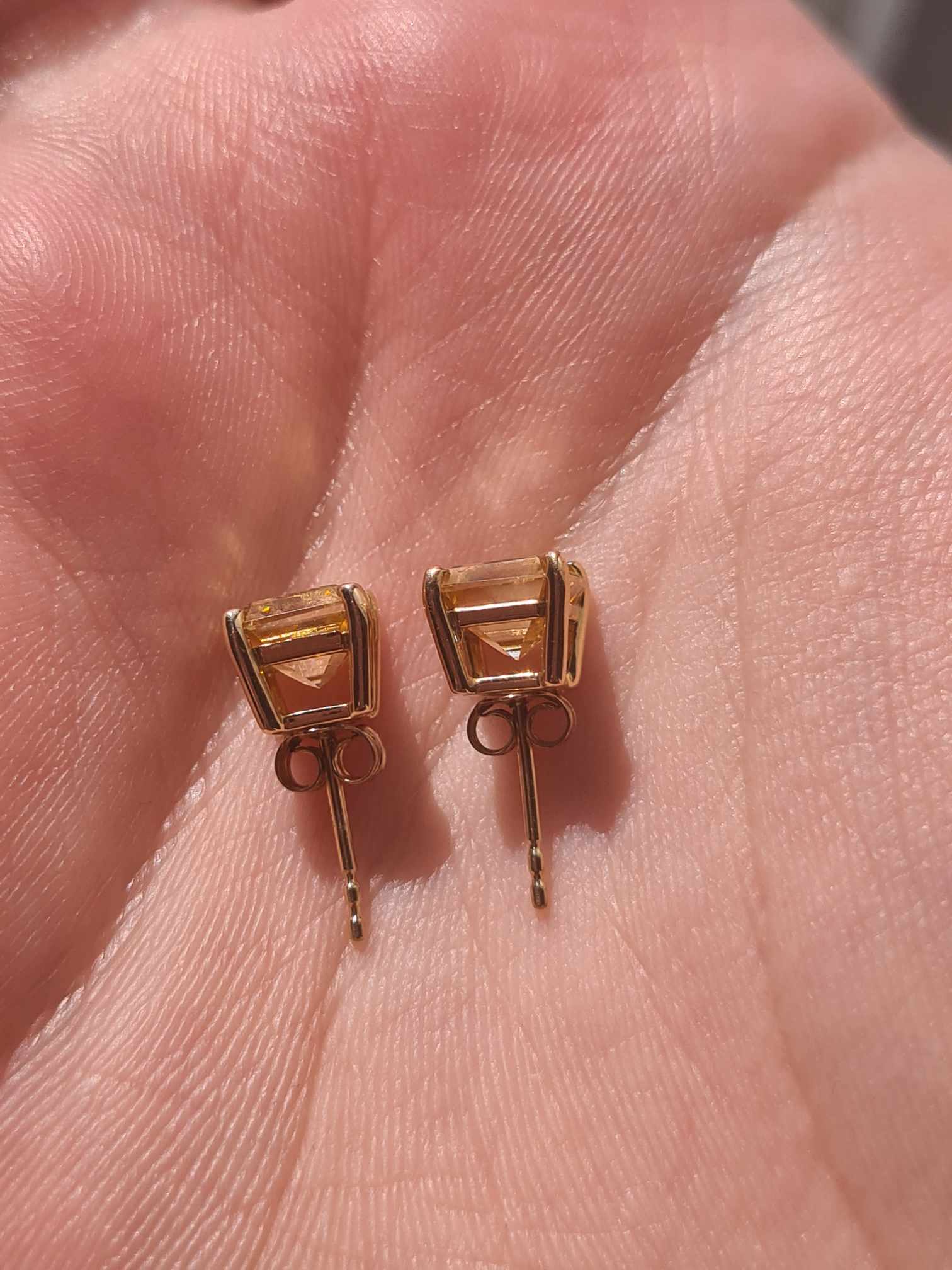 2.50ct 9K Yellow Gold Champagne Moissanite Princess Cut Solitaire Stud Earrings