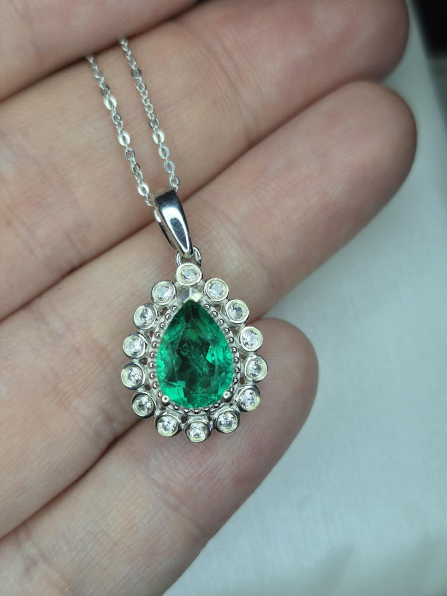 2.56ct Emeraldine Triplet Quartz & White Zircon Necklace in Rhodium Overlay 925 Sterling Silver