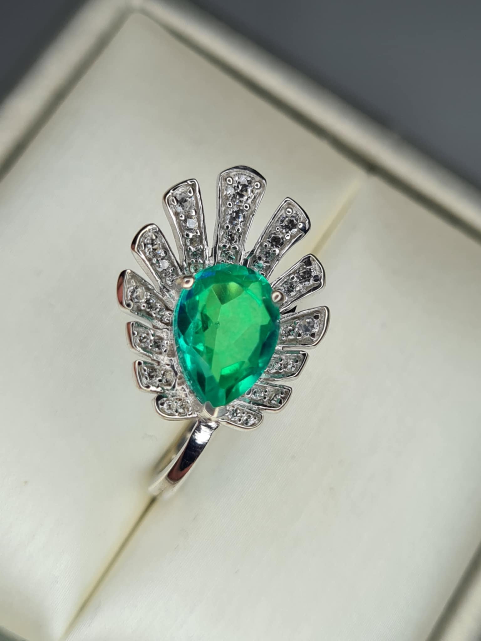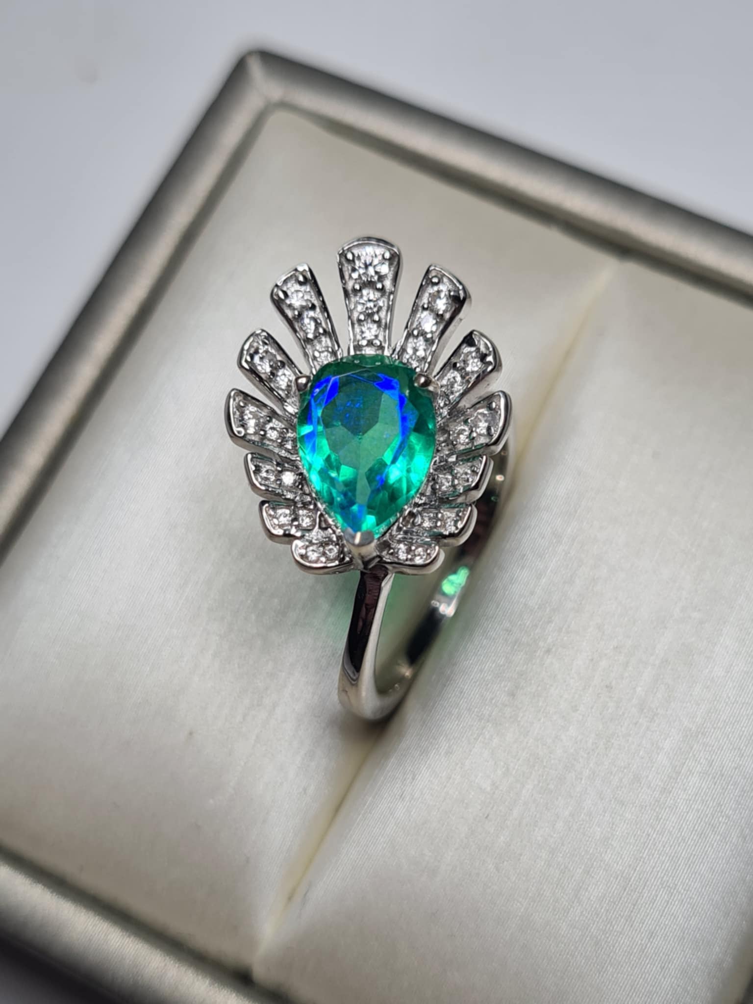 2.59 Ct Peacock Triplet Quartz and White Zircon Ring in 925 Sterling Silver