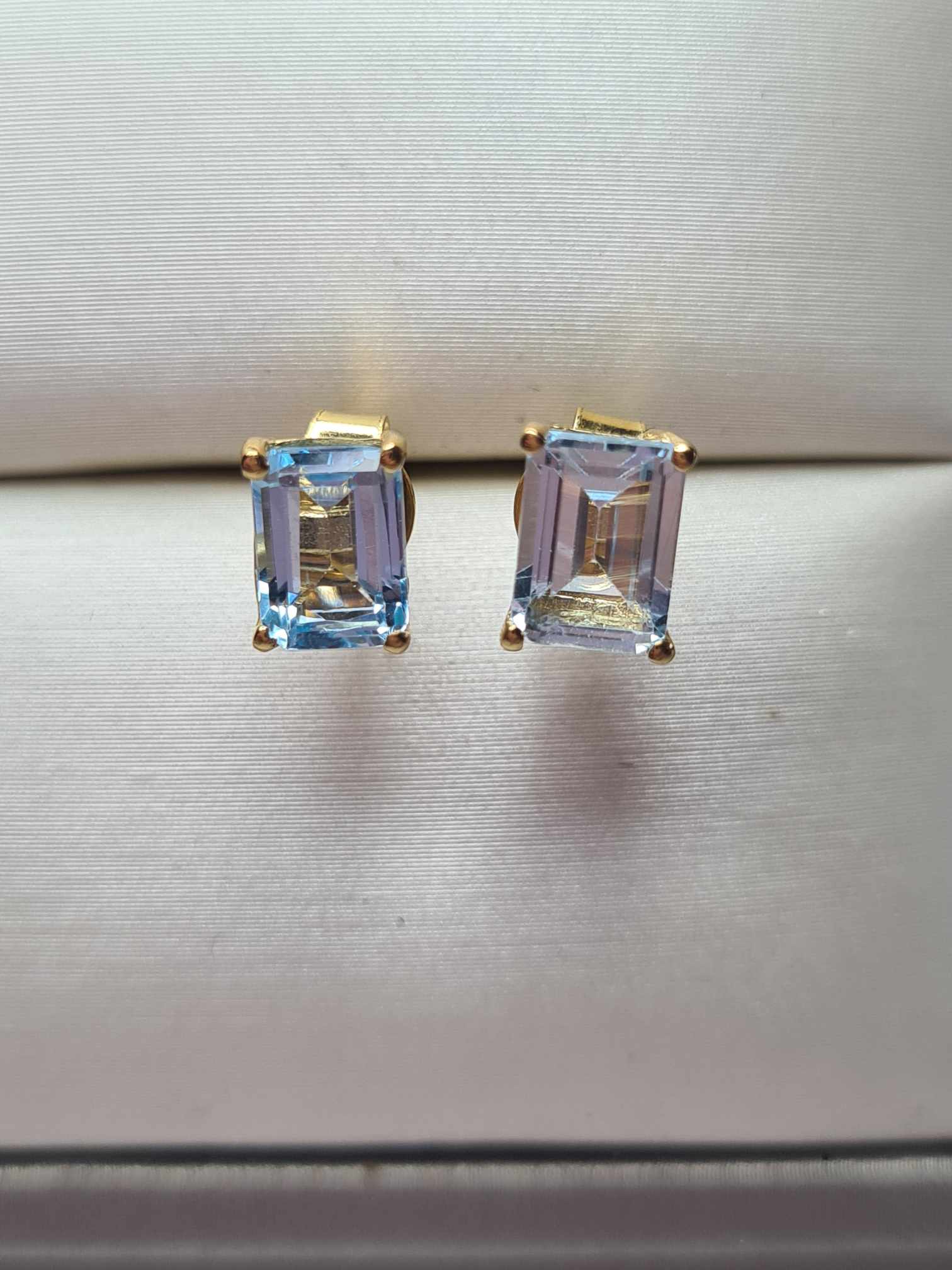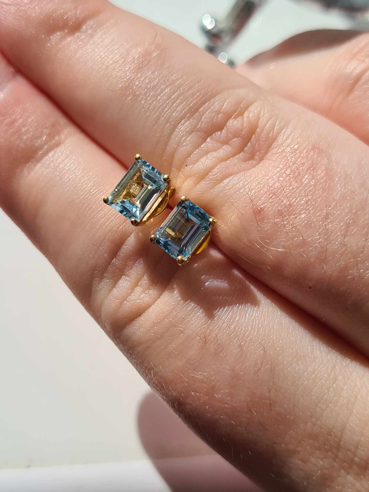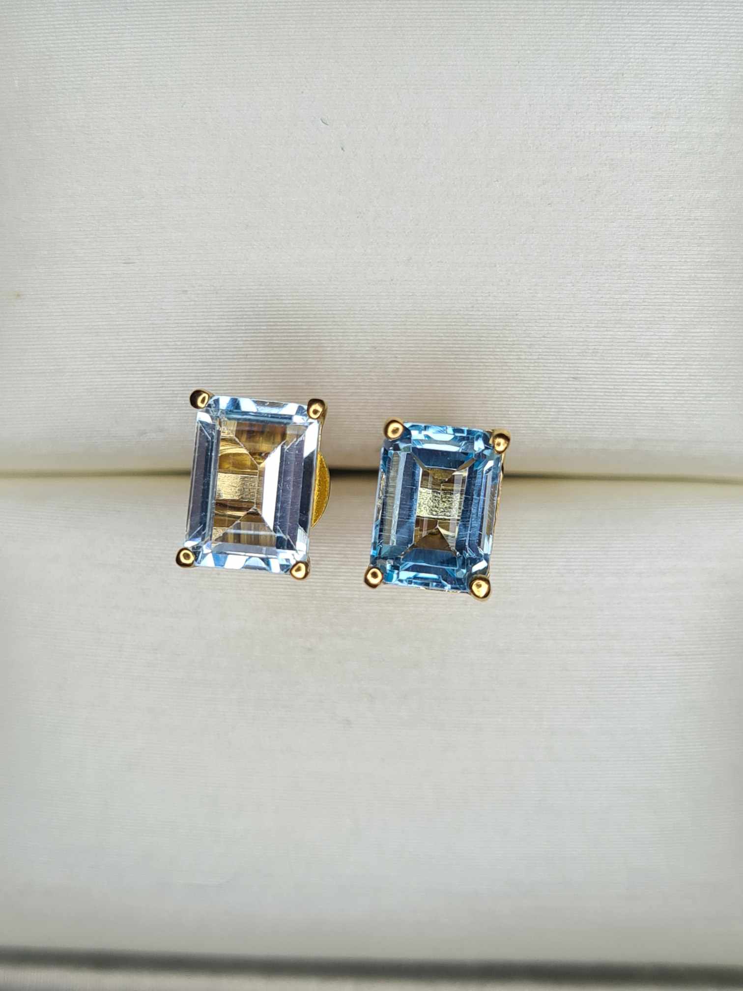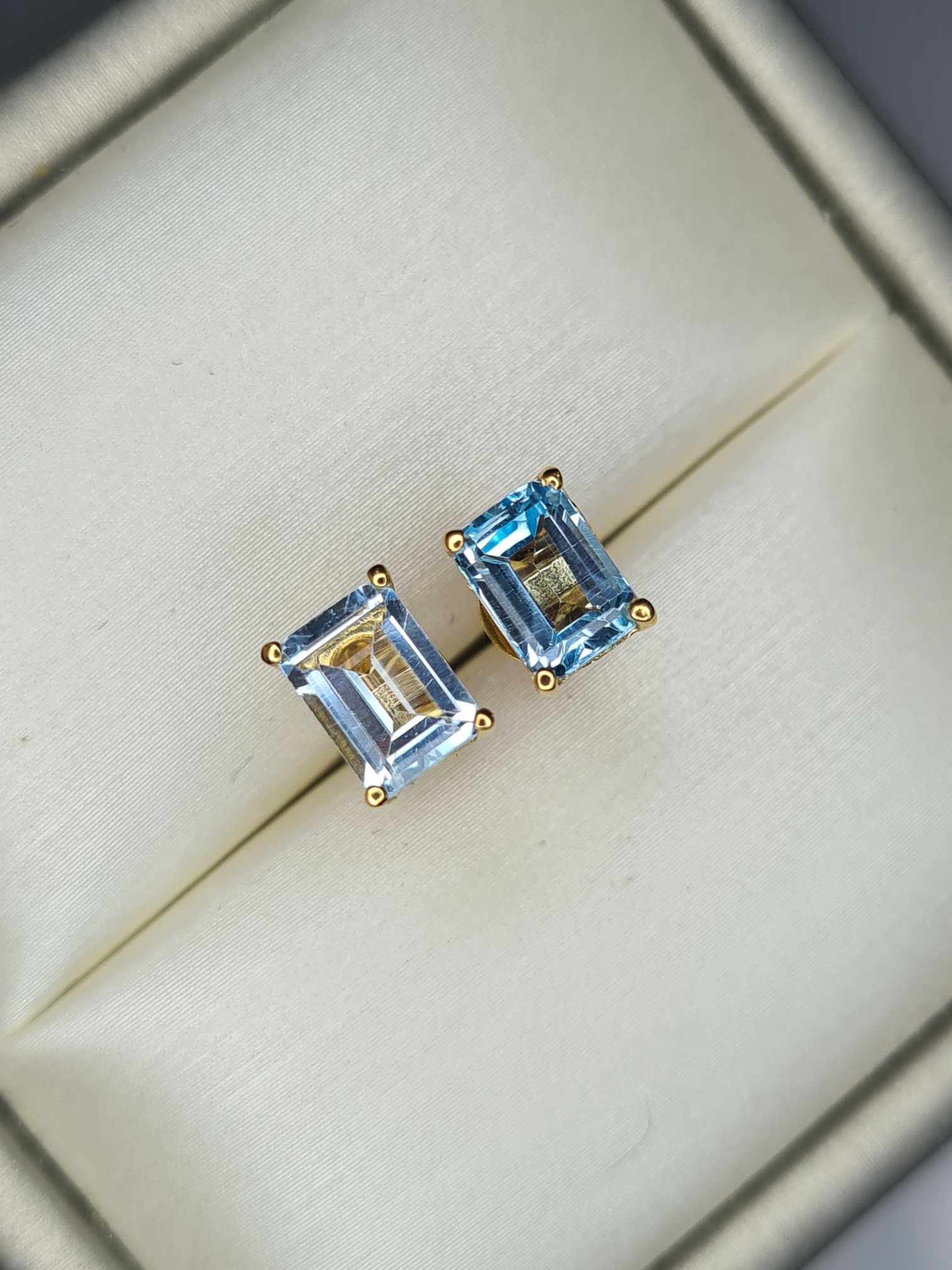 2.73ct Skyblue Topaz Solitaire Earrings in 18K Yellow Gold Overlay 925 Sterling Silver