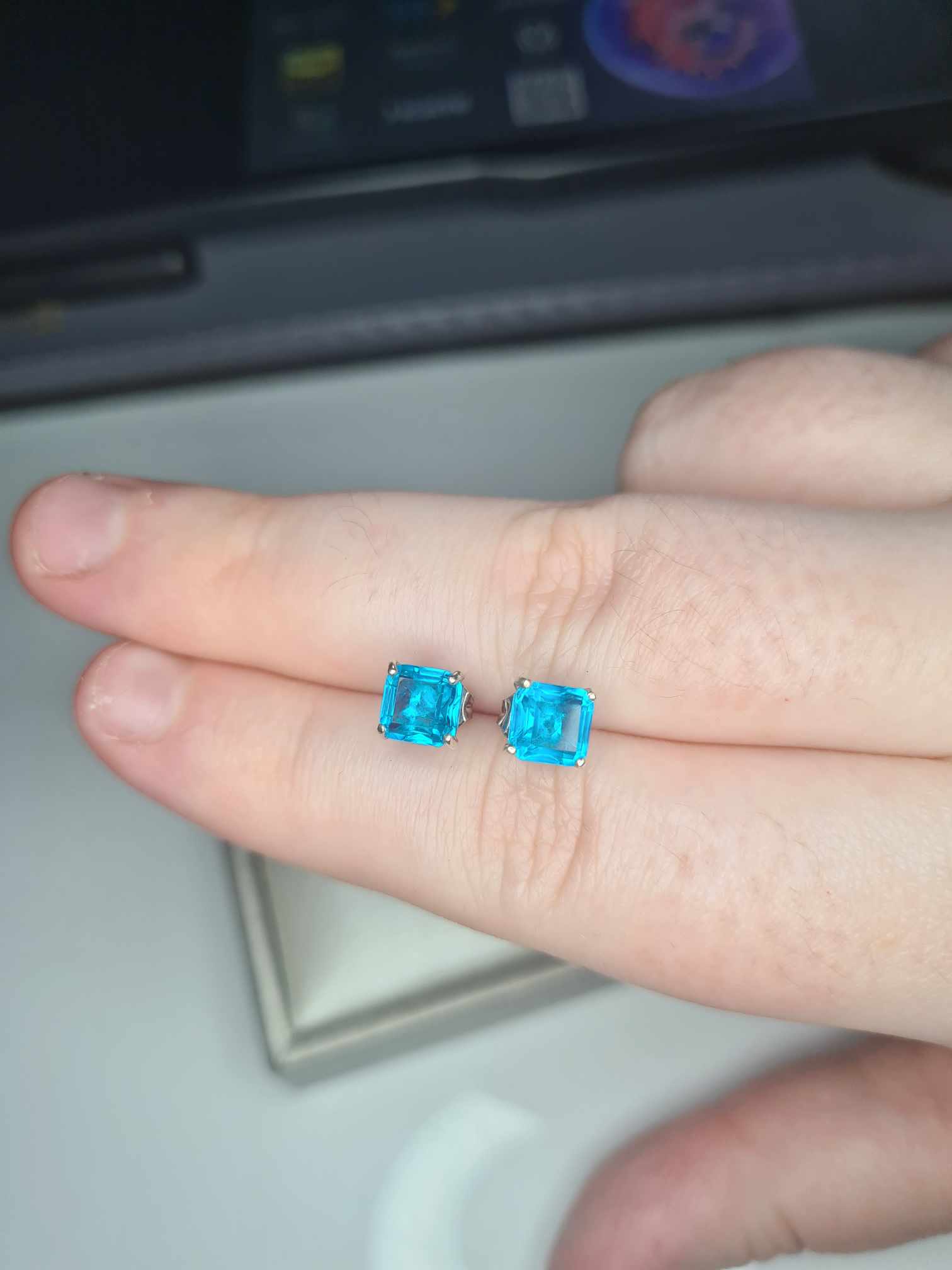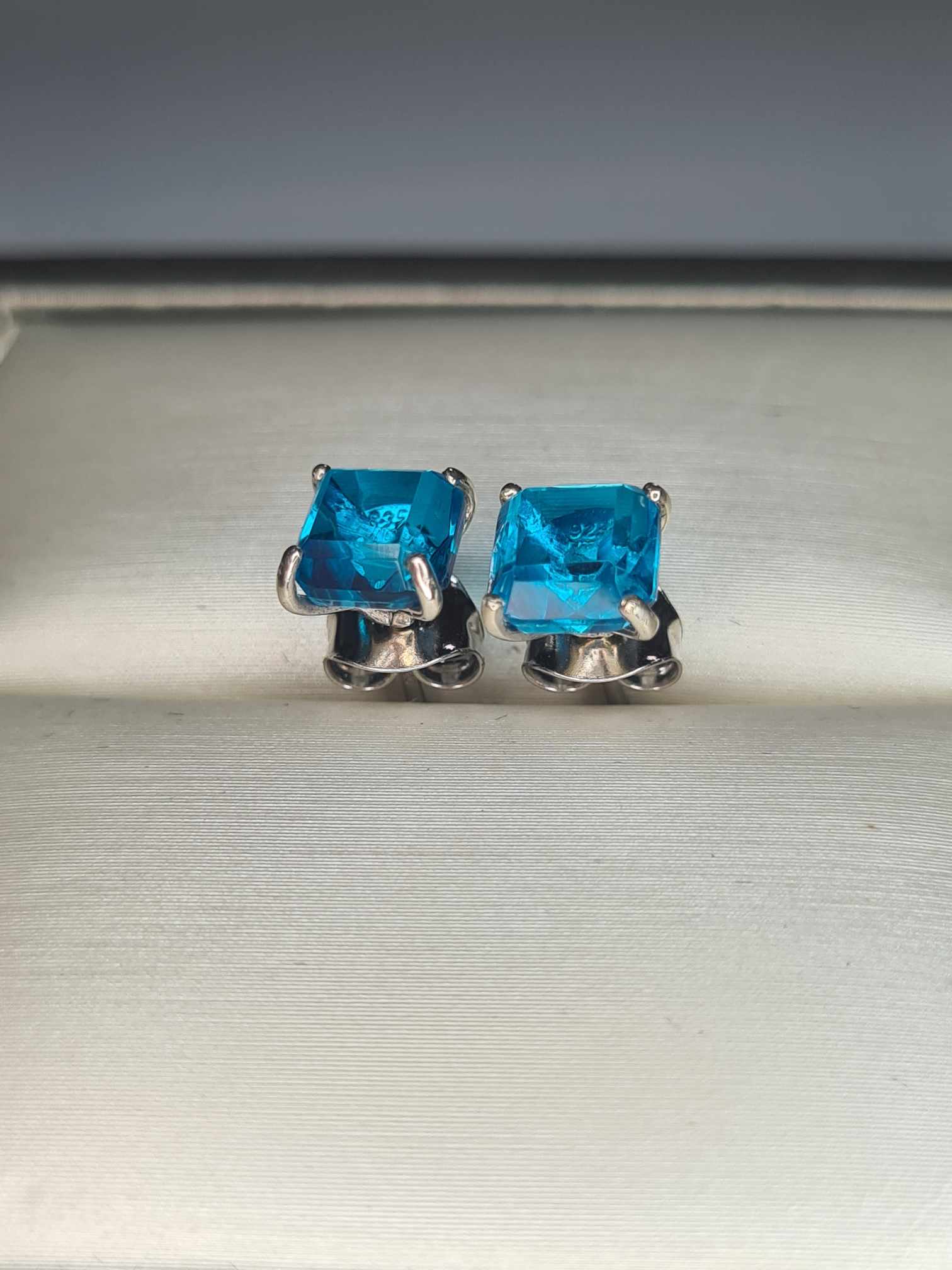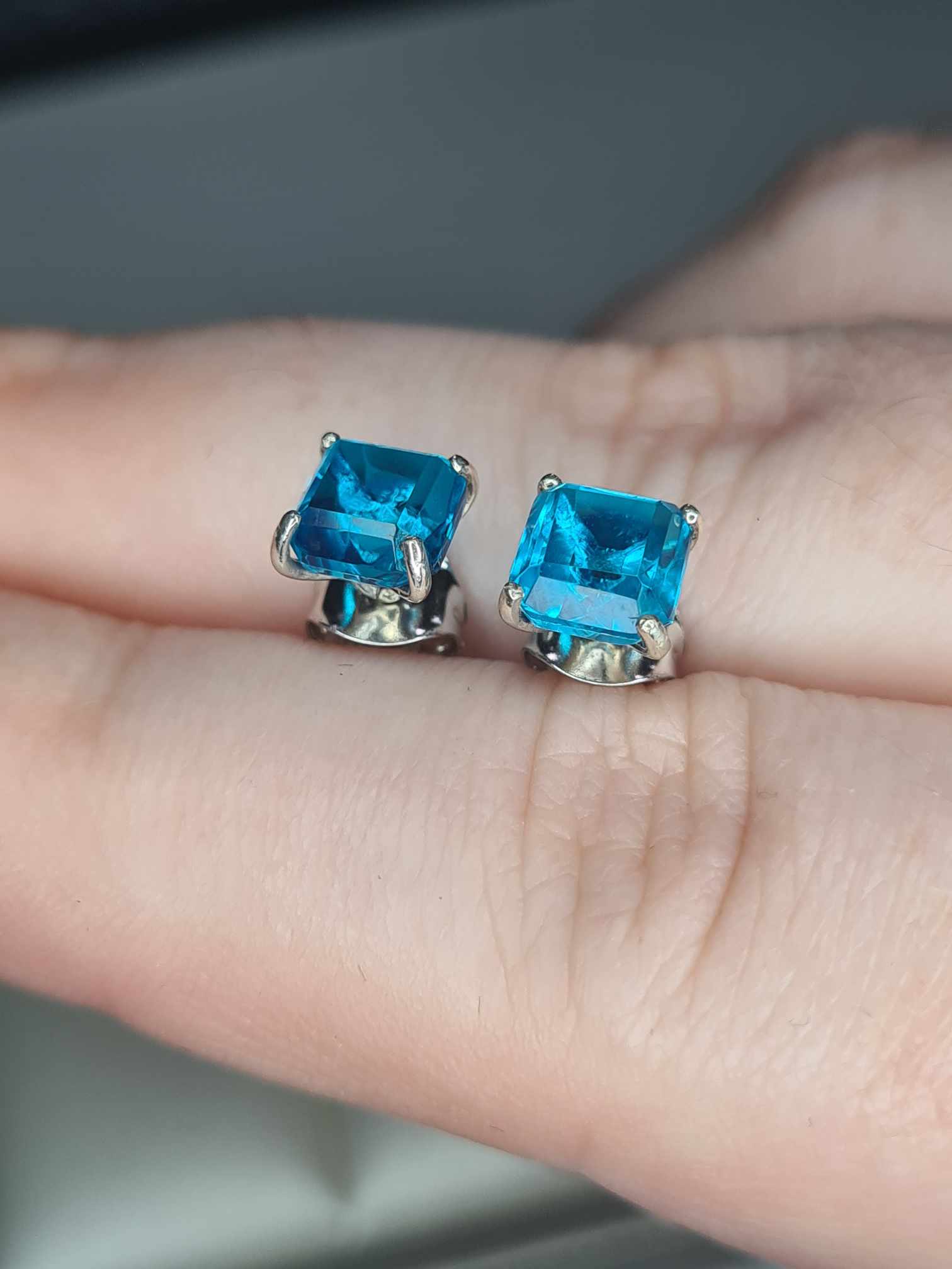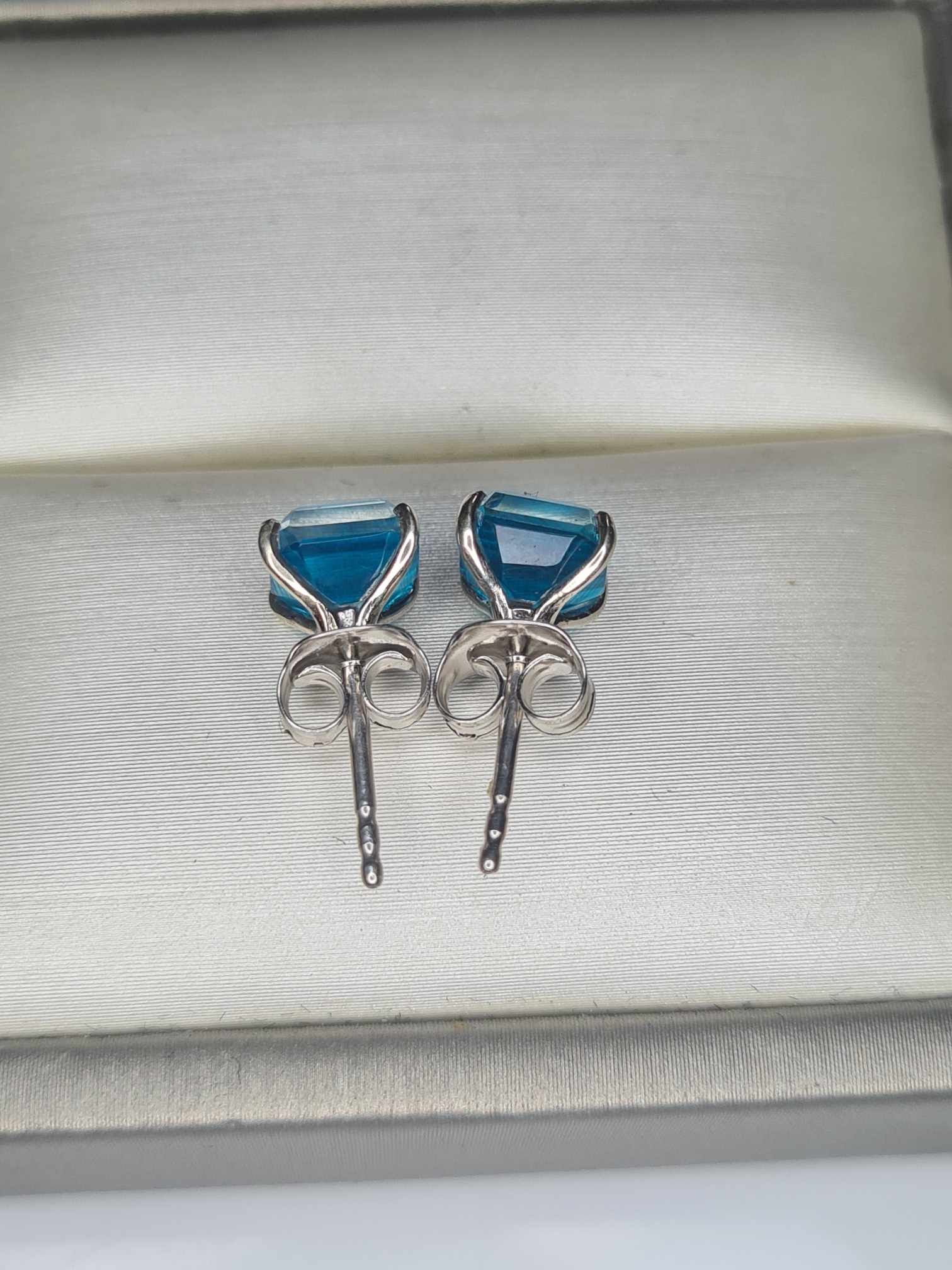 2.86ct Capri Blue Triplet Quartz Solitaire Earrings in Platinum Overlay 925 Sterling Silver