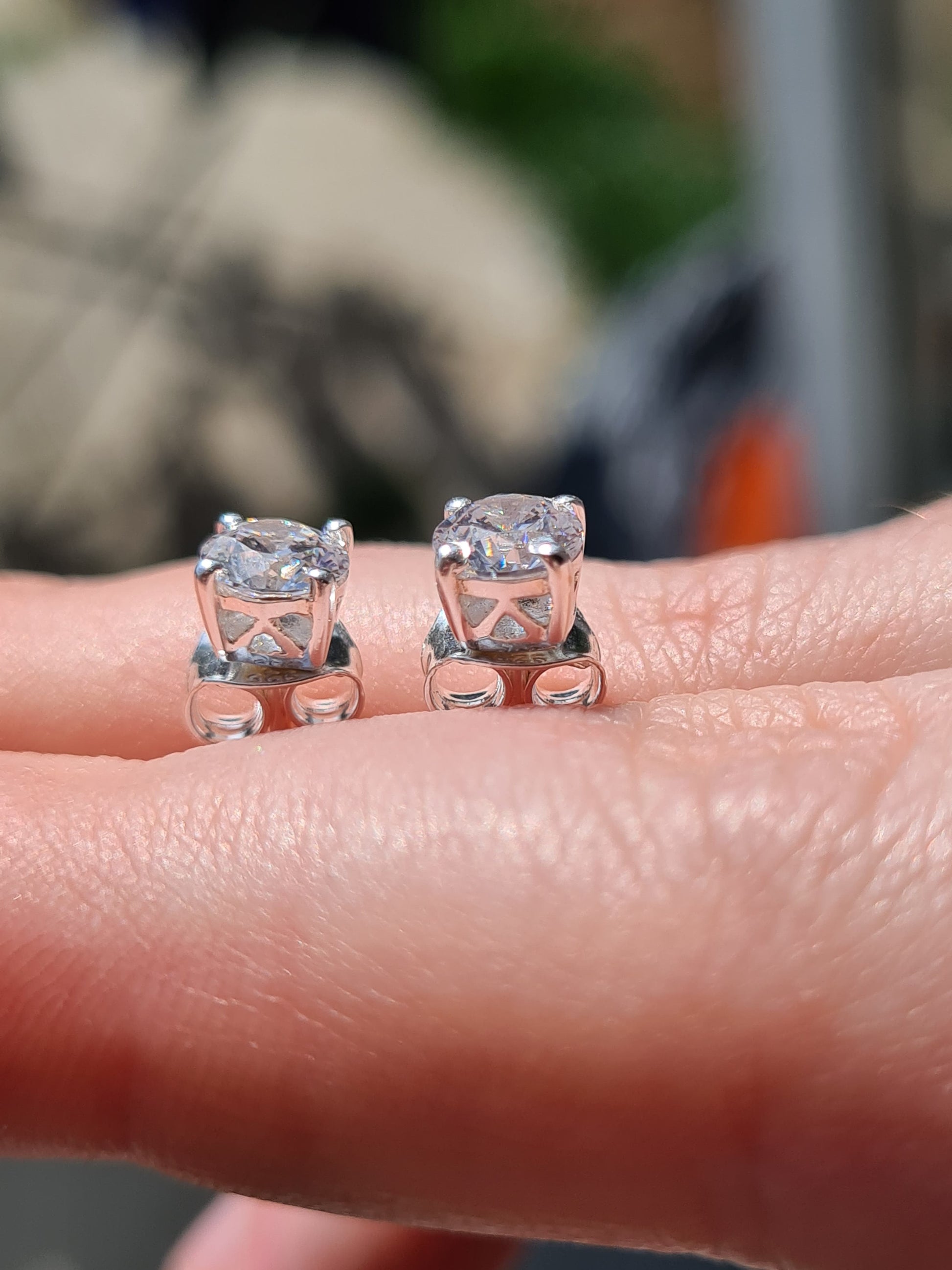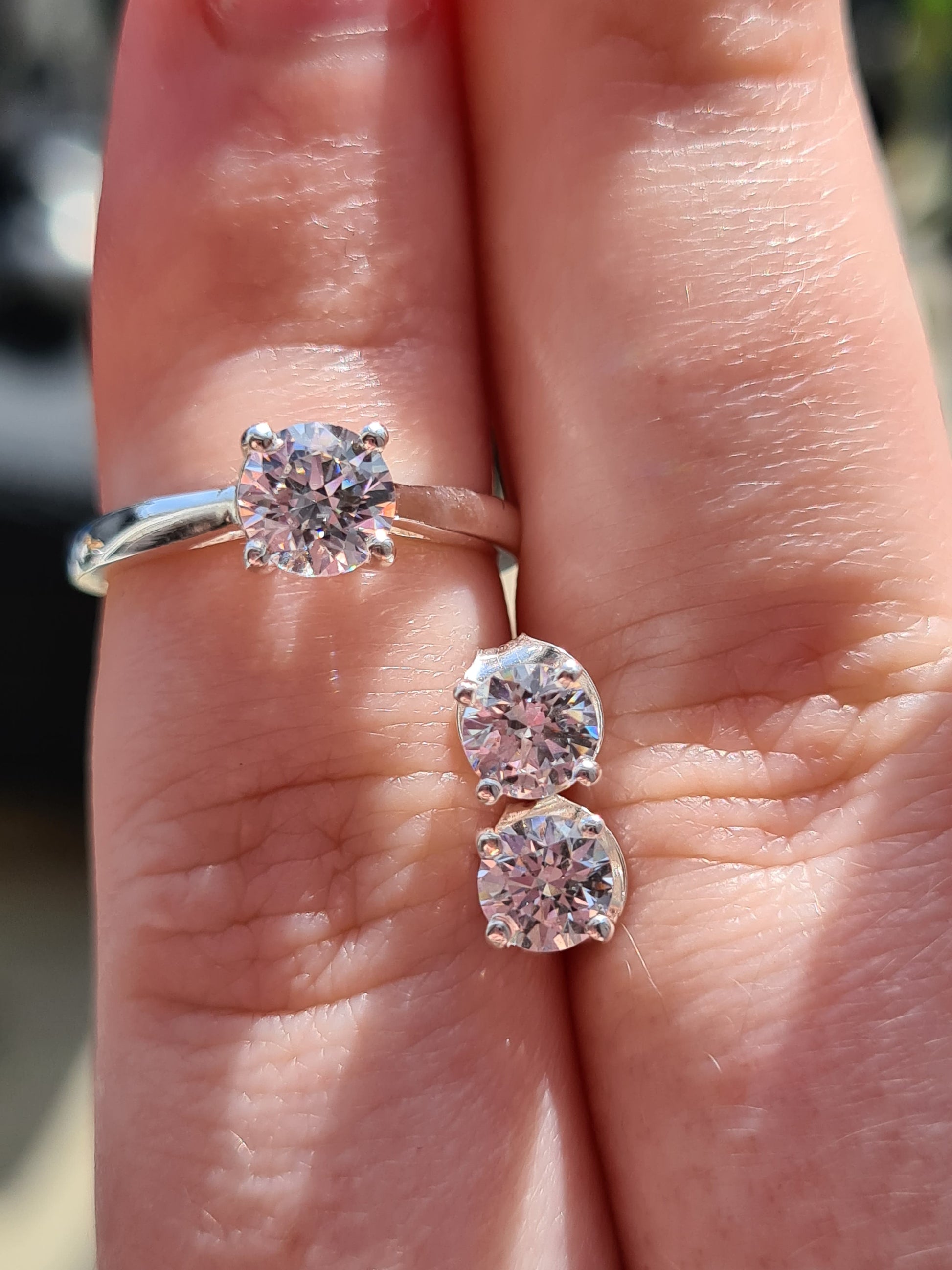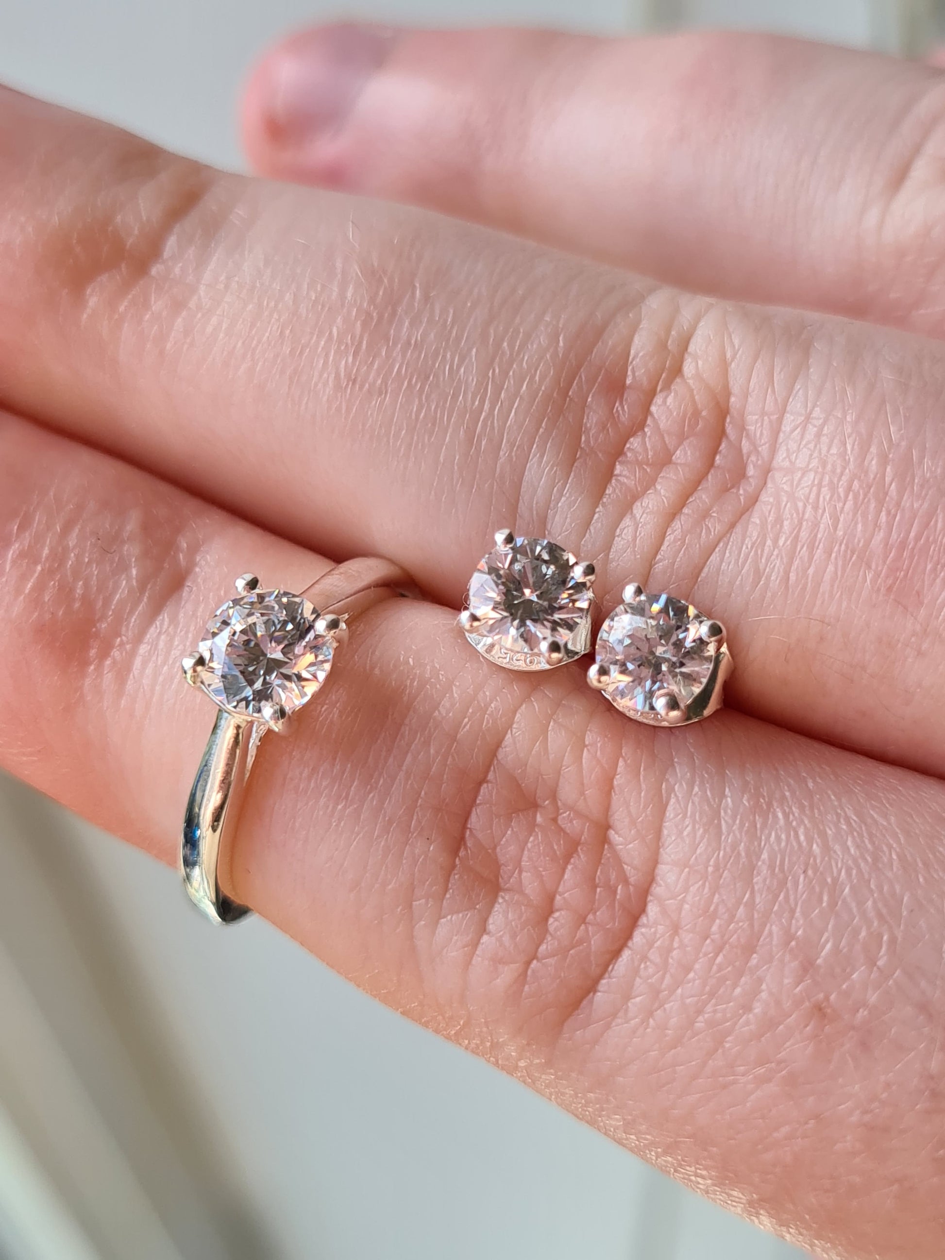 2 Piece Set -Swarovski Zirconia 925 Sterling Silver Solitaire Ring and Stud Earrings SIZES O,S